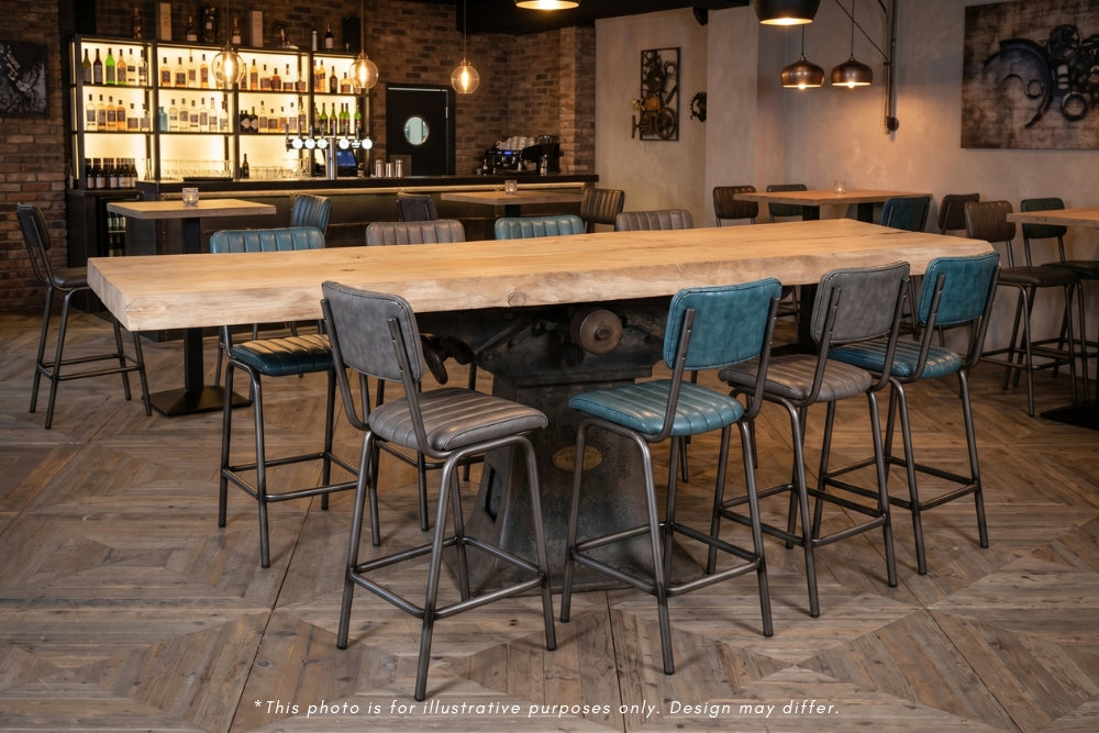 Cut from solid ash and left with a natural live edge running the length of both sides, this large posing dining restaurant table that makes its presence felt the moment it enters a room. The top is a full five inches thick, carrying all the texture and movement of the raw timber, and can be finished and oiled to whatever colour suits your interior at no extra charge, whether that's keeping it close to its natural state or working it into a darker, richer tone. At this scale and weight it works equally well as a fantastic centrepiece table, a substantial kitchen island, or a statement feature in a bar or restaurant setting. This is the kind of piece that anchors a room and doesn't go unnoticed.