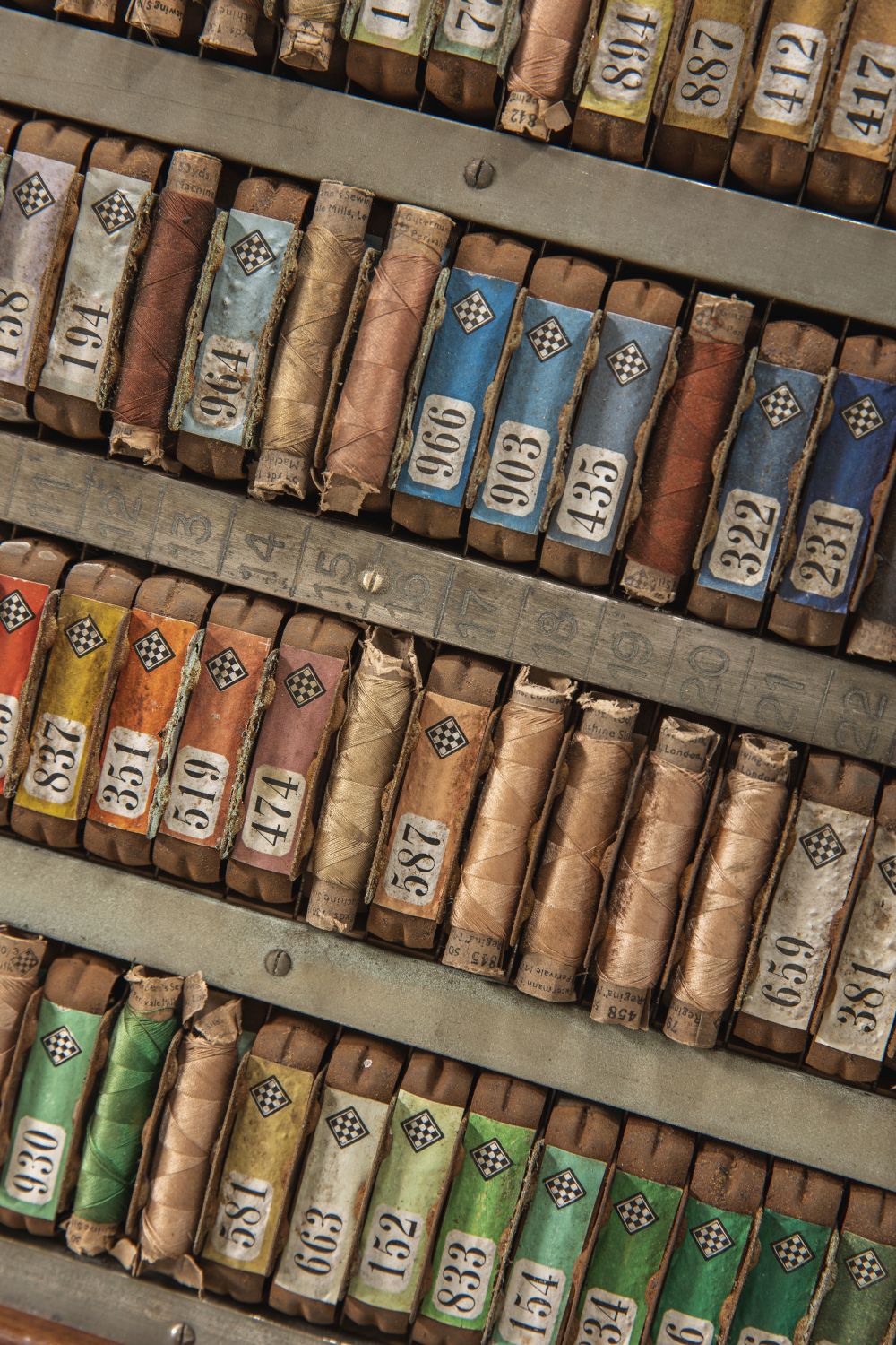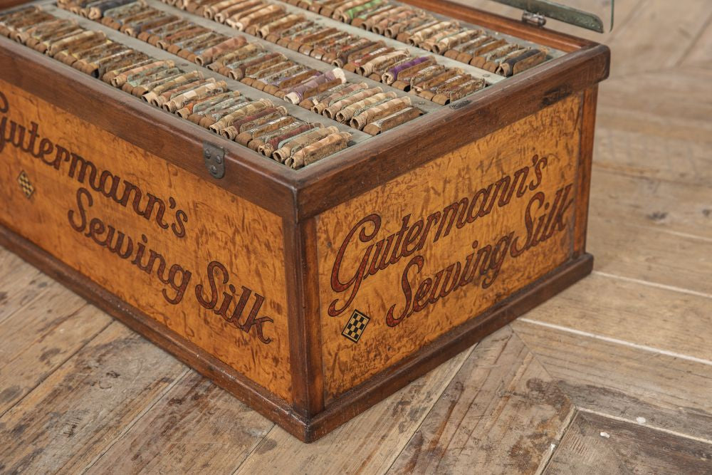 Oozing with character, this stunning Sewing Silk Box is an original Gütermann Cotton dispenser display stand from circa 1920s.