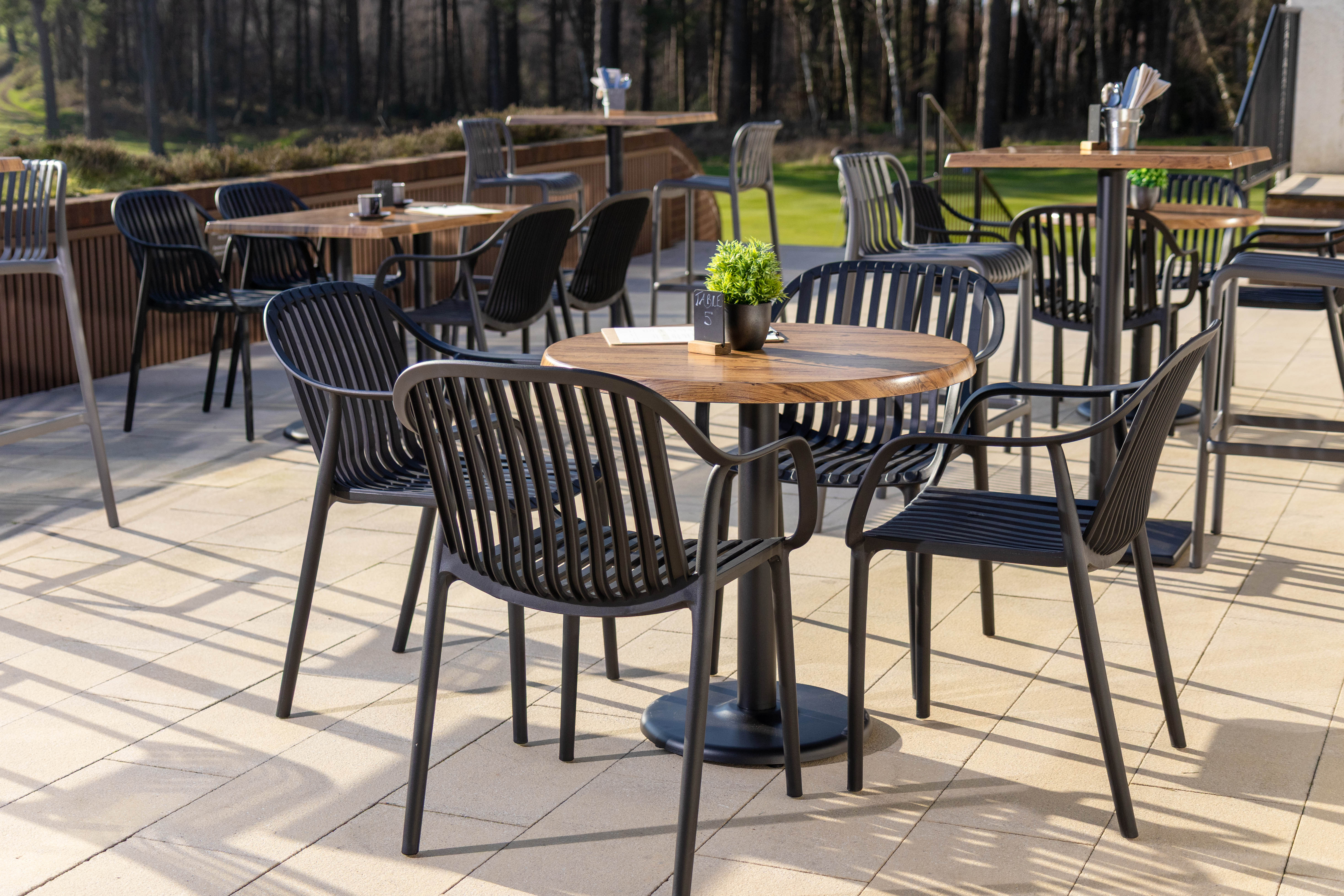These tables feature compression moulded ISOTOP tabletops which have a seamless usage surface. The material properties result in a robust, durable, and long-lasting product, perfect for busy restaurants, bars, and cafes that handle food, drink, and the wear of everyday life.