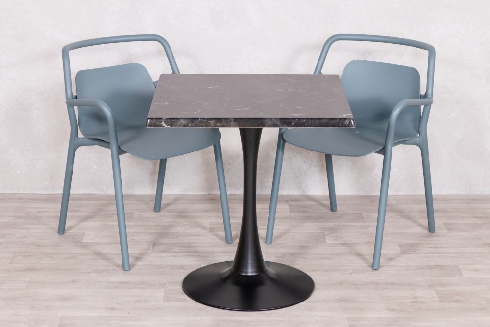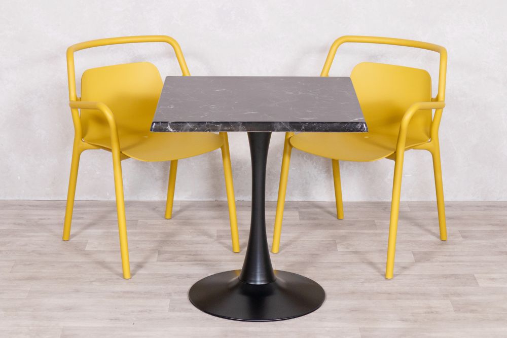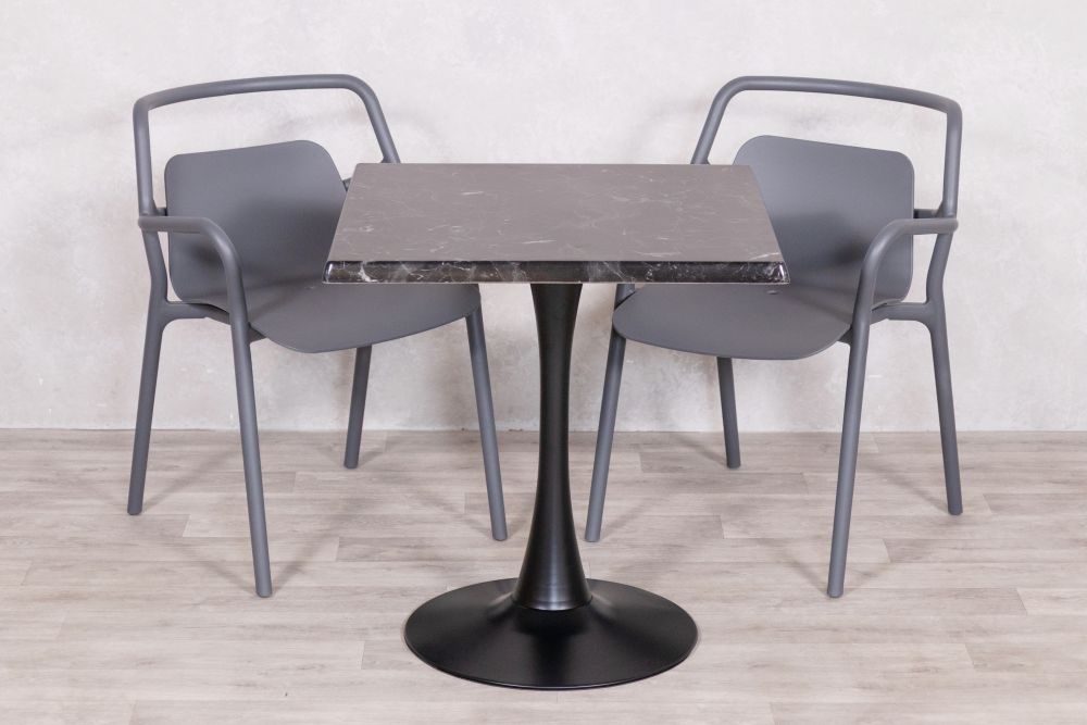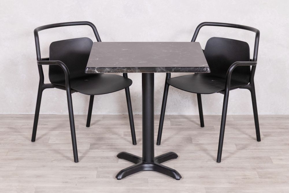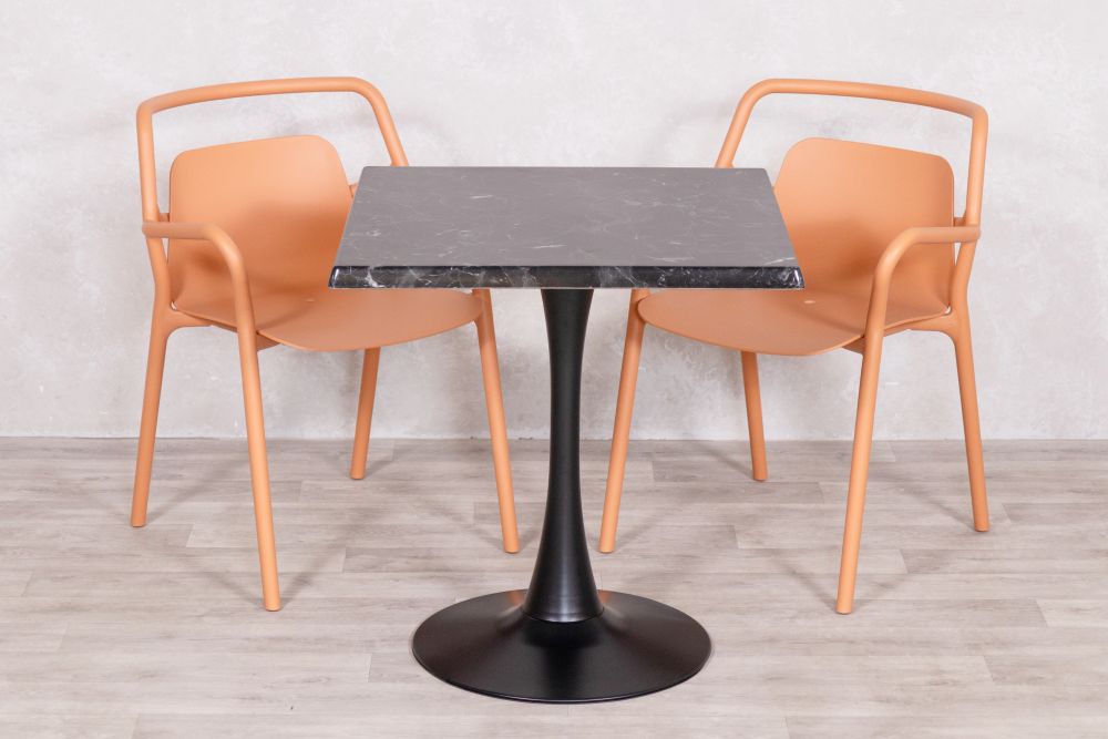 Invite style, sophistication, and practicality to your commercial space with the Alcantara Black Top Outdoor Café Table Set with Ibiza Chairs! Refresh the look of your restaurant, café, or bar by choosing a tabletop that’s minimal by design yet versatile for a range of interior aesthetics. Customise your table by choosing from variety of chair options that best suit your interior theme.