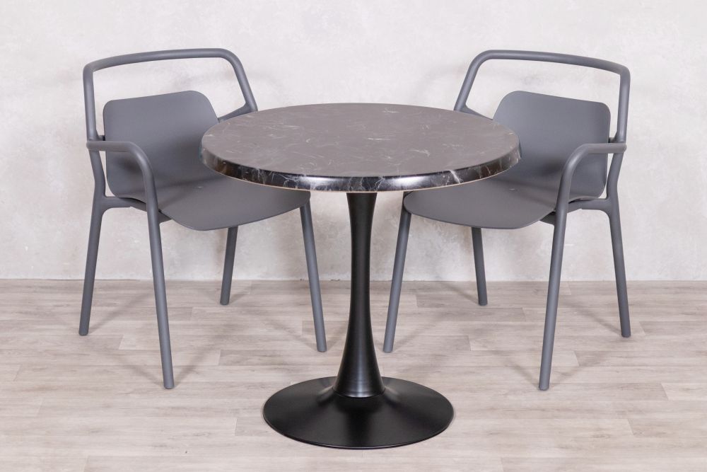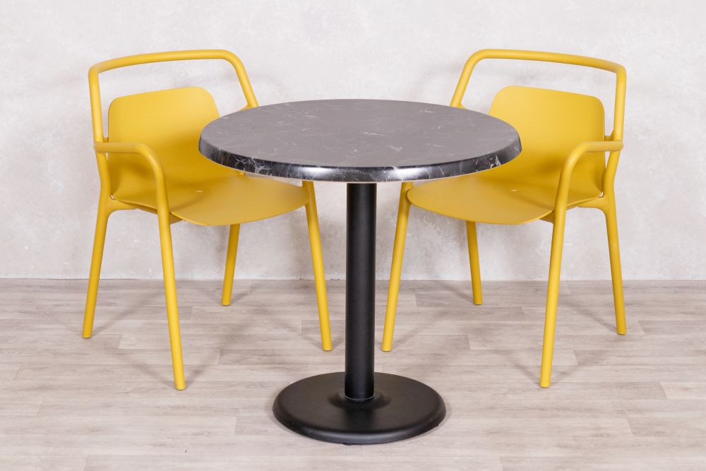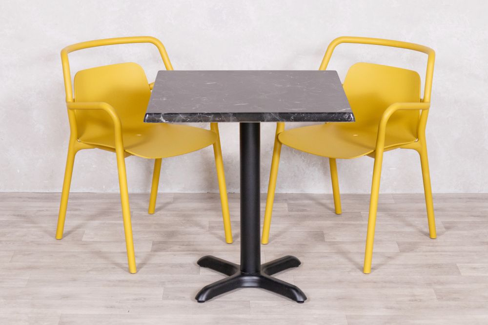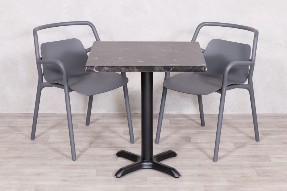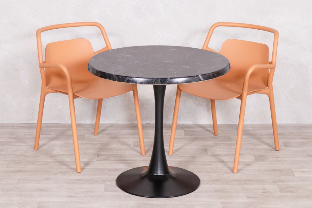 Invite style, sophistication, and practicality to your commercial space with the Alcantara Black Top Outdoor Café Table Set with Ibiza Chairs! Refresh the look of your restaurant, café, or bar by choosing a tabletop that’s minimal by design yet versatile for a range of interior aesthetics. Customise your table by choosing from variety of chair options that best suit your interior theme.