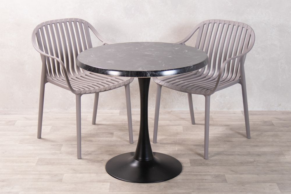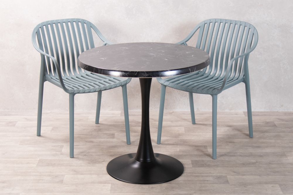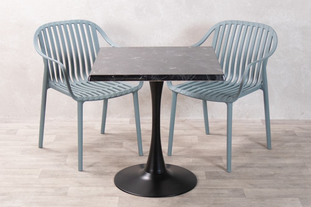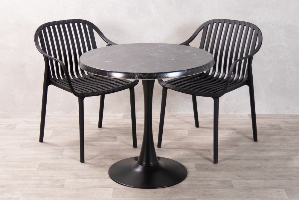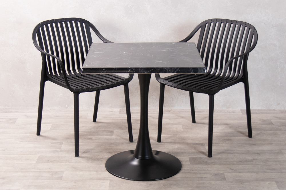 Alcantara Black Top Outdoor Café Table Set with California Chairs