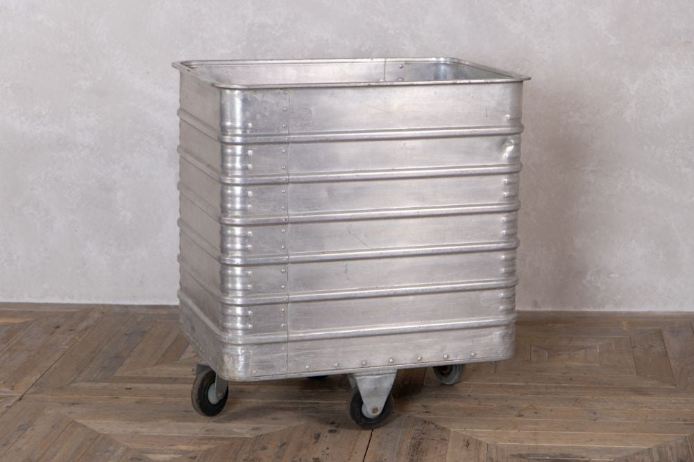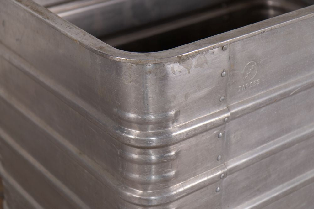 The sturdy and durable Zarges Aluminium Log Box was traditionally used for universal applications and in-company logistics but can now be used to add an industrial statement in a vintage inspired space. This Log Box has generous dimensions to store logs and features two fixed and two swivel castors to ensure easy moving. The slight imperfects to the surface only enhance its authentic vintage character!
