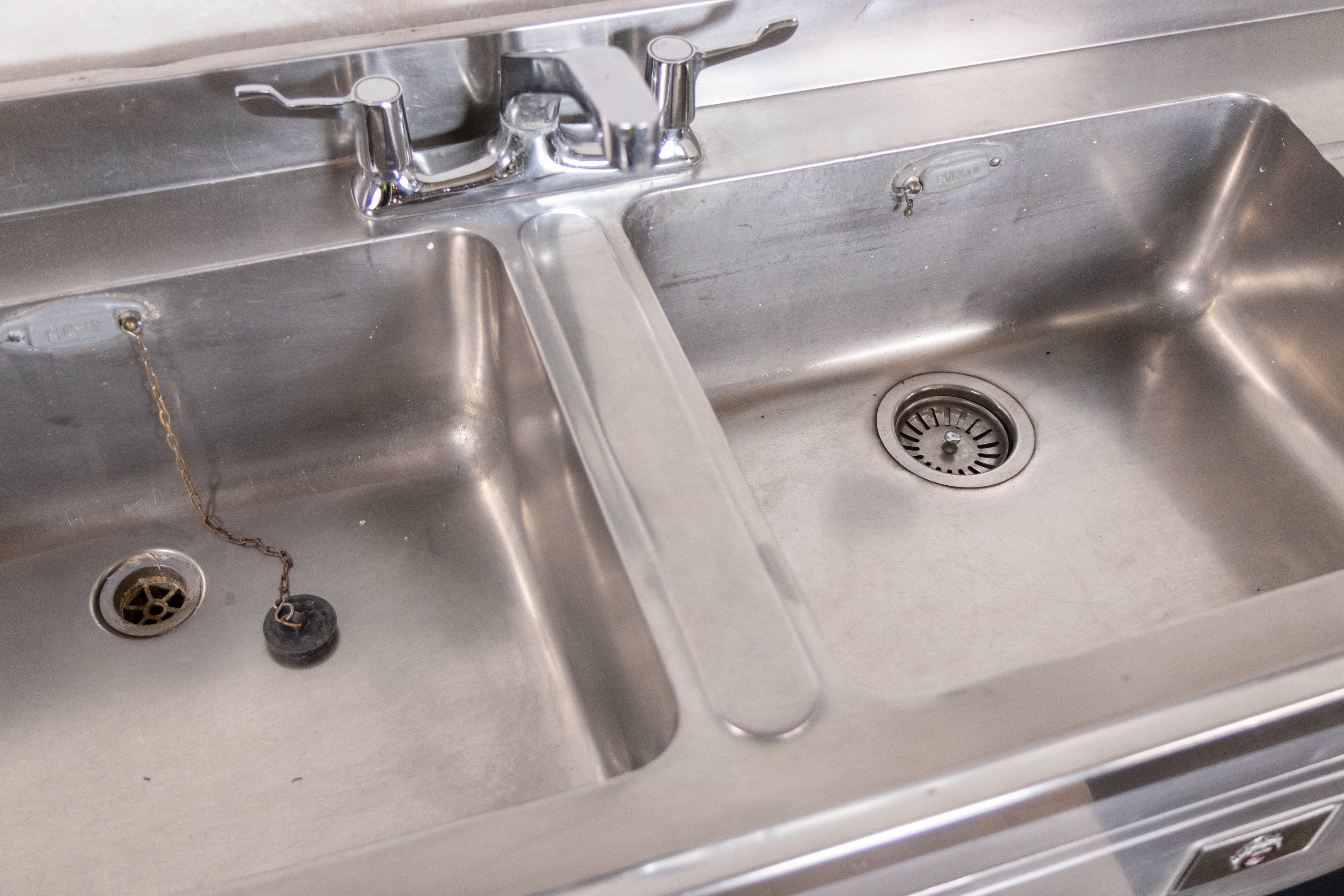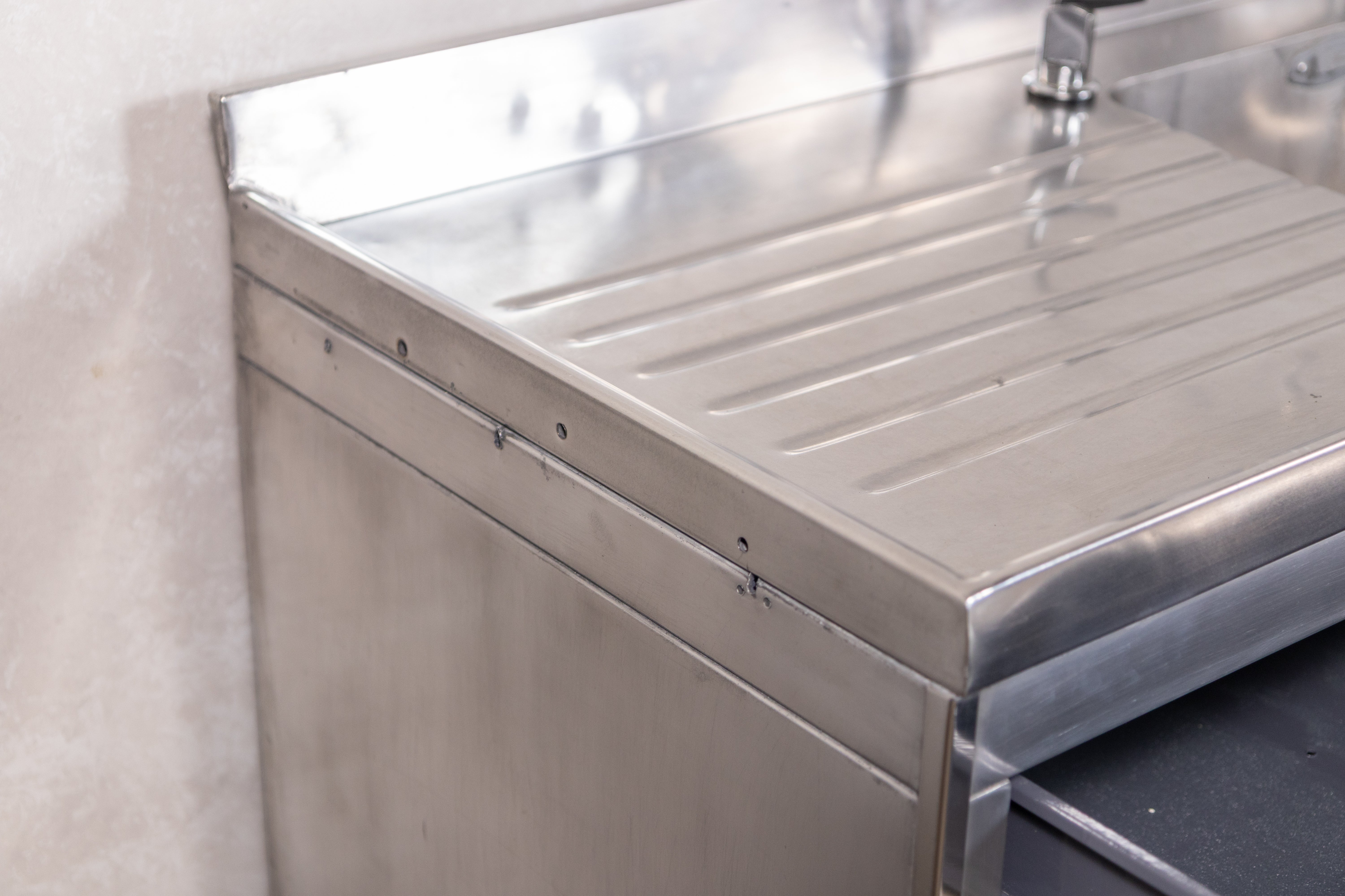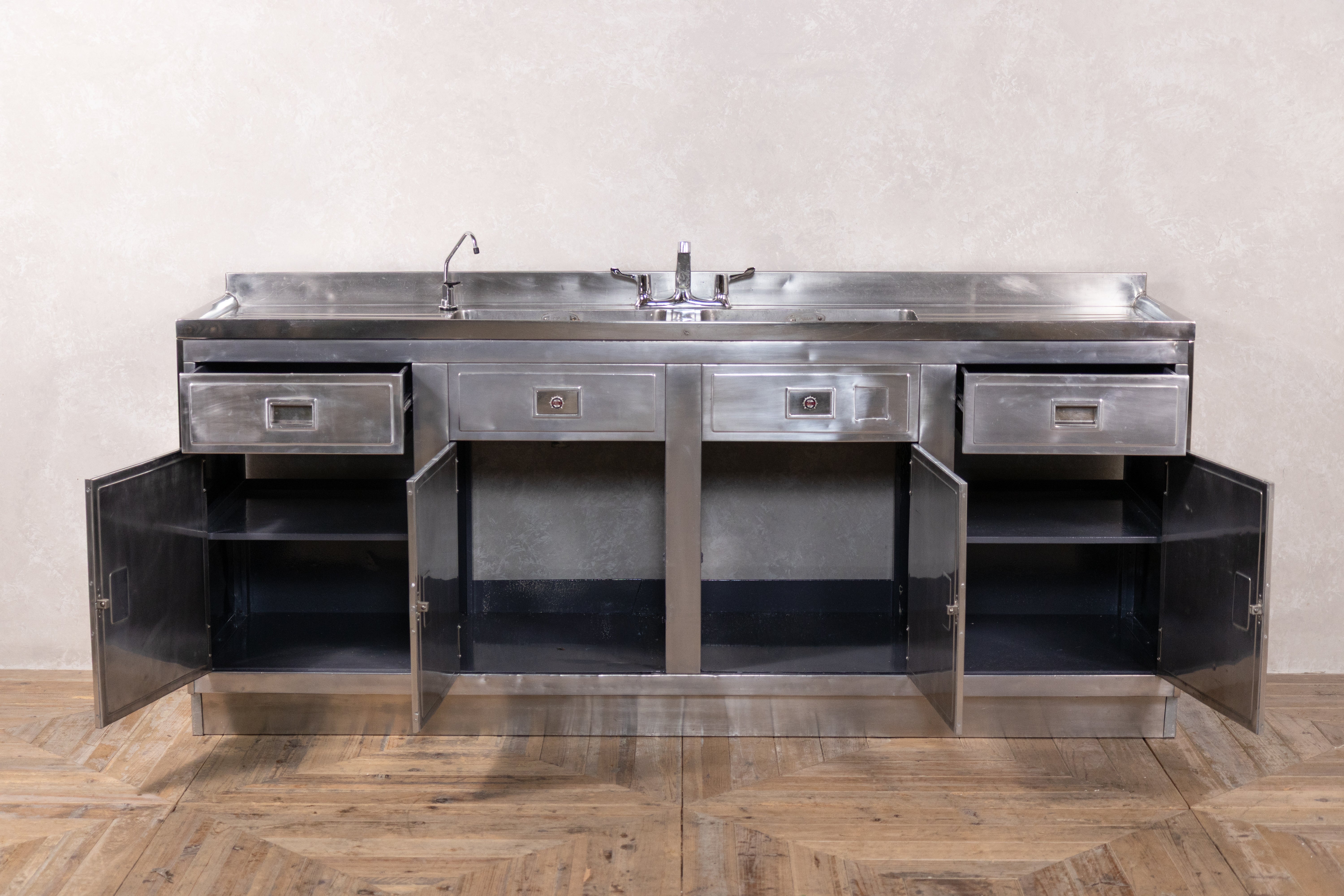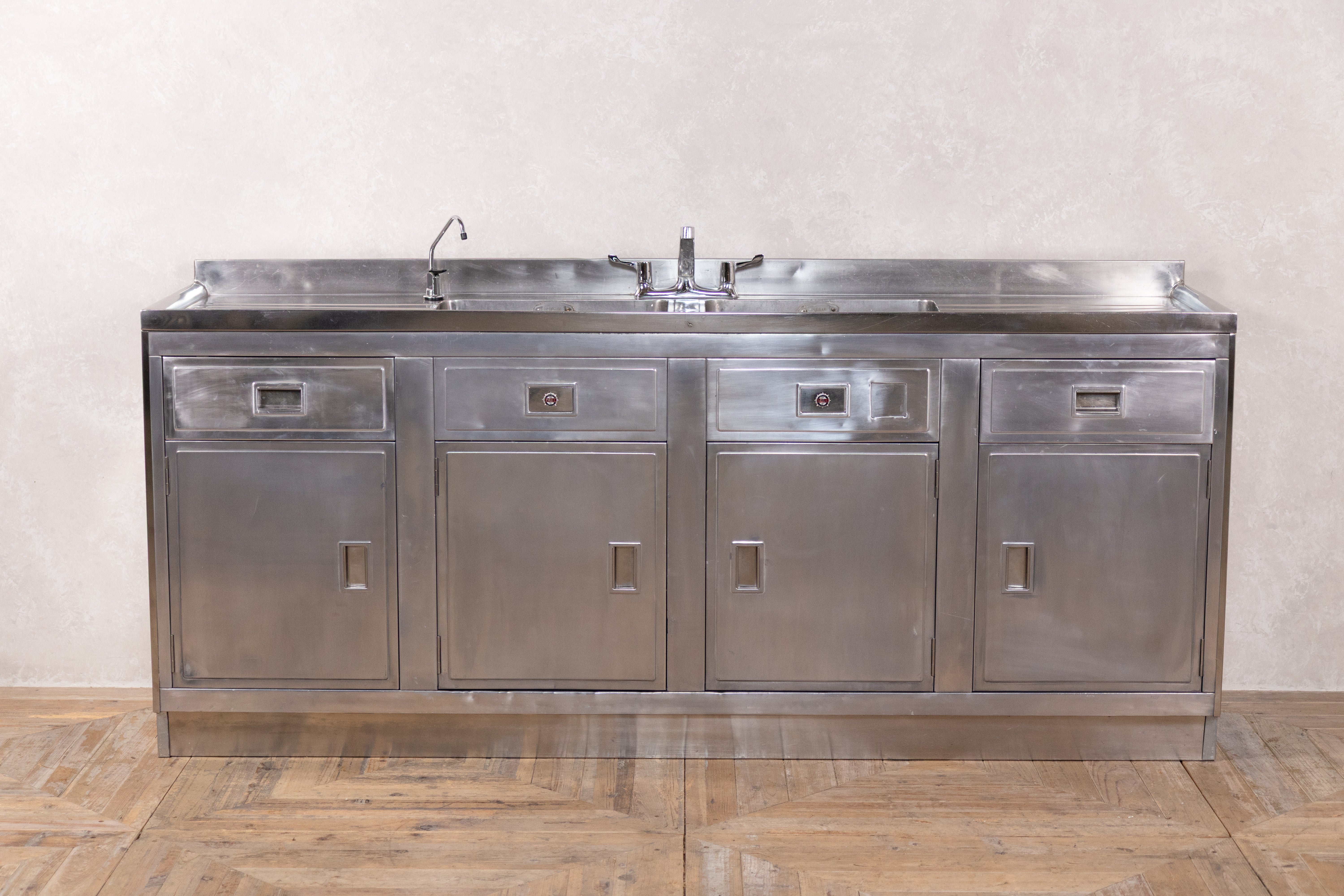 Originally crafted by Paul Metal Craft Kitchen, these vintage units represent quality mid-century manufacturing with robust construction and integrated sink facilities. The brushed aluminium finish brings an industrial charm that works equally well in rustic settings or contemporary spaces seeking genuine vintage appeal.