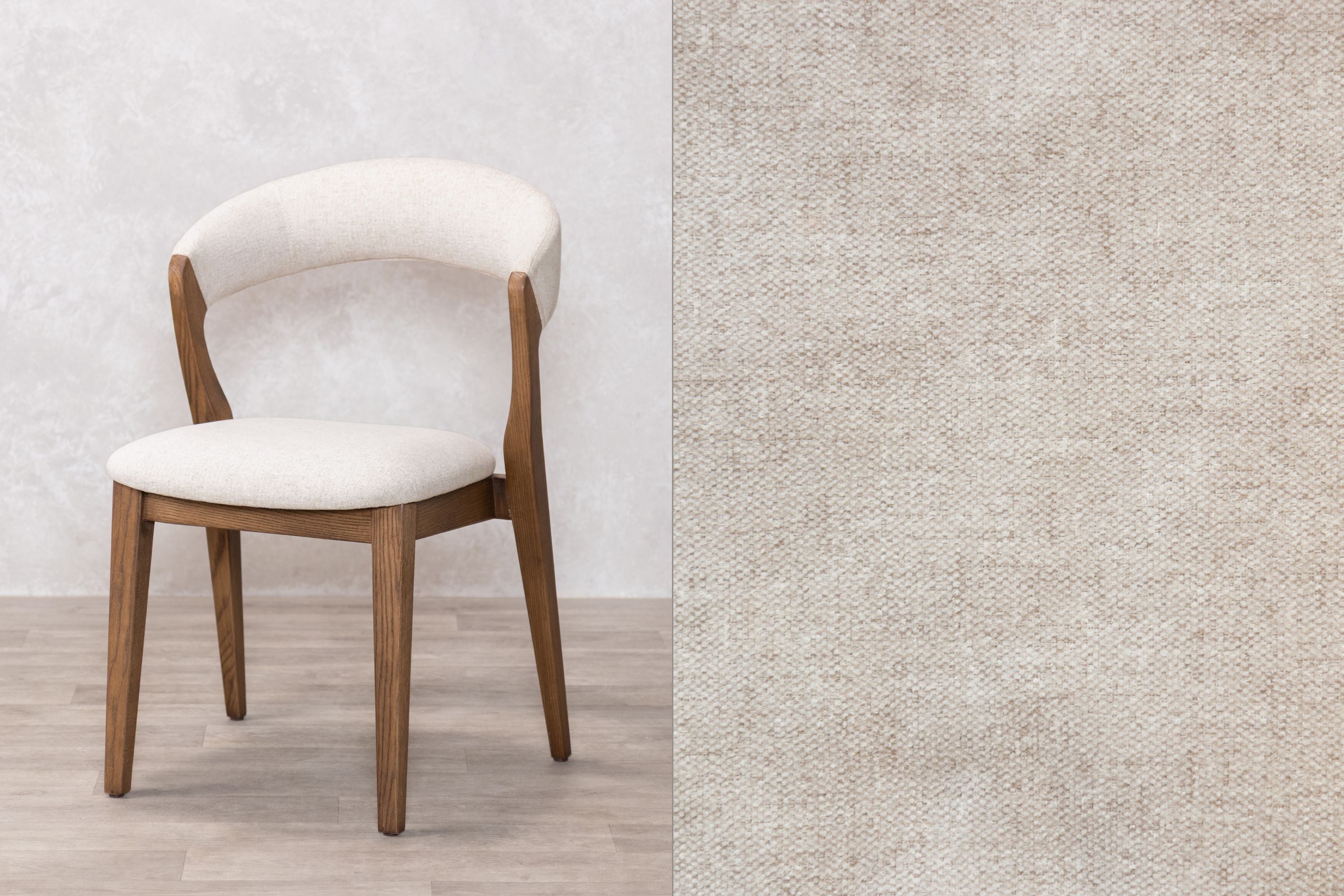 The chair's ergonomic design showcases a carefully contoured backrest that provides support, while the generously foam-cushioned seat ensures lasting comfort even during extended dining experiences. These thoughtfully selected earth tones create a timeless aesthetic that effortlessly harmonises with both contemporary and traditional interior designs.