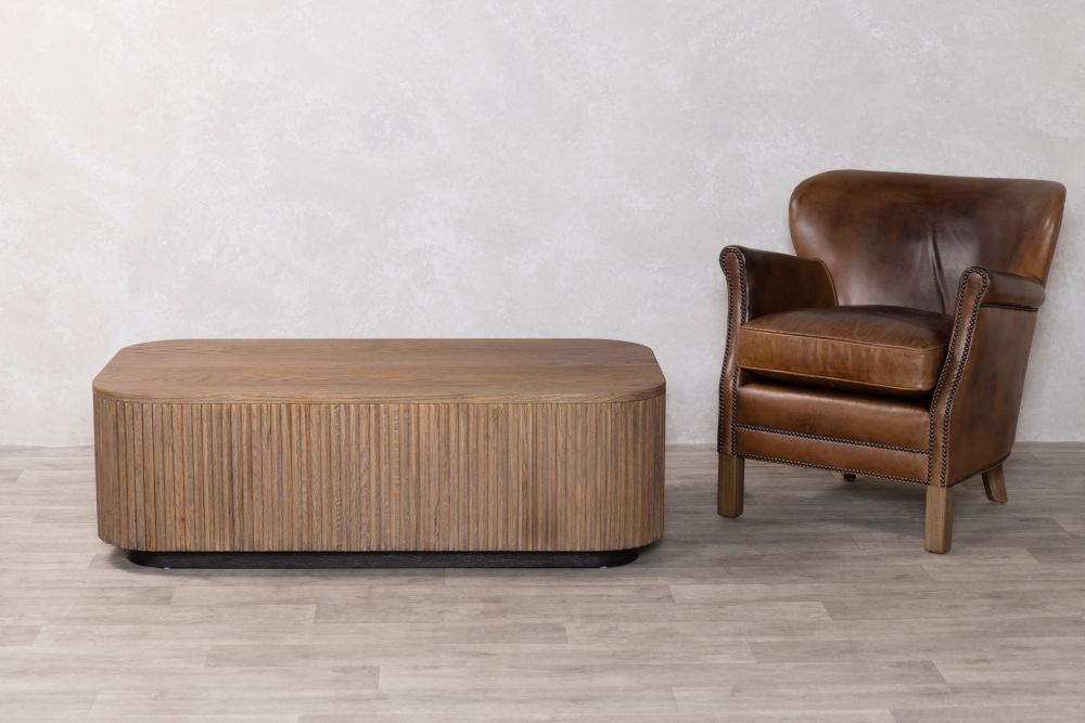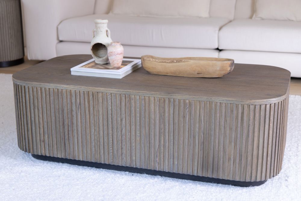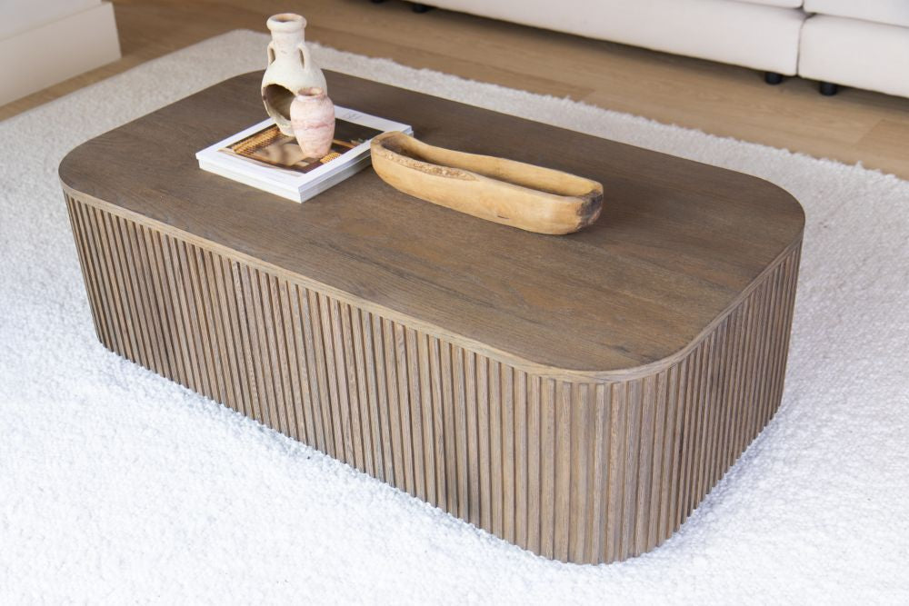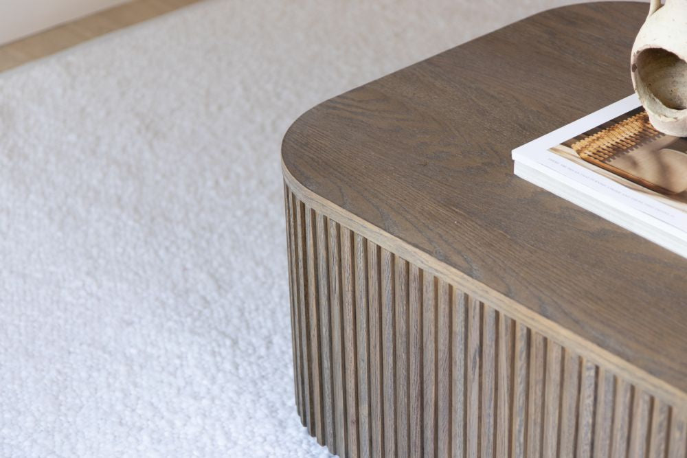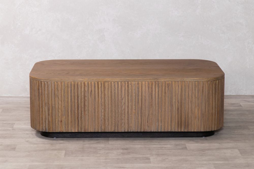 The Ashfield Rectangle Coffee Table combines luxurious textures and tones with a rectangular, fluted, solid ebonised oak base.