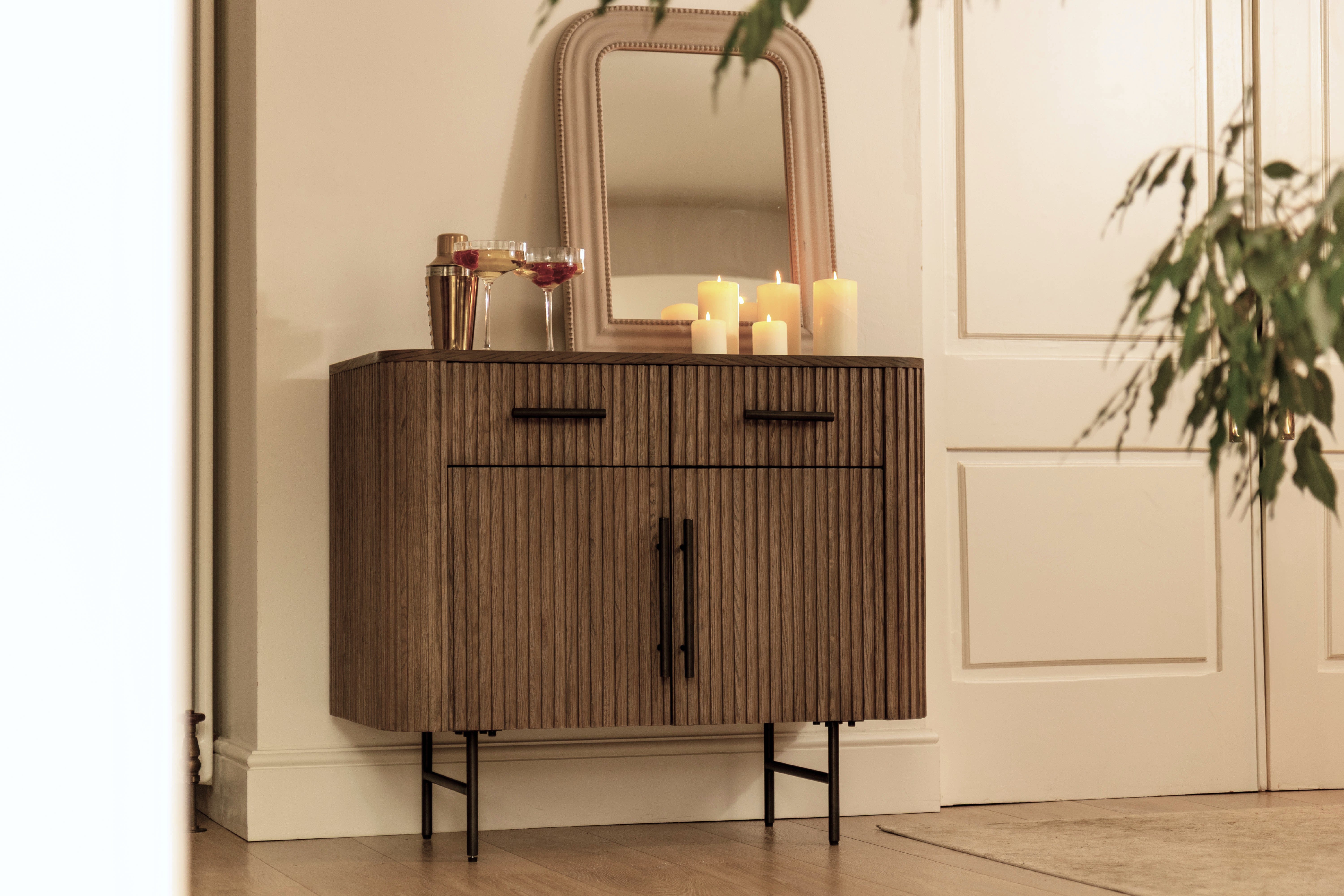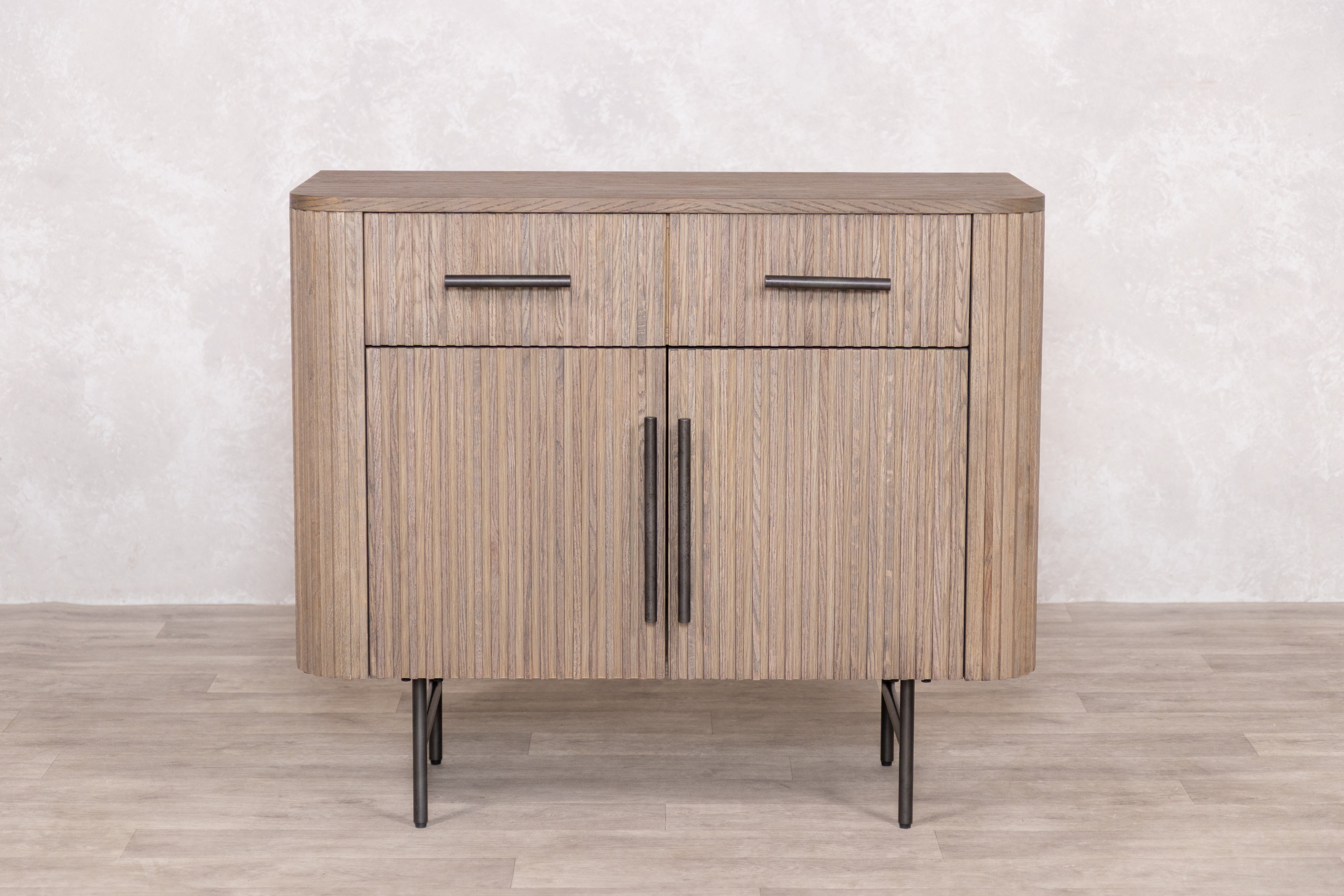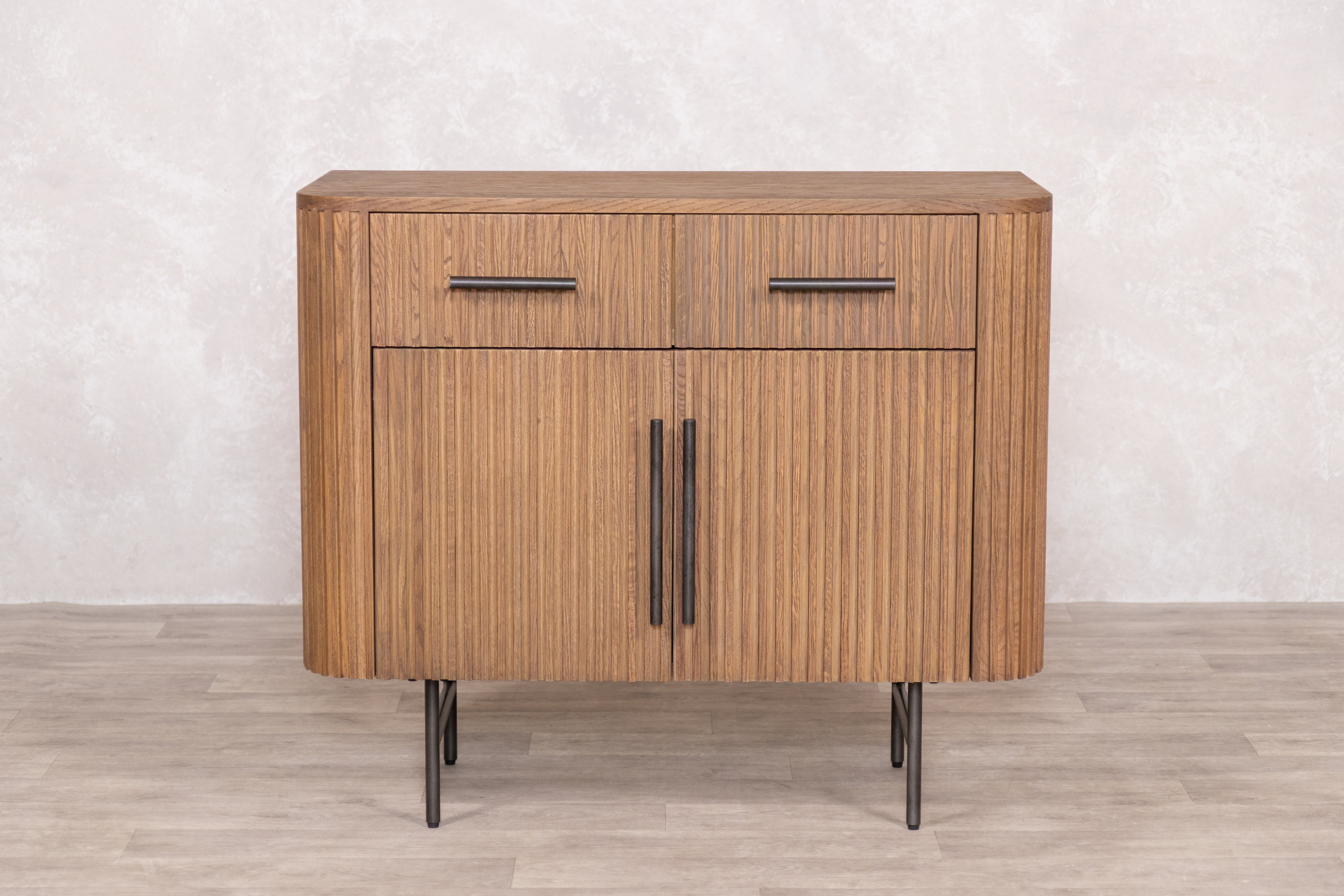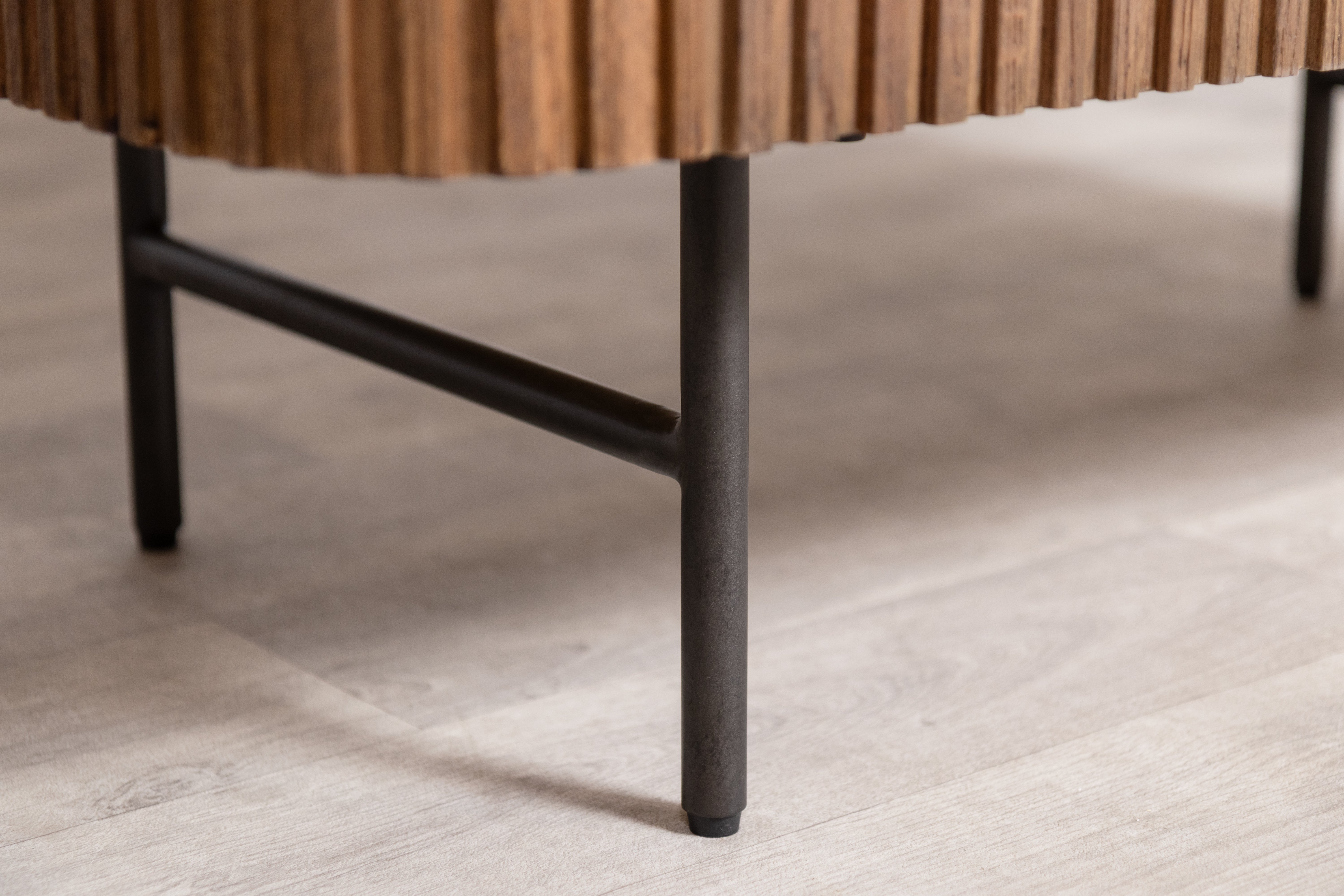 Offering extensive storage and a streamlined contemporary design, the Ashfield Ribbed Two Door Sideboard with Drawers brings a sophisticated edge to your home or commercial space. The two storage drawers above the four doors maximise your storage options while maintaining a clean and polished profile. Crafted from premium red oak with a distinctive ribbed pattern, black metal hardware, and soft closing hinges, the Ashfield fits perfectly into any space, whether a hallway, lounge, or bedroom.