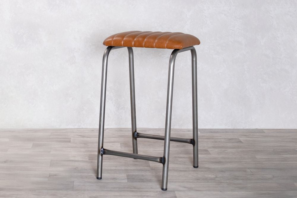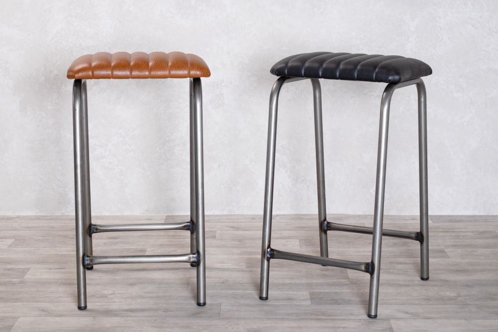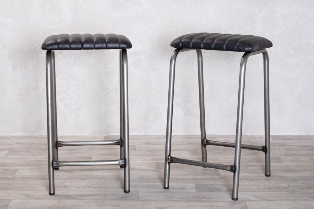 Take a seat on our Finsbury Backless Counter Stools. Featuring a 22mm tubular steel frame and a textured faux leather seat with elegant ribbed stitching, these are stackable, an advantage to bars and restaurants that need a bit of extra seating.