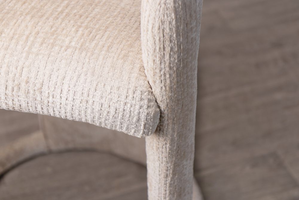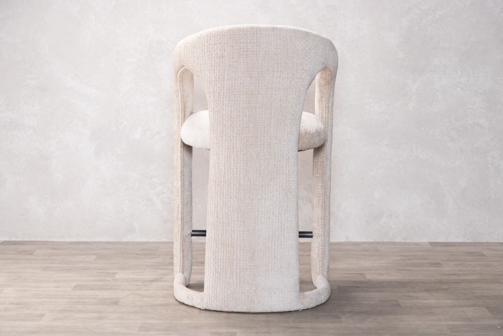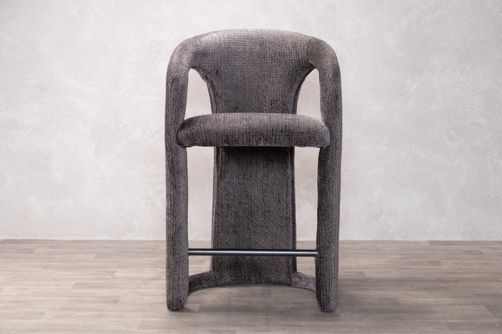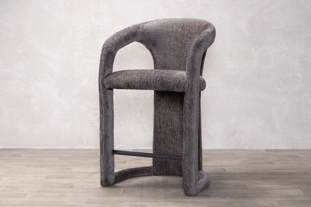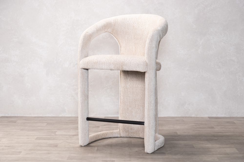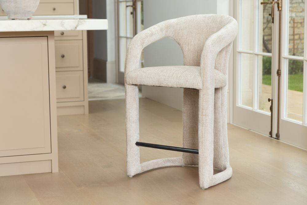 The Beatrice Counter Stool is where Scandinavian simplicity meets modern elegance. This stunning piece features a unique curved design, which is fully upholstered in a premium chenille fabric and a metal footrest to add contemporary flare. The Beatrice presents a comfortable and supportive seat, whilst the plywood and pine internal frame ensures durability.