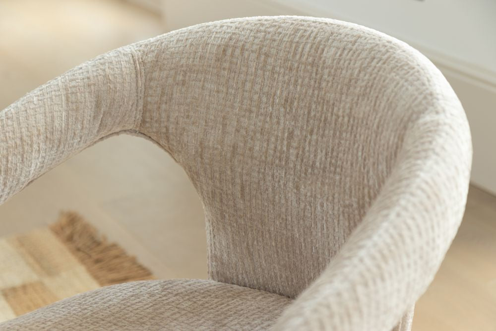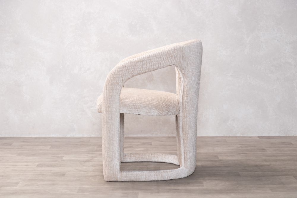 The Beatrice Dining Chair is where Scandinavian simplicity meets modern elegance. This stunning piece features a unique curved design, which is fully upholstered in a premium chenille fabric with a plush foam-filled seat. The Beatrice presents a comfortable and supportive seat, whilst the plywood and pine internal frame ensures durability.