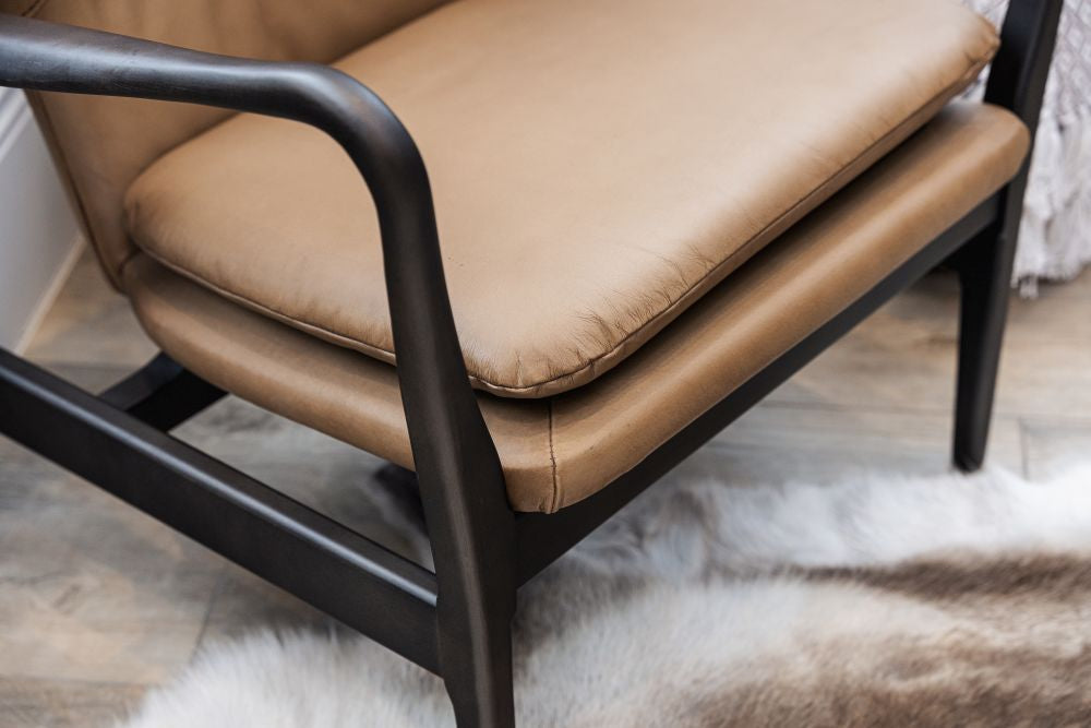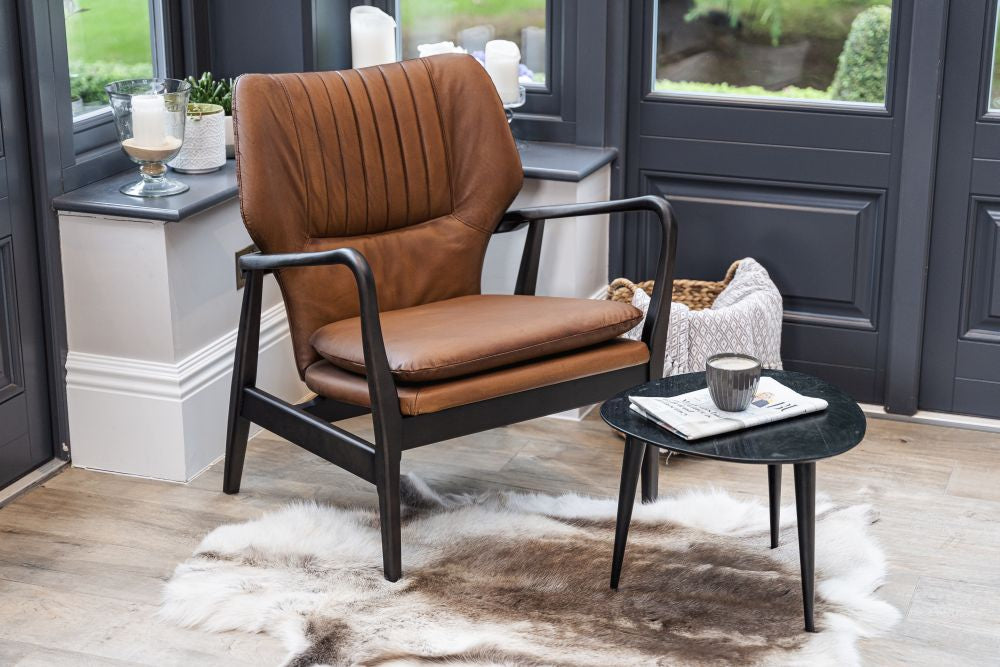 Our Belgrave Leather Armchair features a sophisticated Scandi style frame and a slouchy, but comfortable seat with supple leather to the seat and back.