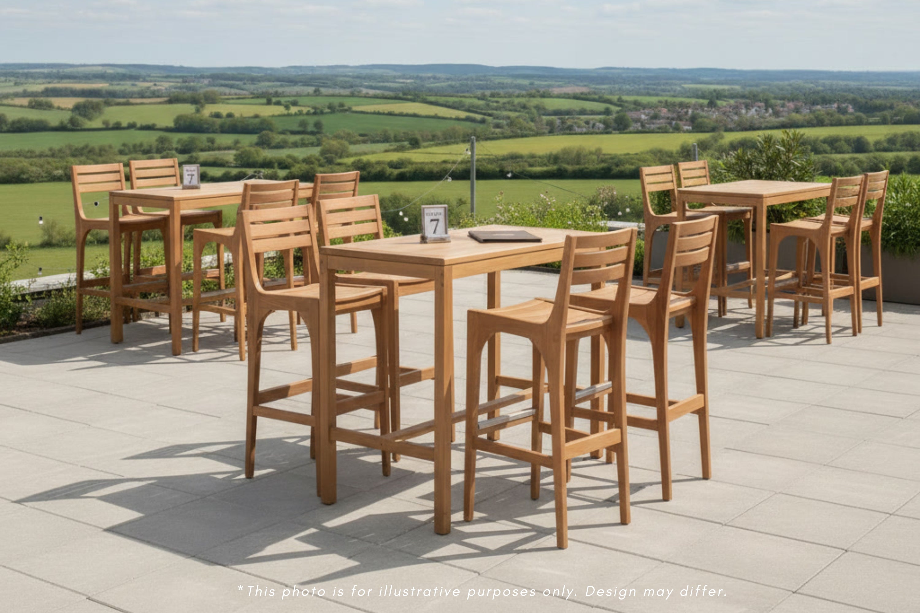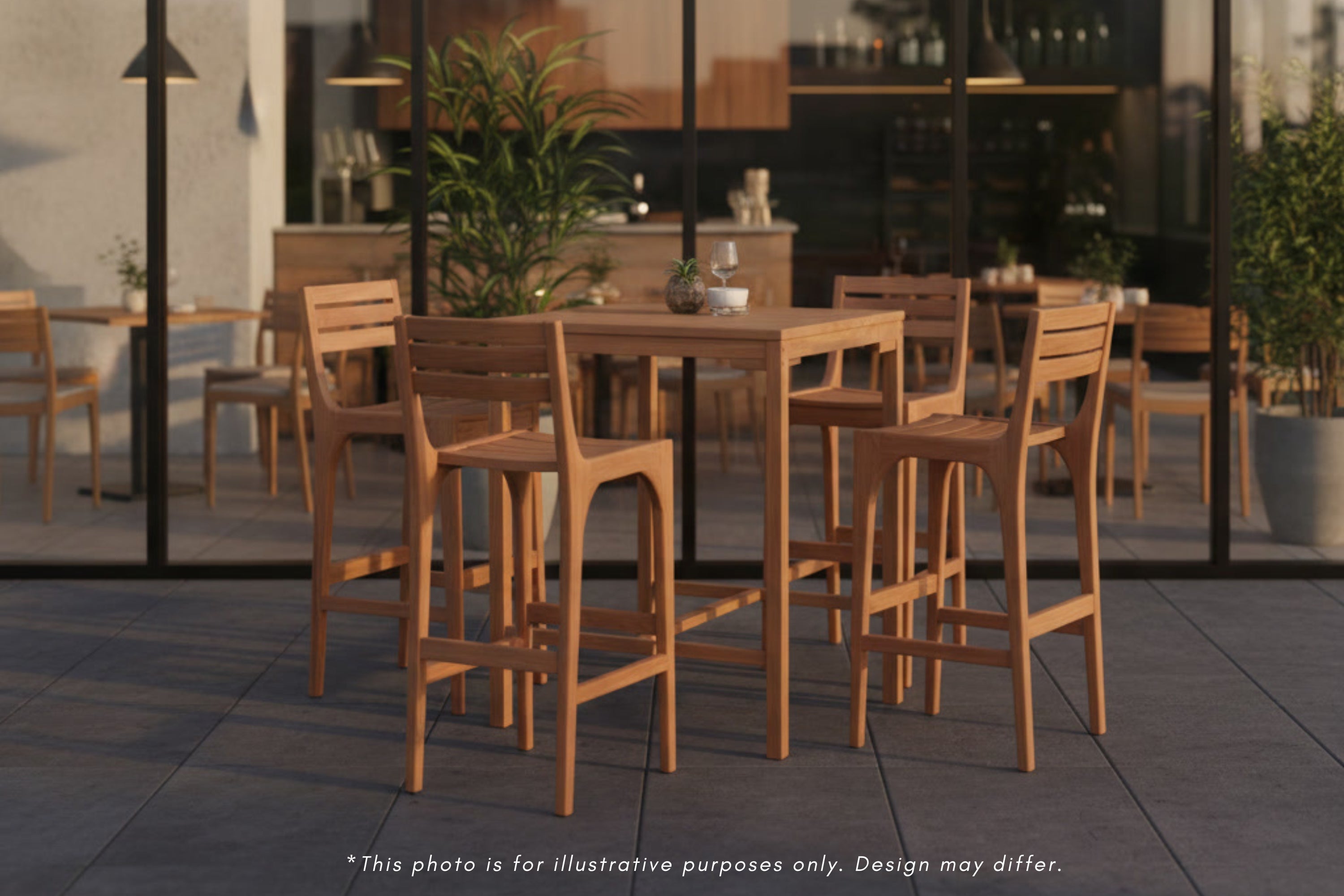 The Bistro Bar Table is a practical and versatile piece crafted from Indonesian golden Teakwood. The natural timber showcases the beautiful grain and warm honey tones characteristic of premium teak, bringing organic warmth to outdoor entertaining spaces. The clean-lined rectangular frame provides stable support, while the generous top offers ample surface space for alfresco dining, drinks, and gatherings. The simple yet sturdy construction makes this bar table ideal for outdoor kitchens, patios, and garden entertaining areas.