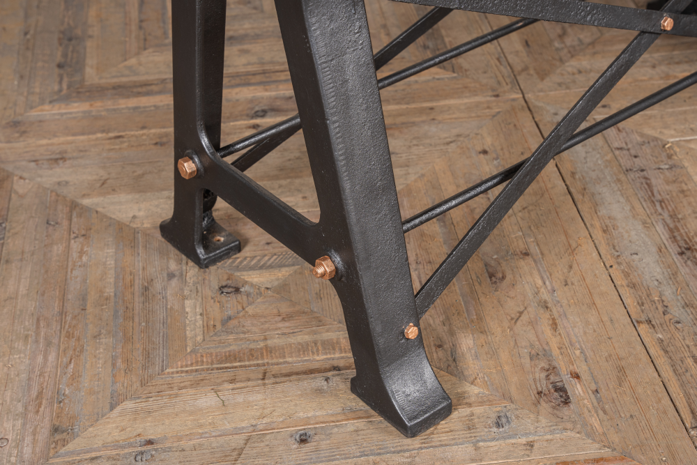 An inspirational piece of industrial furniture, this Blacksmith's Cast Iron Upcycled Bar Table is a rare find. Originally a blacksmith's workbench, this vintage bar table is seeped in history, bringing character to your space. This upcycled table has a cast iron table base, strong and sturdy, this bar table will gain lots of authentic characteristics with age that will last for years to come. Perfect for an industrial bar or restaurant, this table is a must-have industrial piece.