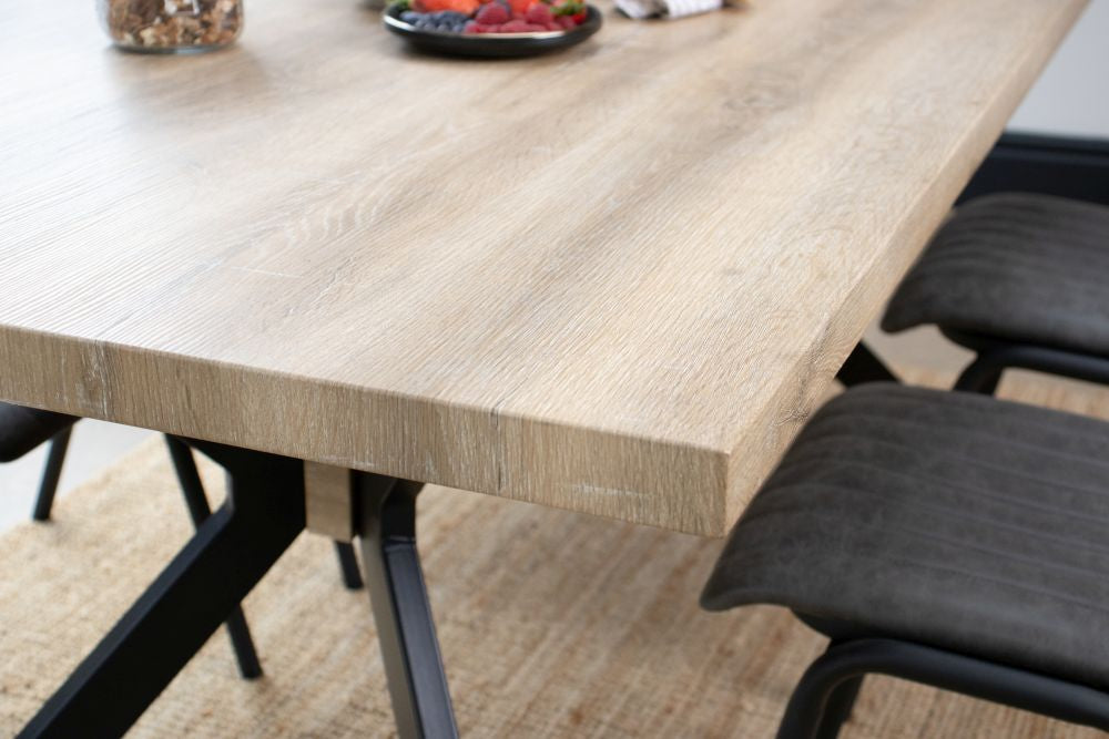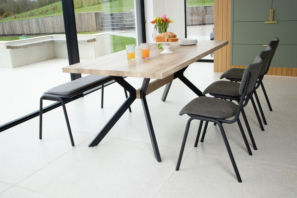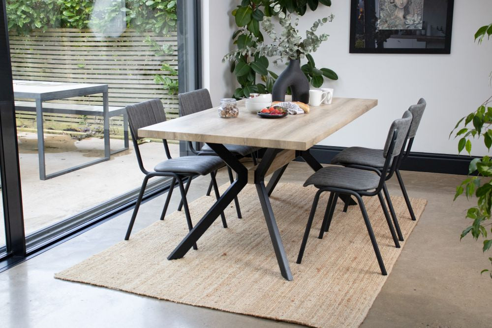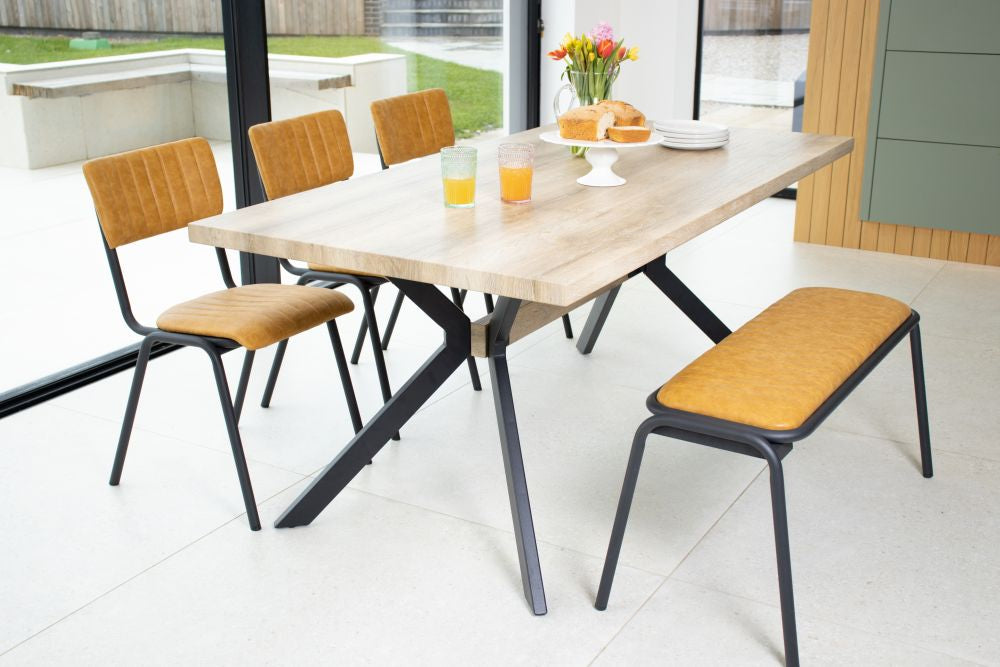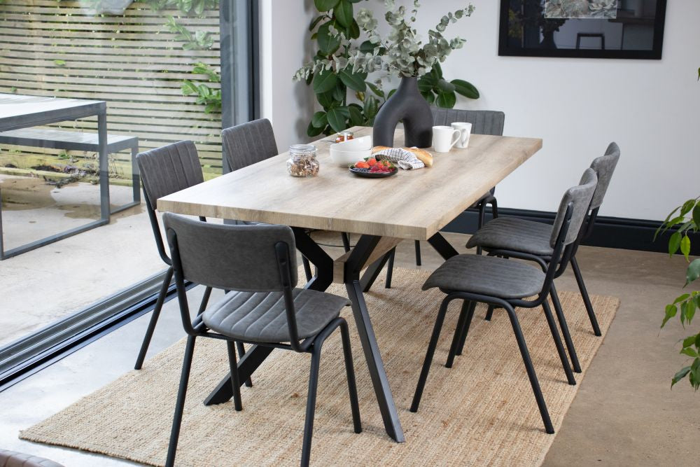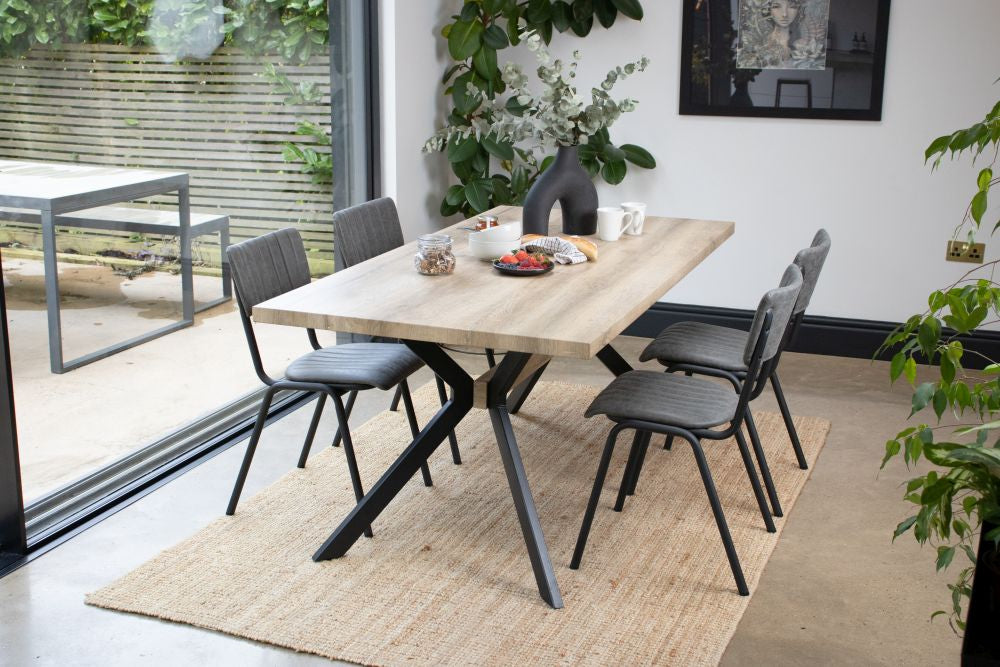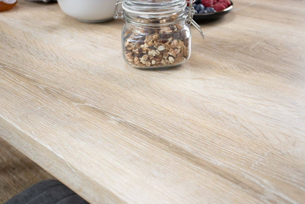 Dine in style with the brand-new Bowness Dining Table. Finished with an oak effect top, this modern wooden dining table will bring a touch of chicness to your home. Featuring beautiful wood with unique grain variations that do the talking, this table is sure to be the centrepiece of any dining room.