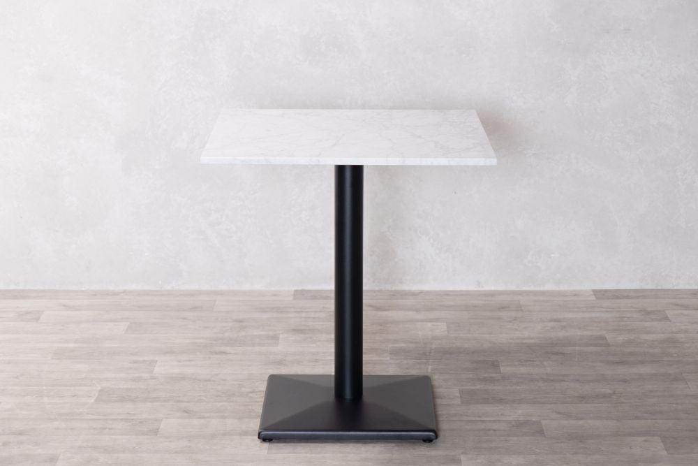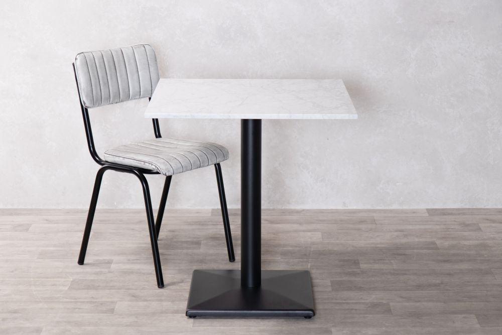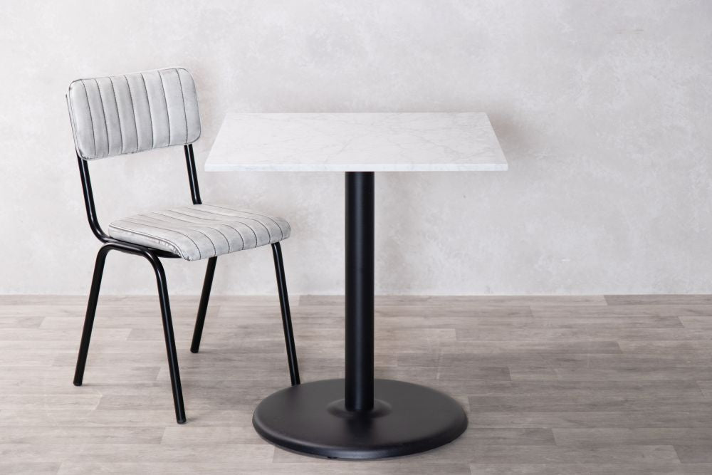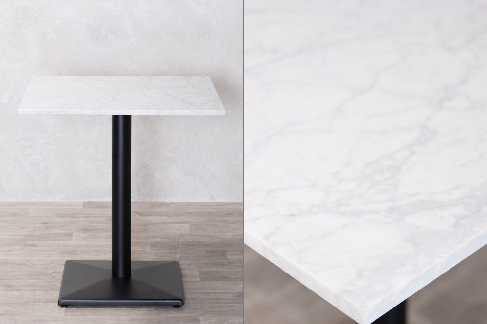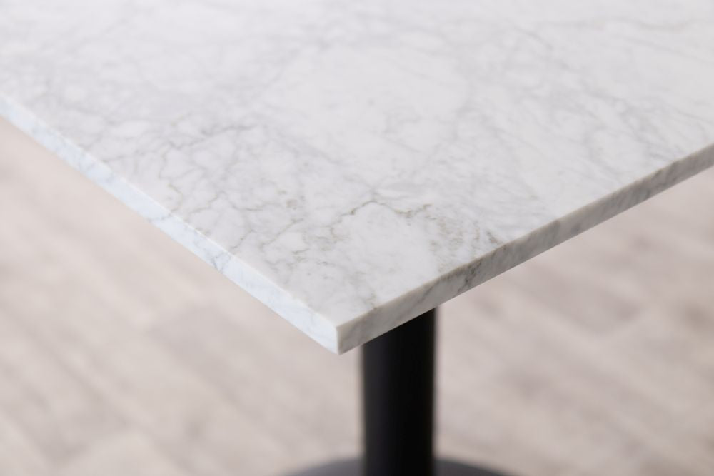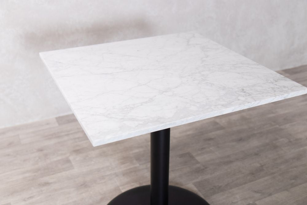 The Carrera Square Café Table Range will add refined luxury to your bar or restaurant with its sleek, versatile shape and its sophisticated, contrasting colourways. Customise your Carrera to complement your interior style by choosing from a round or square marble tabletop, a round or square hard-wearing steel base that features a matte finish, and finally, café or bar table height.