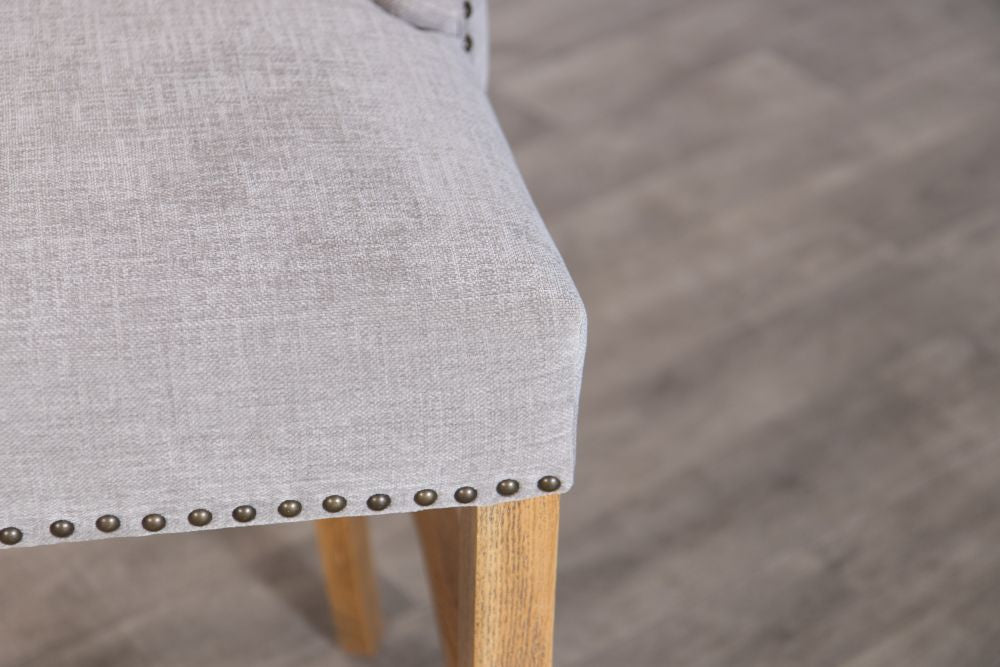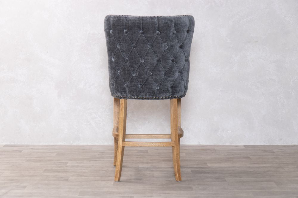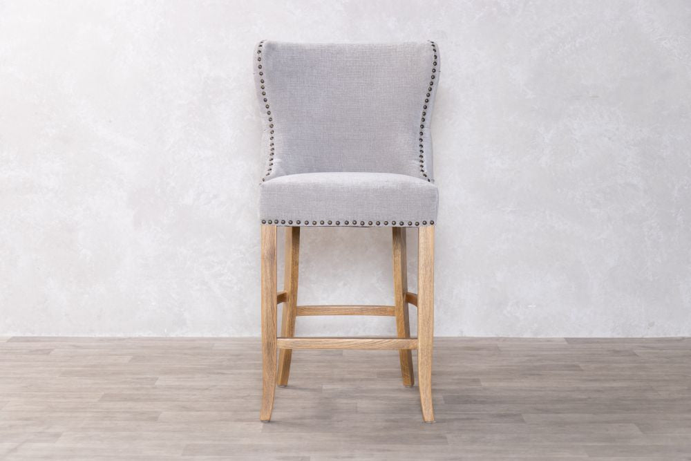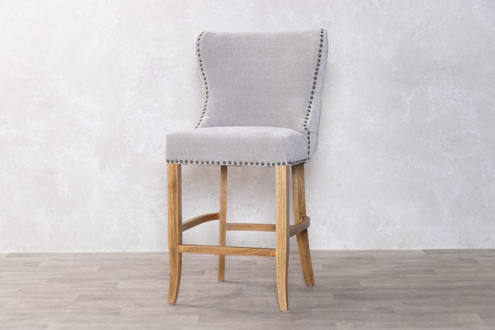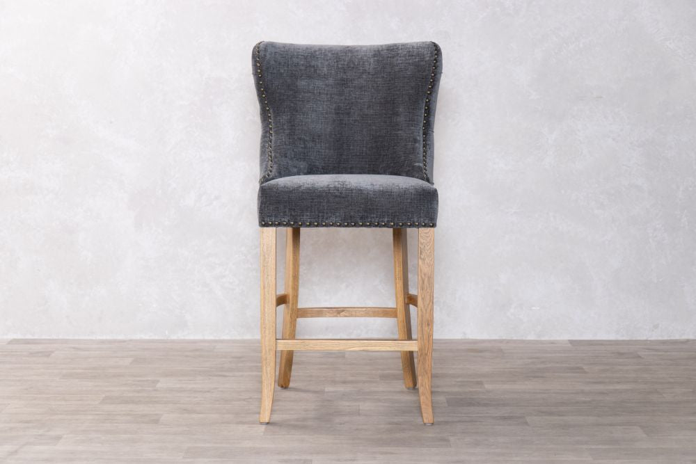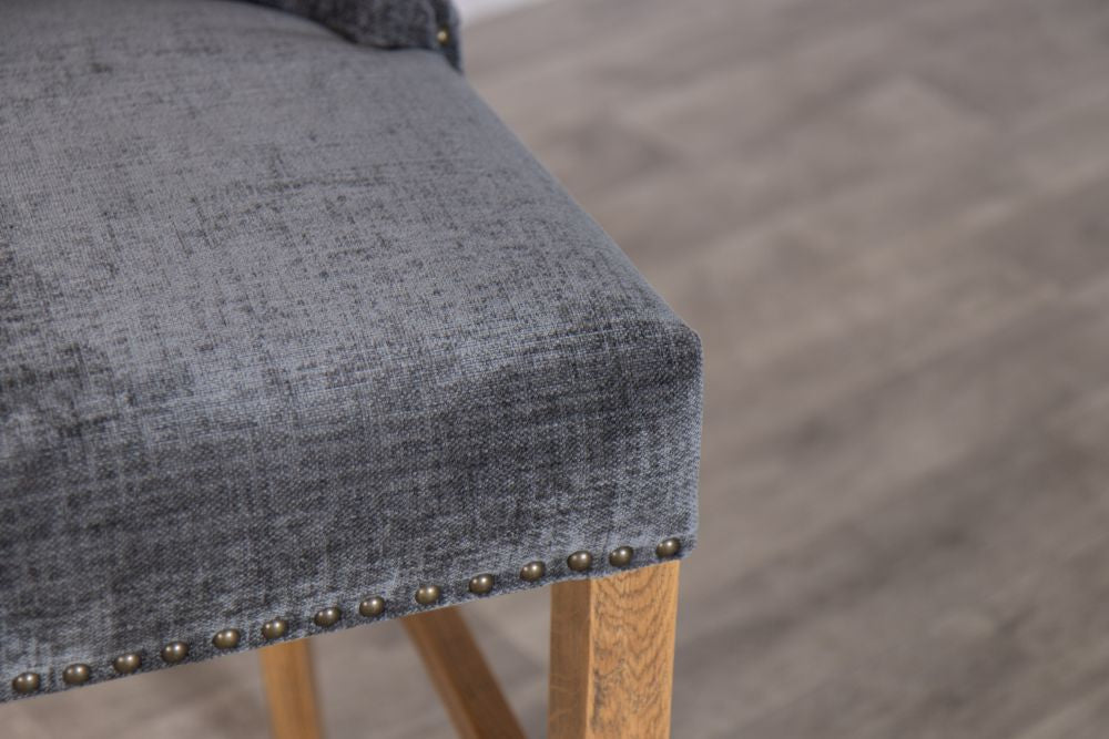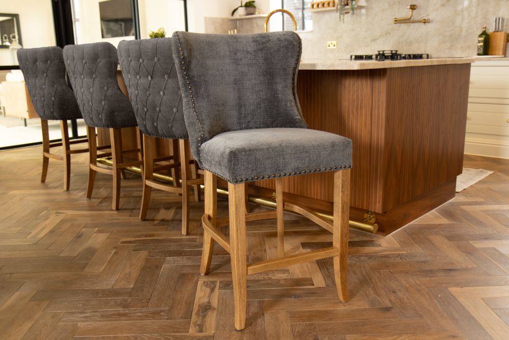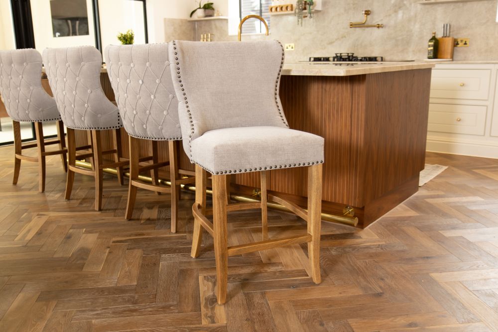Add French elegance to your home with the Chamonix French Style Upholstered Stool. Perfect for your kitchen island, breakfast bar or home bar, the luxurious stool is versatile, and brings grown up sophistication to your interior. The traditional French-style stool has pressed button detail and stands tall on oak legs, which will help tie your stool in with the rest of your home décor.