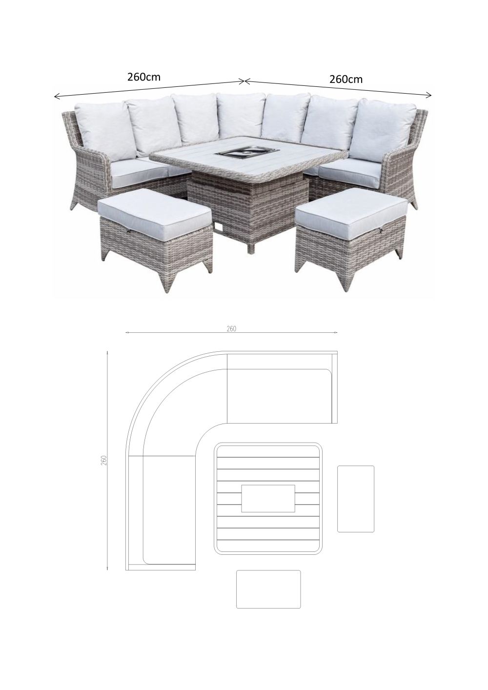 Charlecote Outdoor Corner Dining Set with Lift Table - Grey
