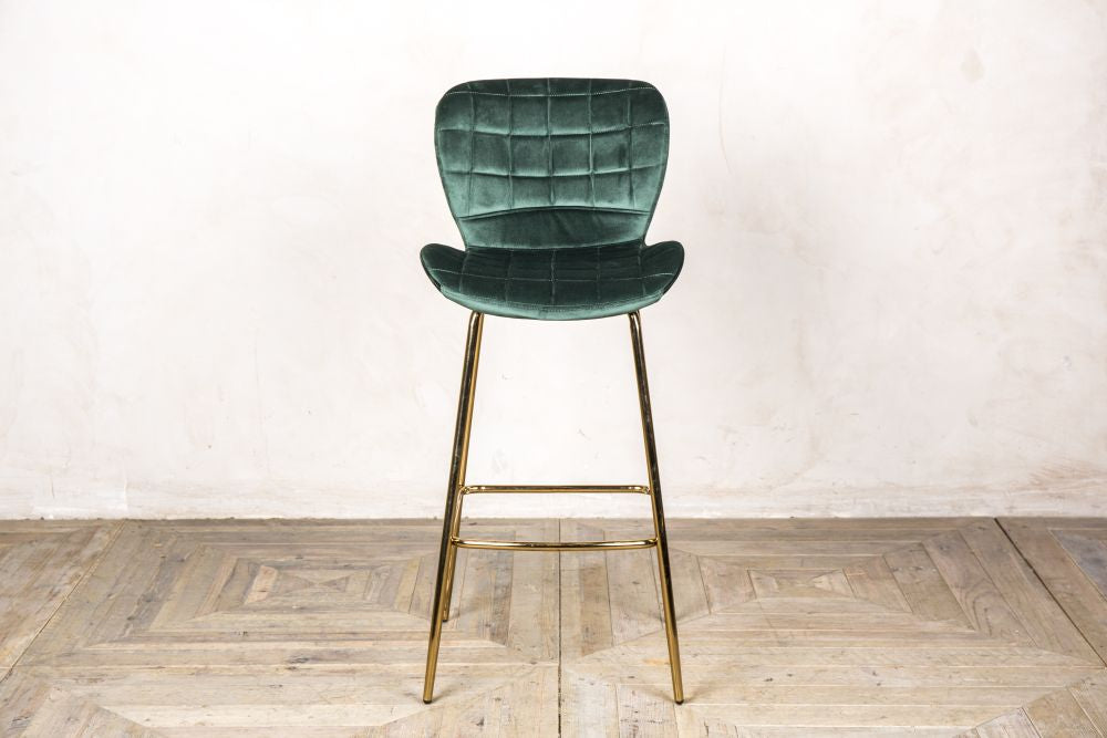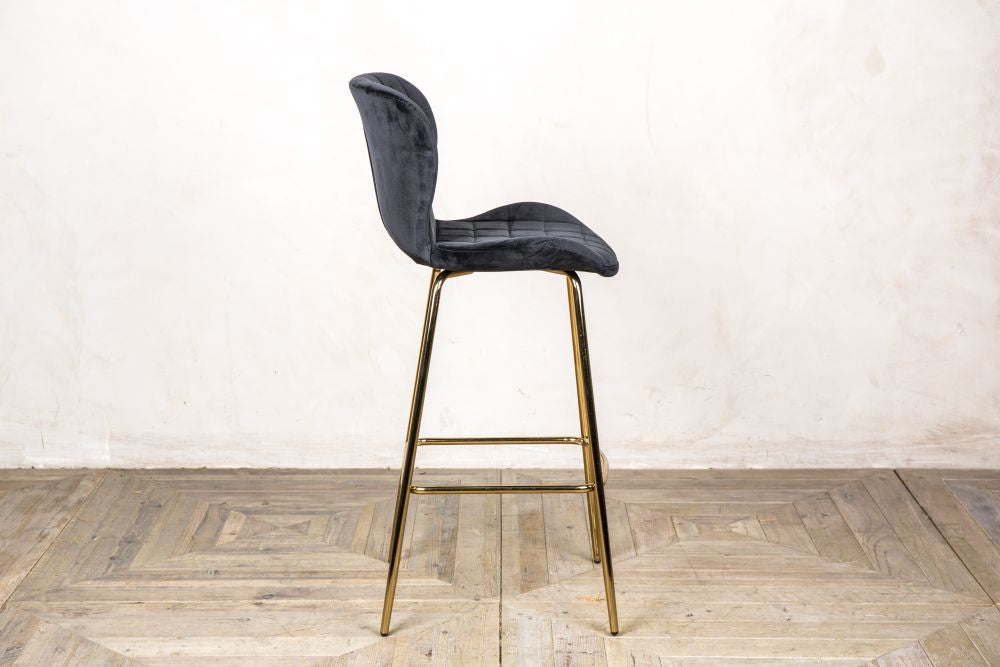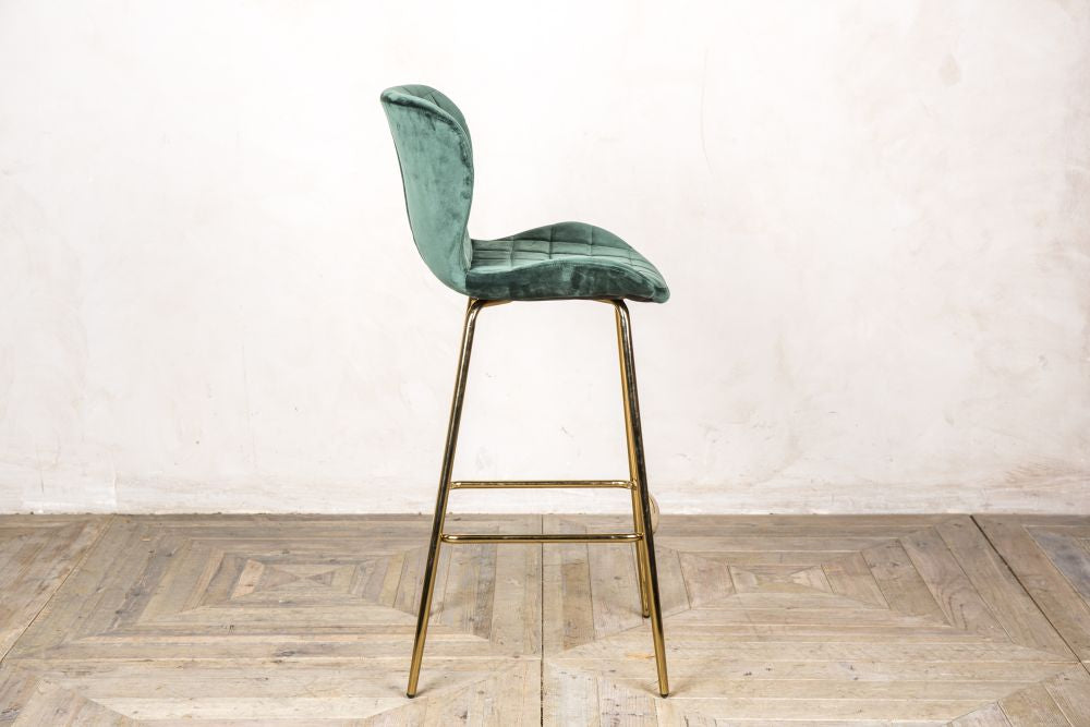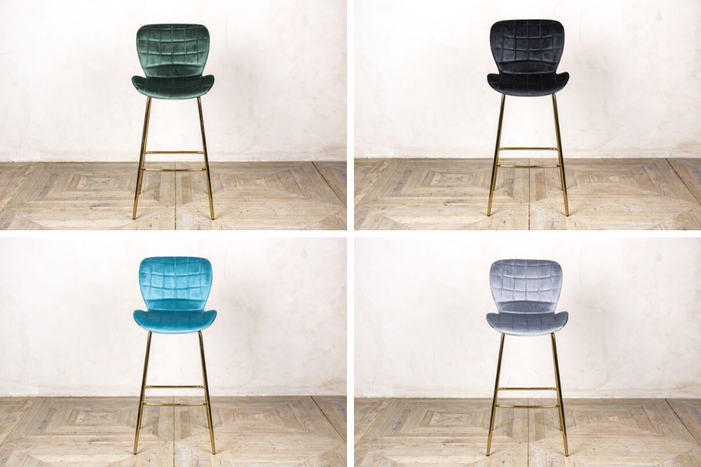 Our charming and delicate Lily Velvet Upholstered Bar Stools are sold in pairs. Featuring velvet upholstery and a gold-plated steel frame and with four rich shades to choose from, these chairs bring a soft, retro edge to a contemporary space.
