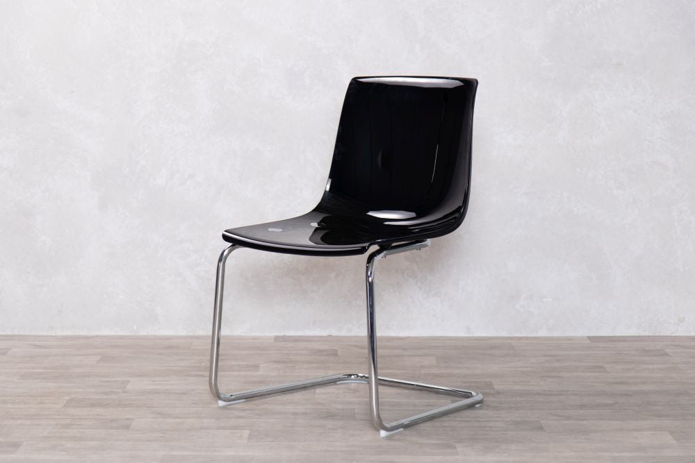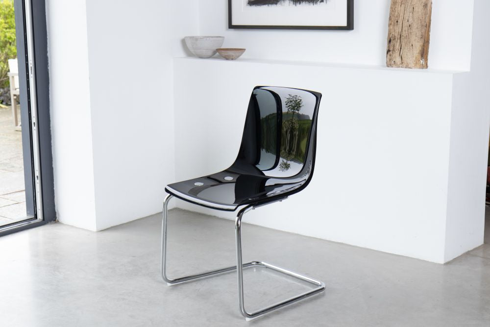Create a clean, retro statement with the 70’s inspired Copenhagen Dining Chair. Perfect for indoor dining spaces, the Copenhagen has a translucent acrylic seat that’s made to be durable and easy to clean. The acrylic seat sits on a chrome cantilever frame which accentuates the iconic silhouette of 70’s inspired style.