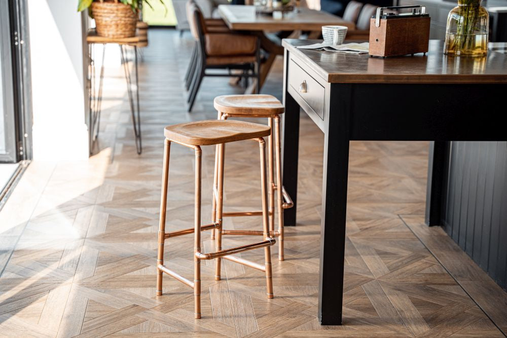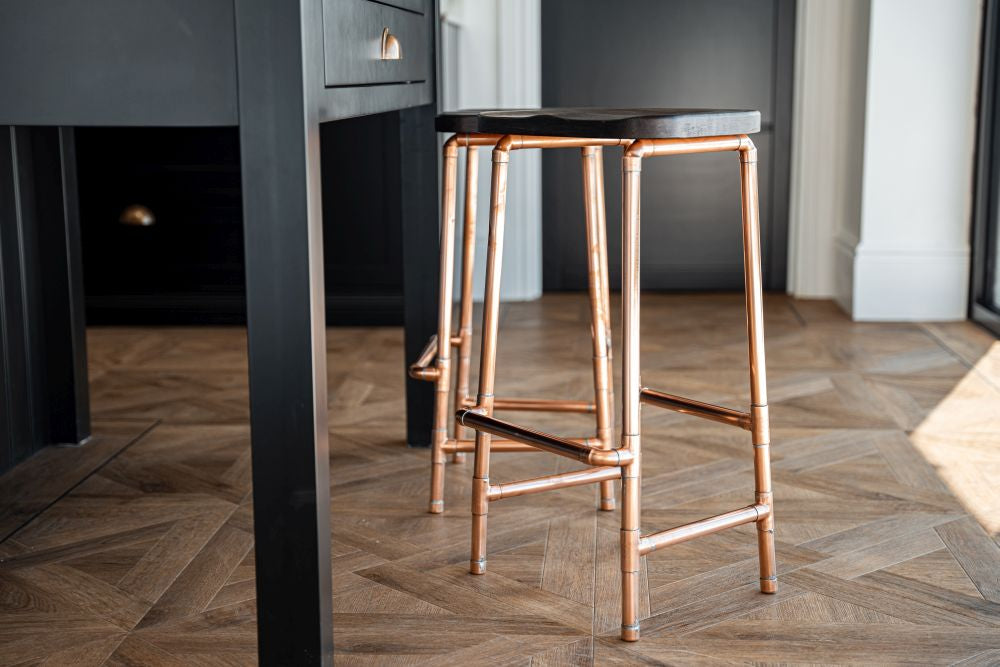 Handmade in the UK from sustainable materials, our Copper Bar Stools will bring vintage style to a space. Copper and its alloys have proven antibacterial properties, which can kill harmful microbes within two hours! The colour of the copper pipework legs will certainly warm up a cold interior, pair the legs with a solid oak seat and you have vintage, industrial chic that will rejuvenate any bar or restaurant space.