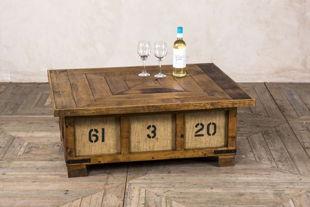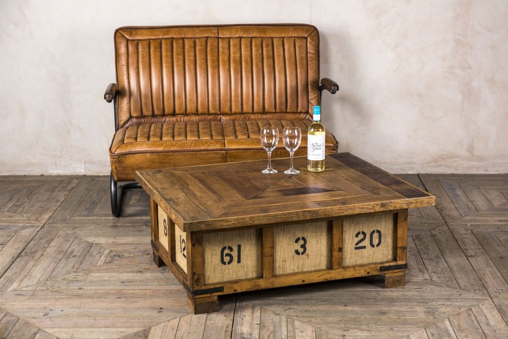 Add rustic style to your home or business with this crate coffee table. It would ideally suit a country or vintage inspired space.