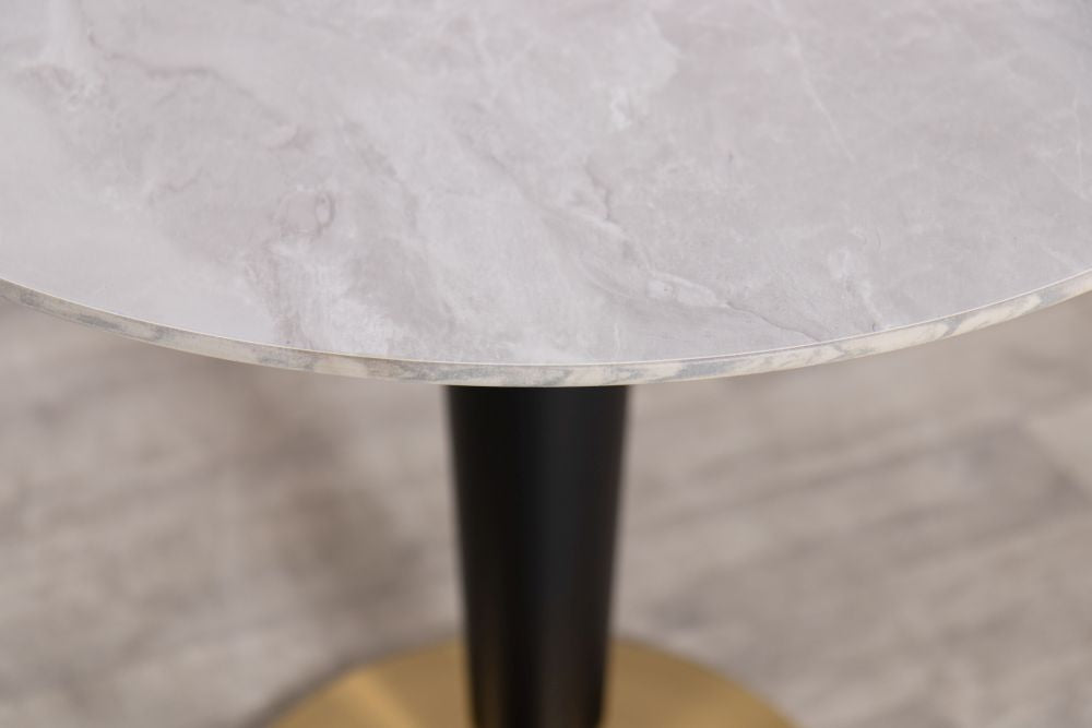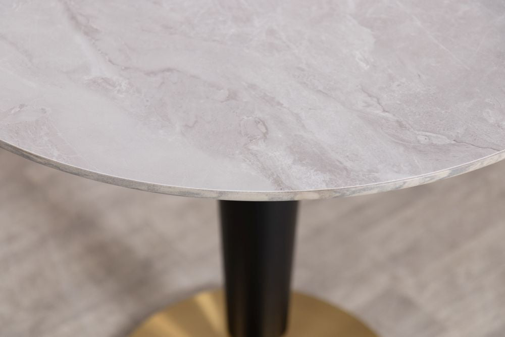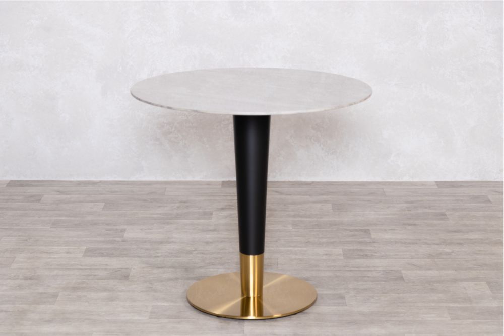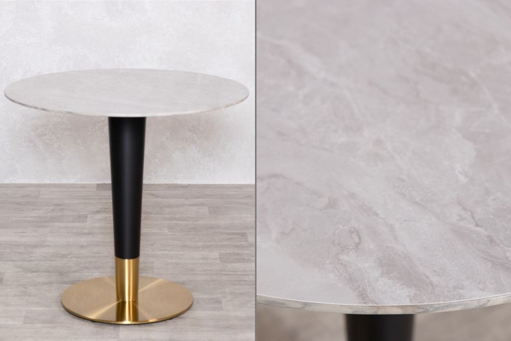 Stylish yet elegant, our Dark Porcelain Marble Café Dining Table could be just what you are looking for. Perfect for a swanky Italian pizzeria or an upmarket coffee shop, these contemporary tables are beautifully made with stimulated Carrara marble on the top, a powder-coated column and a brass base. These are available in both light marble and dark marble.
