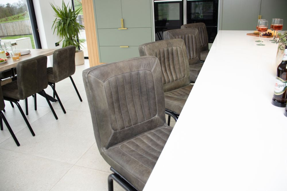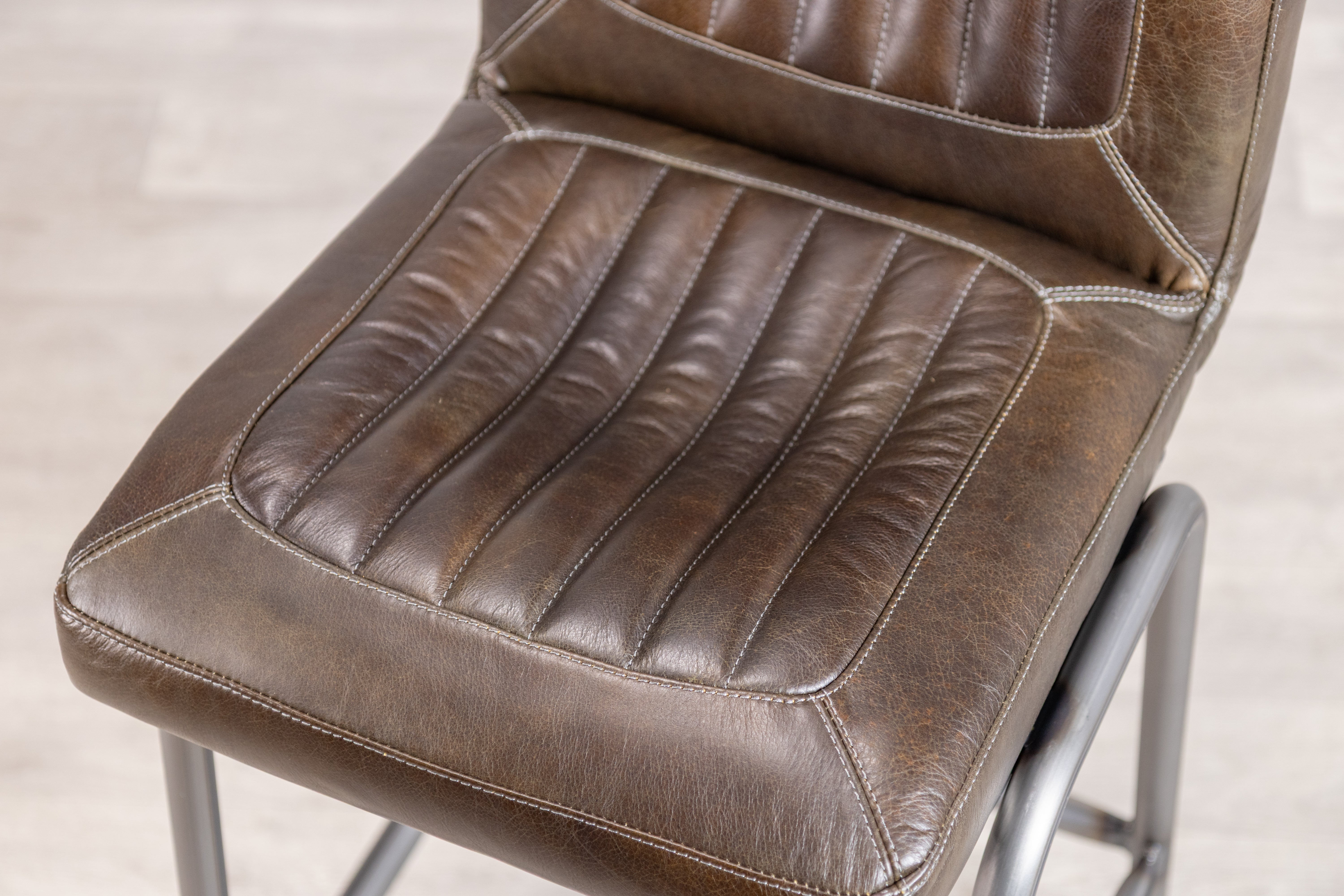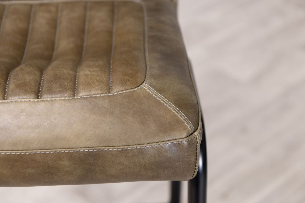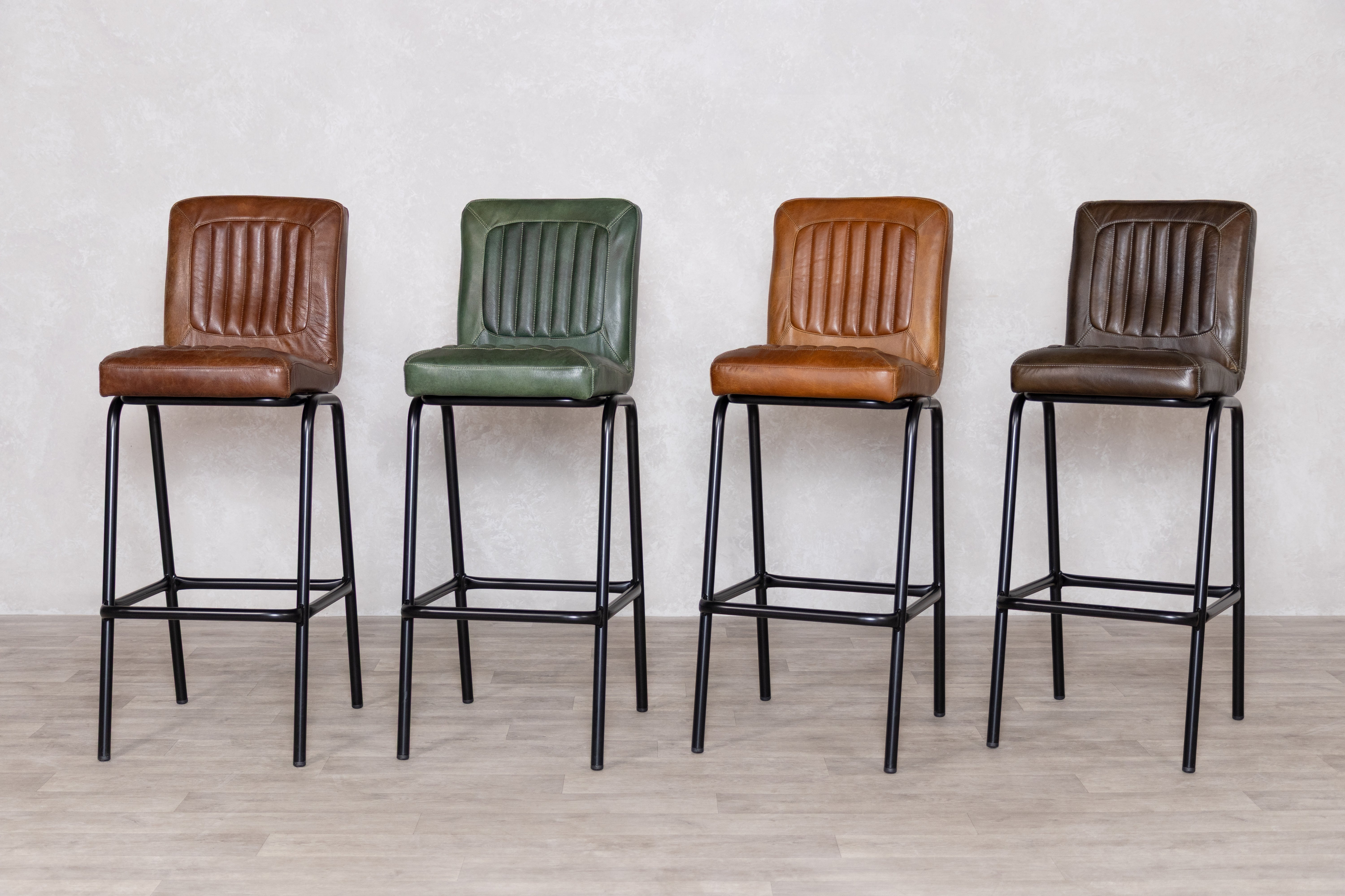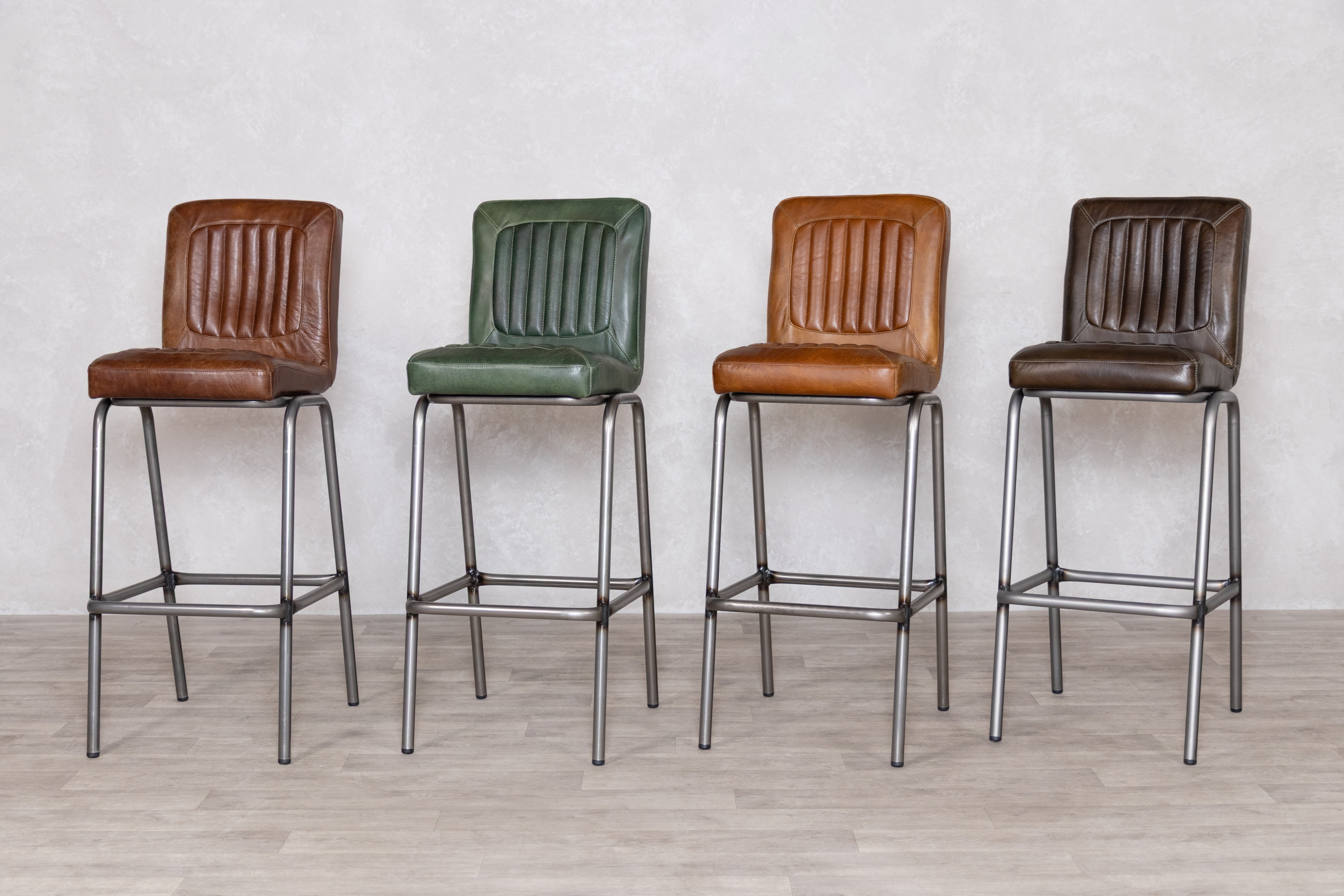 With natural scarring, genuine marks and blemishes, the Jenson Distressed Leather Bar Stool has a lovely vintage appearance, featuring a real leather seat with ribbed stitch detailing. Made in the UK, there are colours to suit every interior style. Go for the whole Jenson package and opt for the matching dining chairs, too!