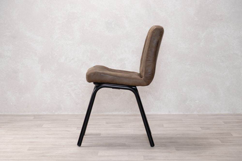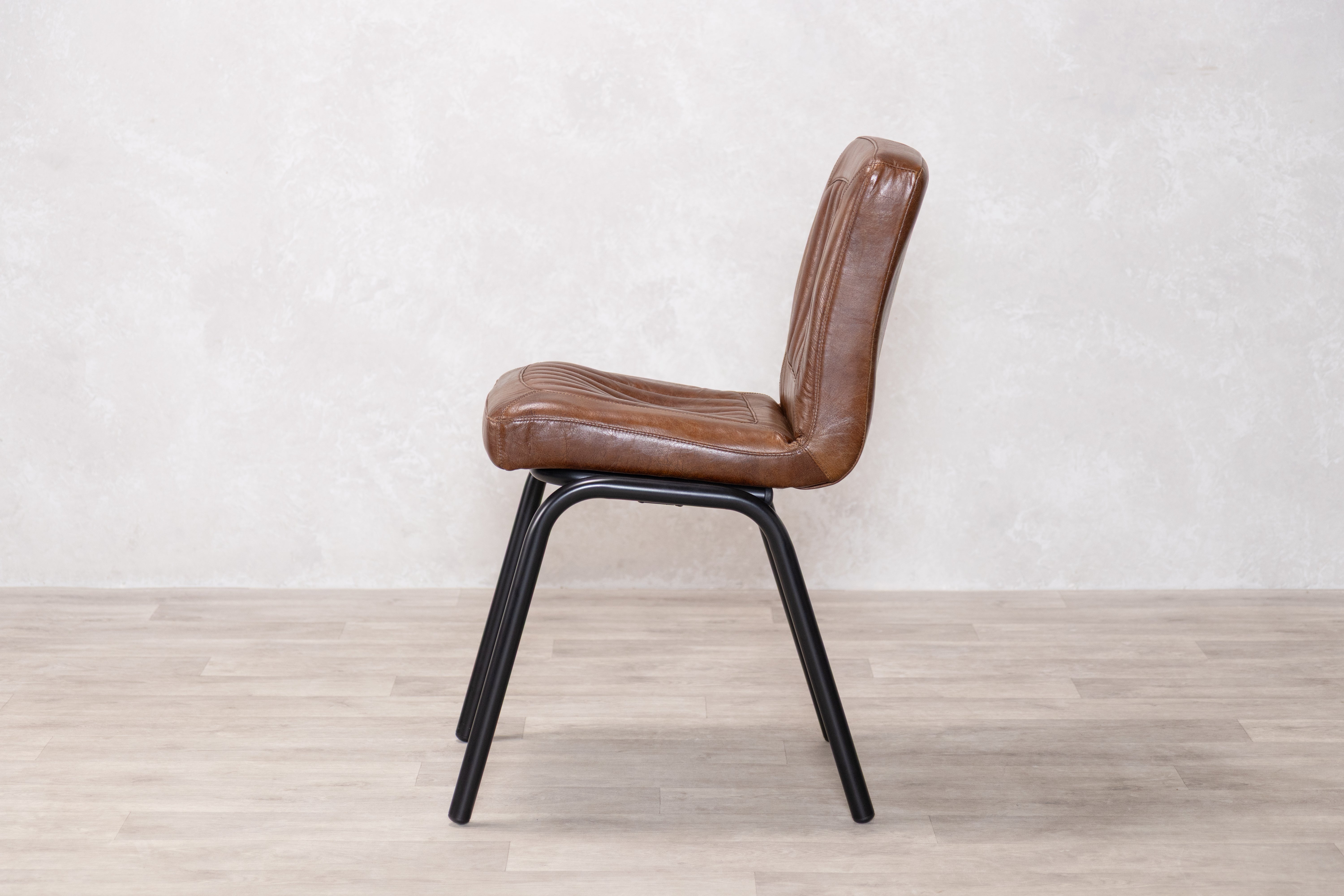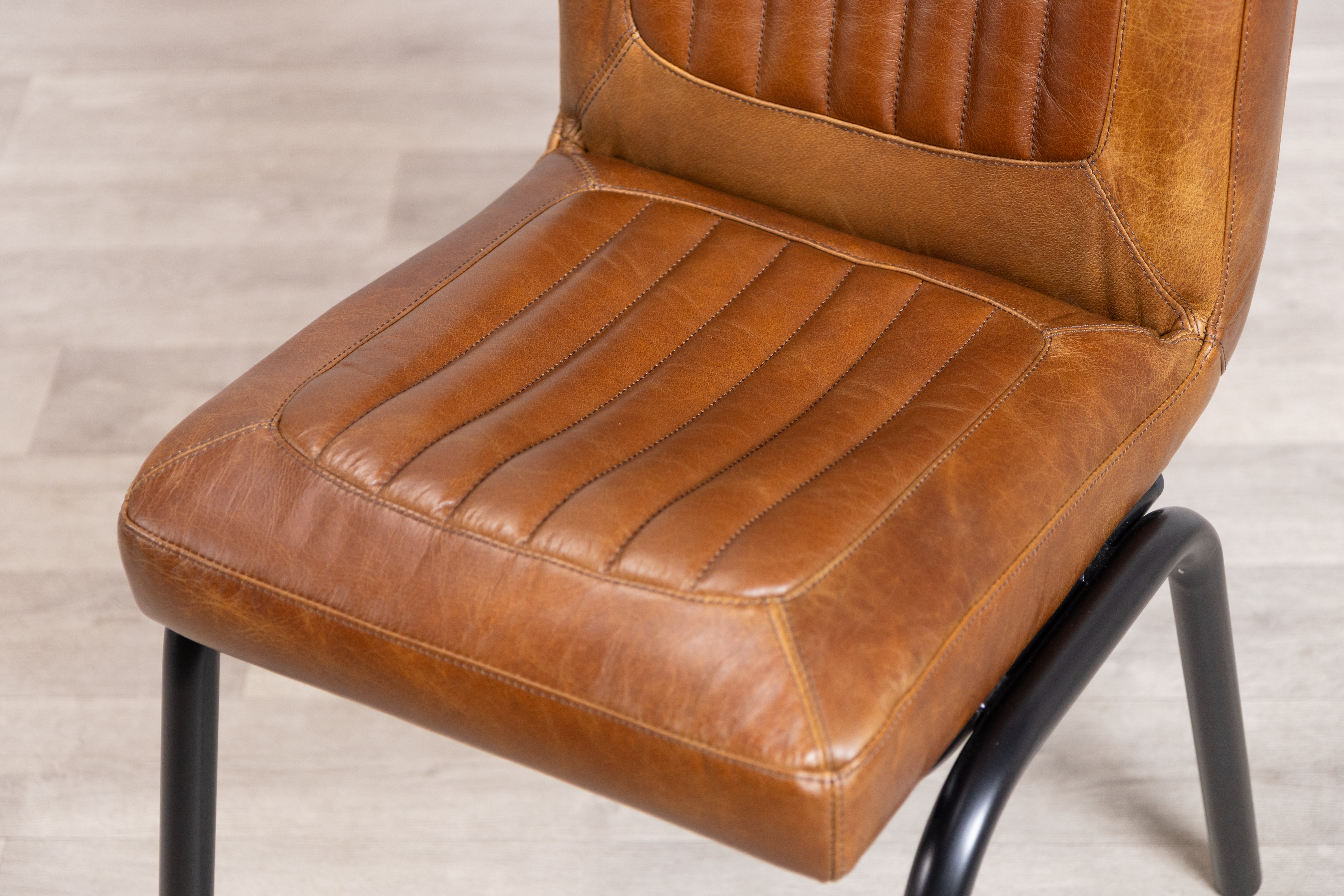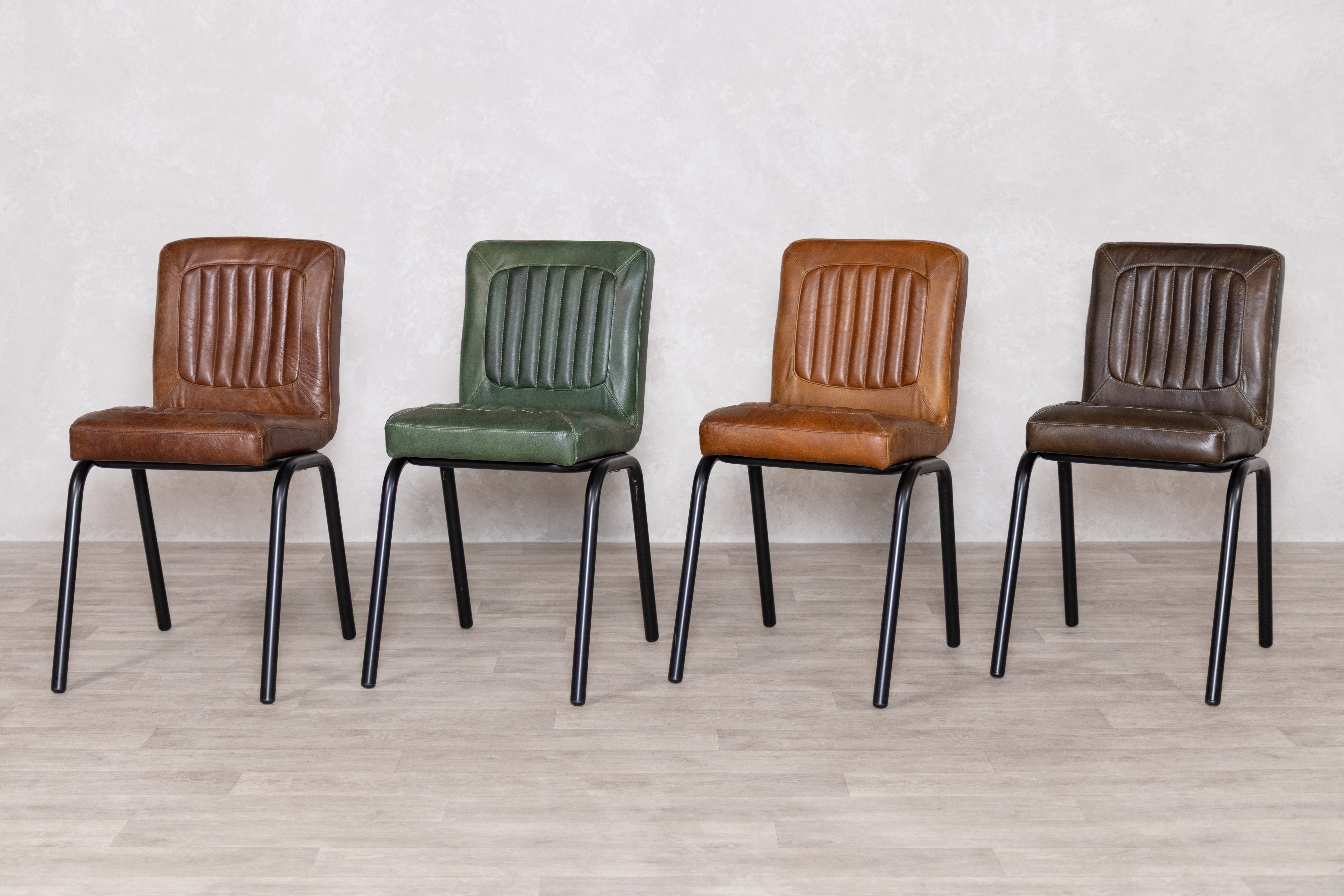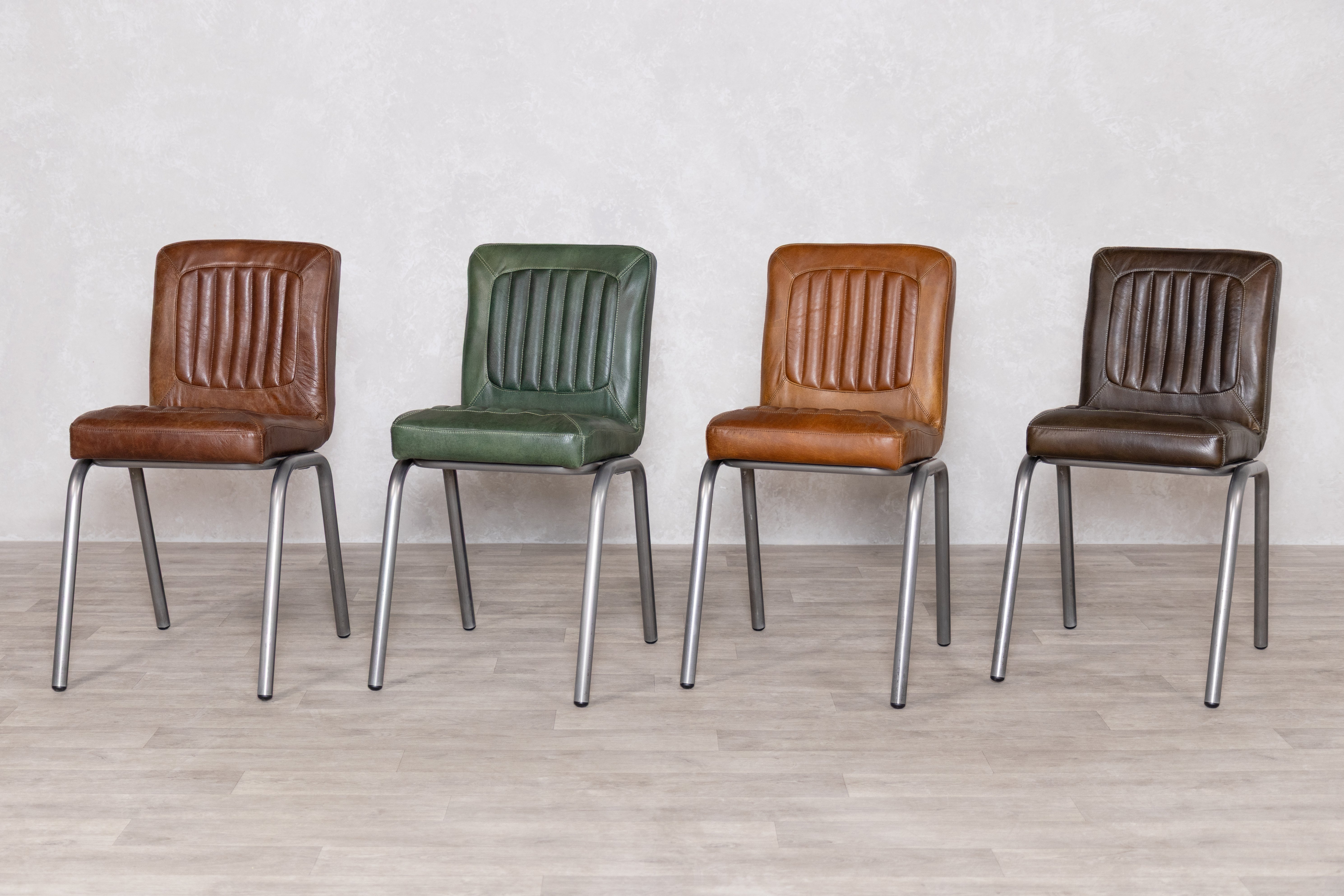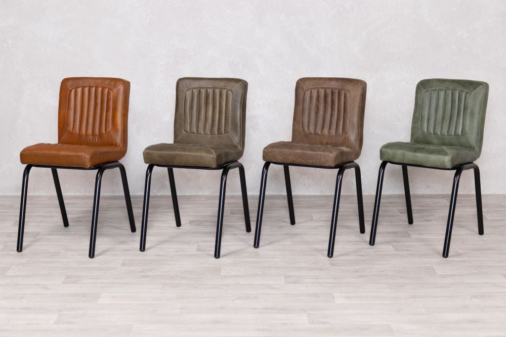 Made in the UK from authentic leather, the Jenson Distressed Leather Dining Chair has a lovely retro vintage feel to it. The upholstery features natural scarring and marks that are prevalent with genuine leather and add classic character to your space. If you have a kitchen island or bar, you could pair these chairs with the Jenson Leather Bar Stool.