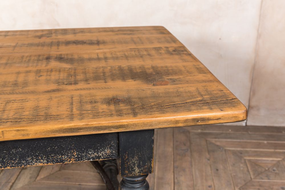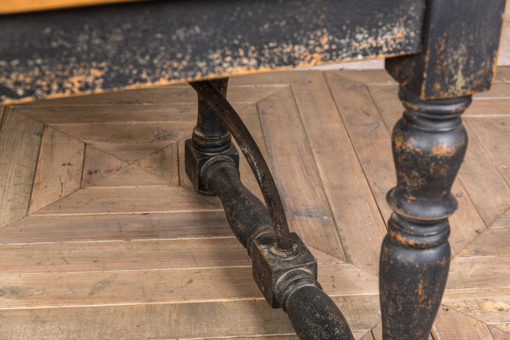 This table is a piece of distressed furniture and does have an aged appearance to the black paintwork, giving it an authentic feel.