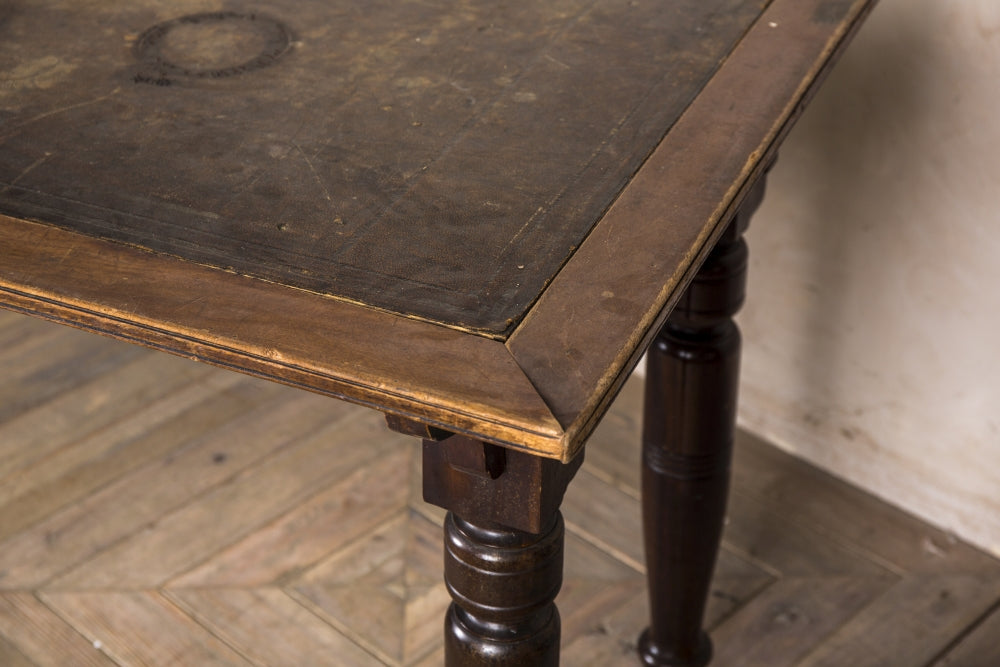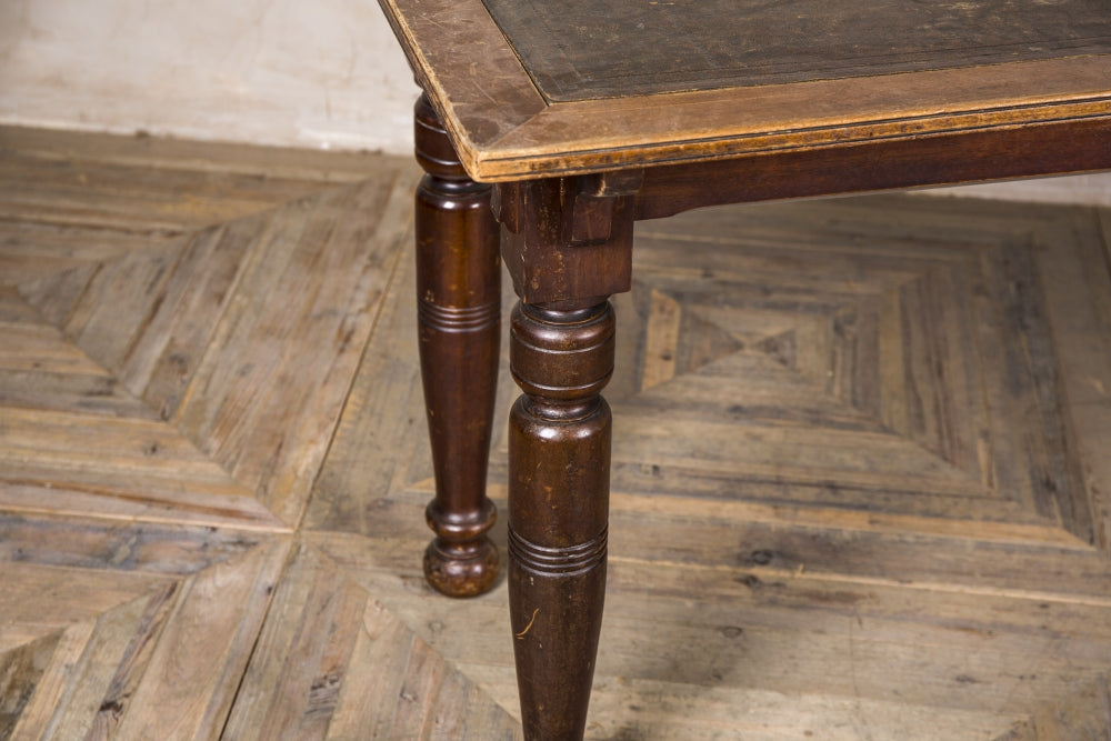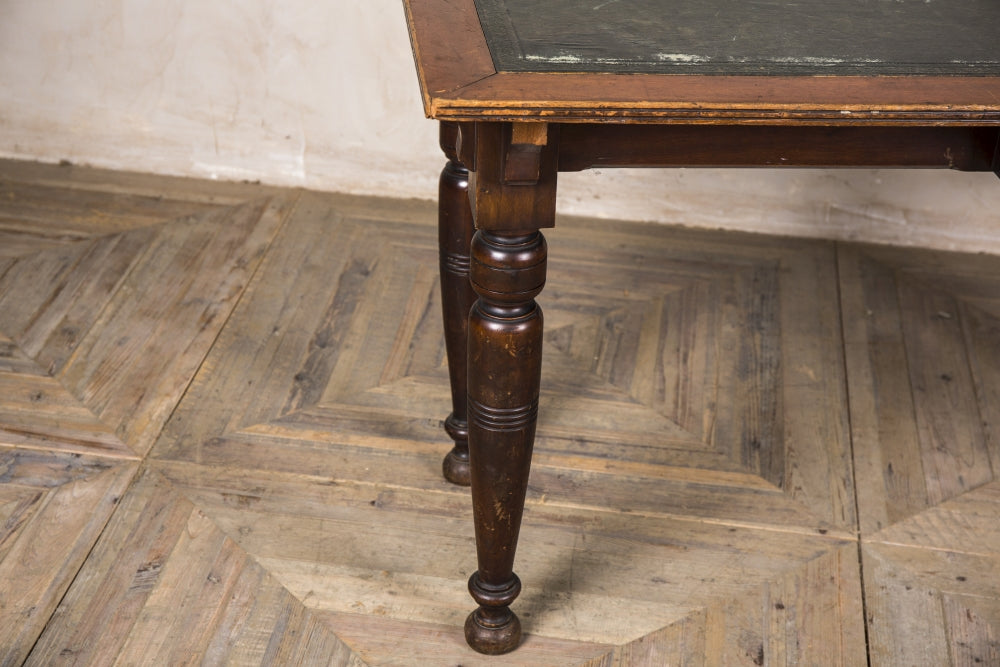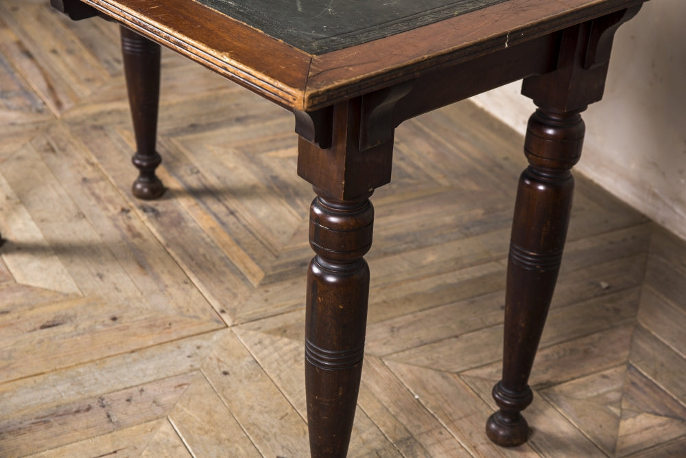 The desks are over 100 years old, so each one will have visible cracks and scuffs as shown in the images. Some restoration will be required if you are looking to bring the mahogany and leather back to its former glory.