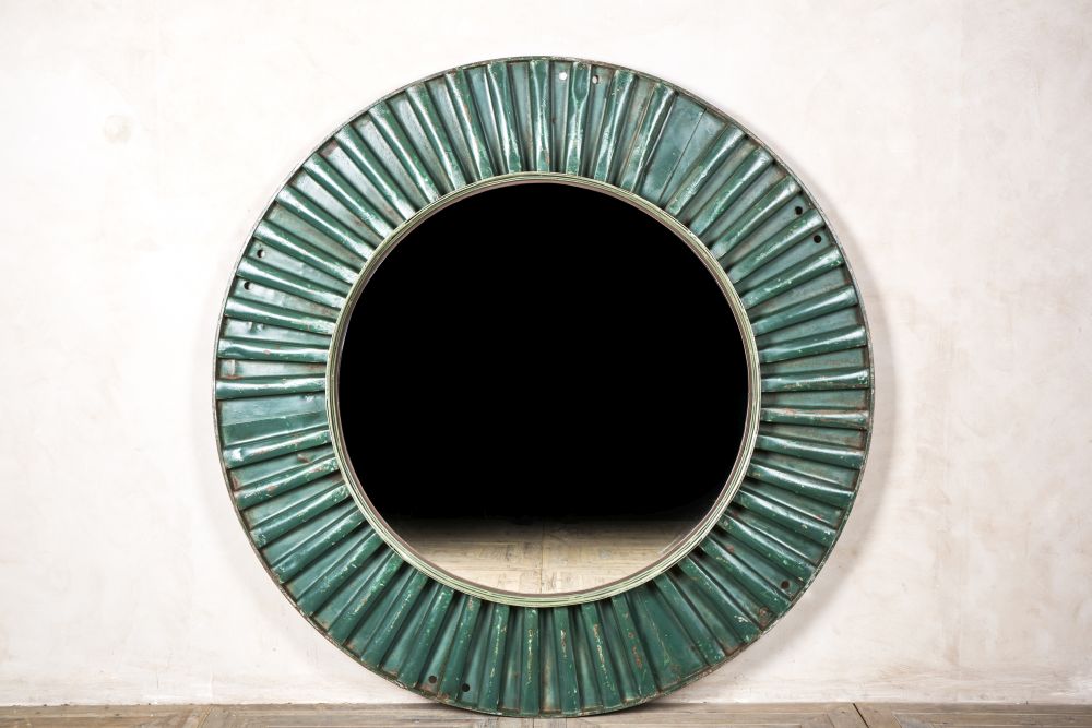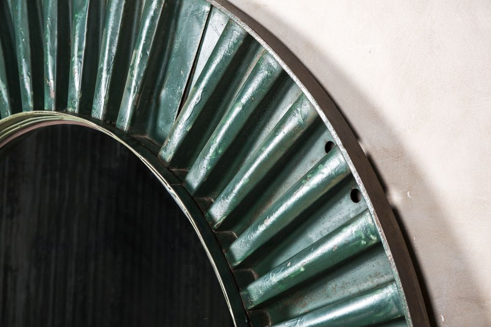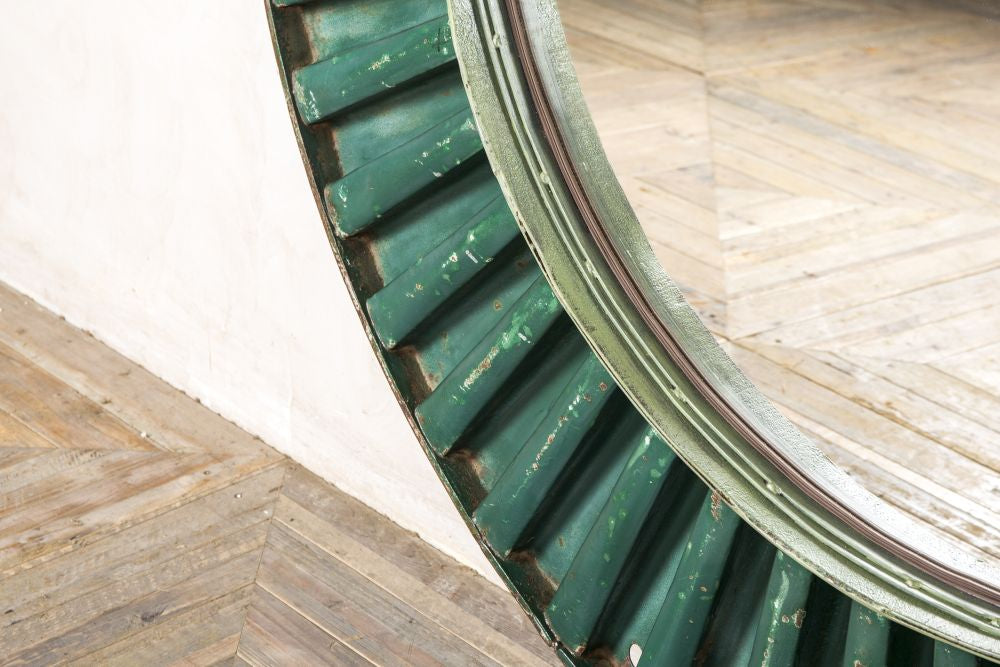 This Extra-Large Industrial Style Mirror is made of a steel surround and a deep worn green style exterior, one which is quintessential to industrial design.