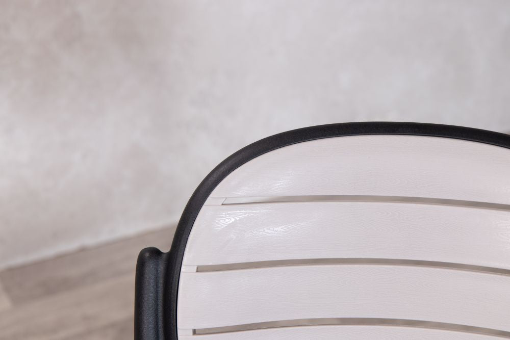 Invite refined retro designs to your patio set up with the Florida Garden Chair! Featuring a durable slatted seat and backrest that come in four contrasting colours, made from high quality polypropylene, perfect for gardens in need of a minimalist touch. Stackable and UV stabilised, this chair is perfect for the outdoors providing ultimate practicality and comfort!
