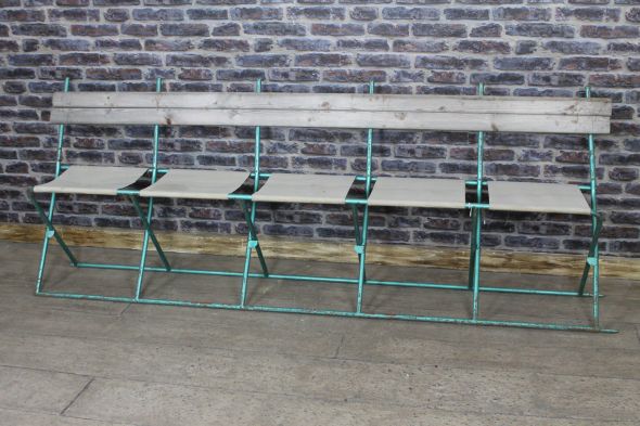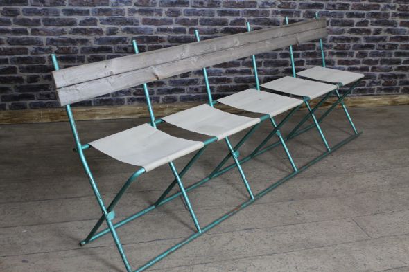 Available in a three or five seat variety, these benches would be great as additional seating for parties, or for use in bars and restaurants. They have a turquoise blue painted frame and feature canvas seats and a timber back.