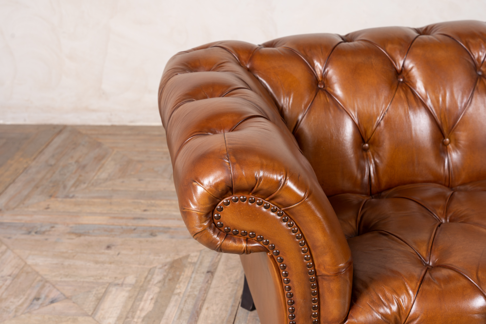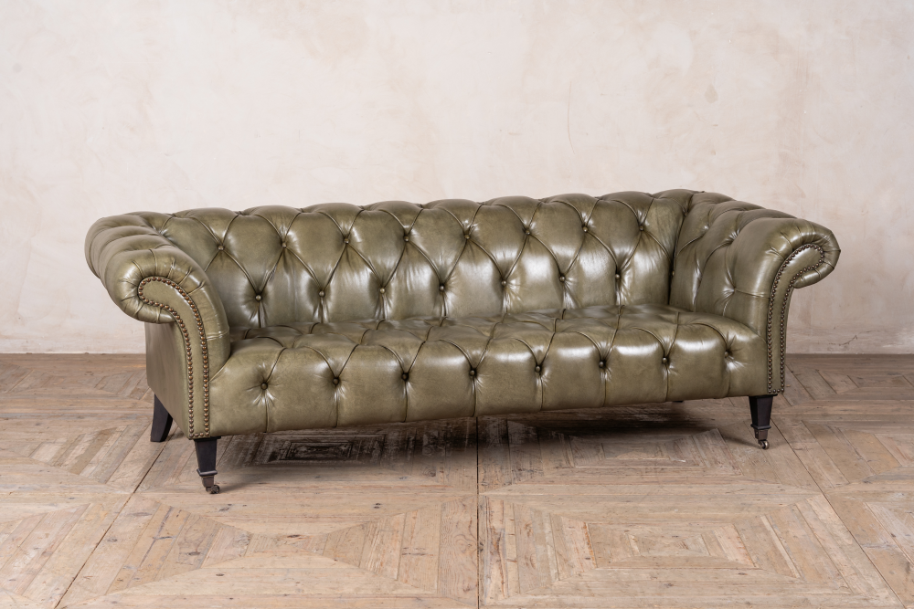 Our timeless button back Hathaway Leather Chesterfield Sofa has been handcrafted in super comfortable, squishy buffalo leather. Perfect for a traditional, period style living room or in a study in front of a bookcase, the quintessential Chesterfield oozes class and comes in Tan and Lagoon Green.