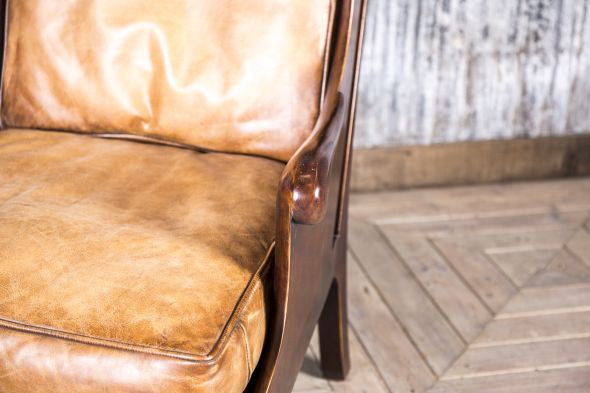 Our Stapleford High Back Wing Armchair will add colonial style to your interior. Featuring a distressed, hardwood frame and an aged buffalo leather, this lounge chair is super comfortable to hunker down in and read a good old book!