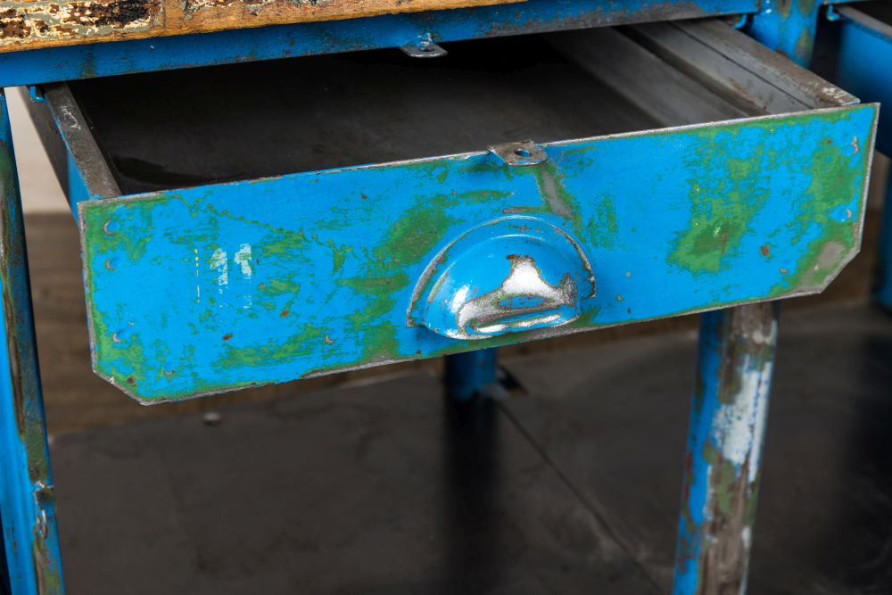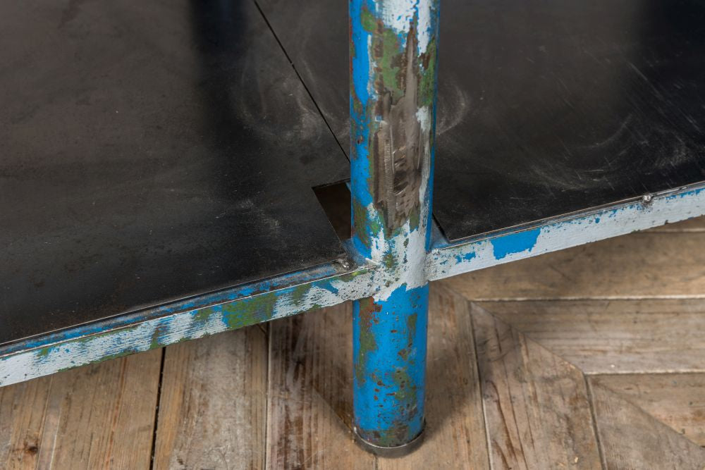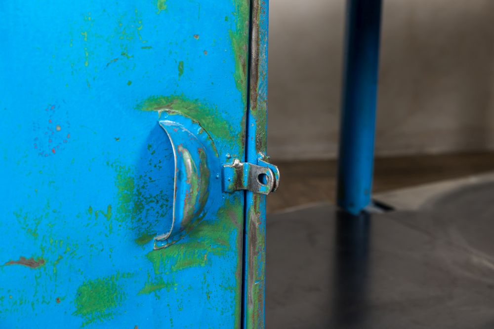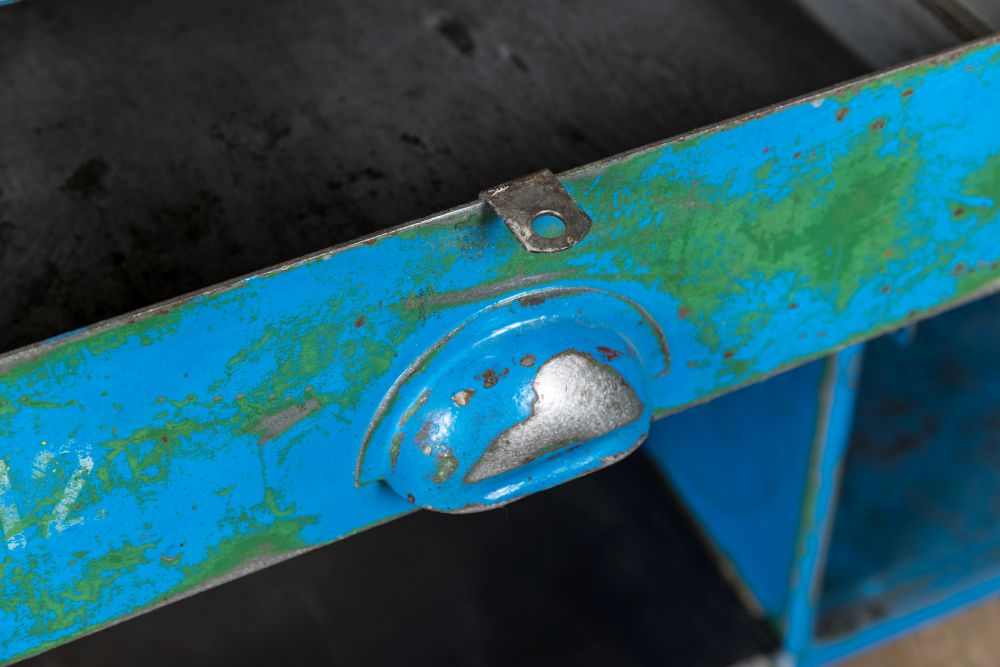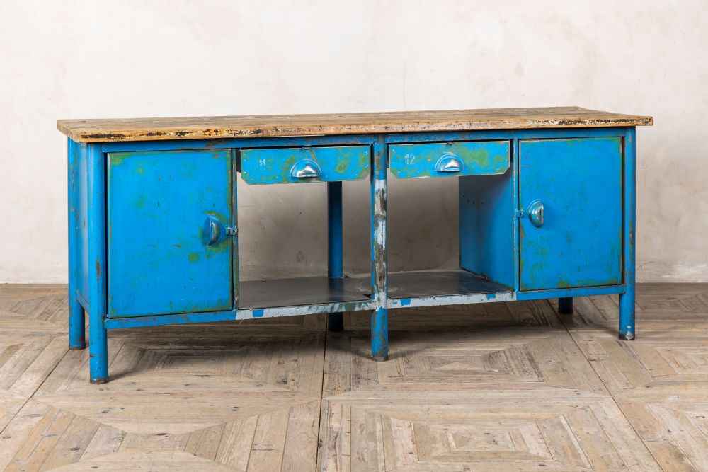 A storage solution with character, this Industrial Blue 2 Door Sideboard will add style to your space. With a cobalt blue distressed metal colour and a rustic wooden top for extra vintage charm, this sideboard would suit an industrial style bar, restaurant, or commercial kitchen space.