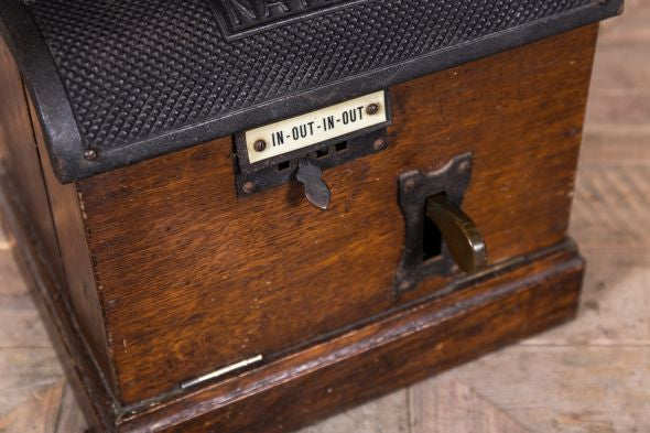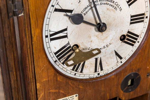 This industrial clocking-in clock is a unique piece, perfect for adding nostalgia to a vintage inspired interior.