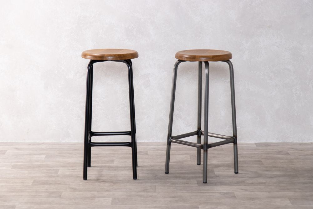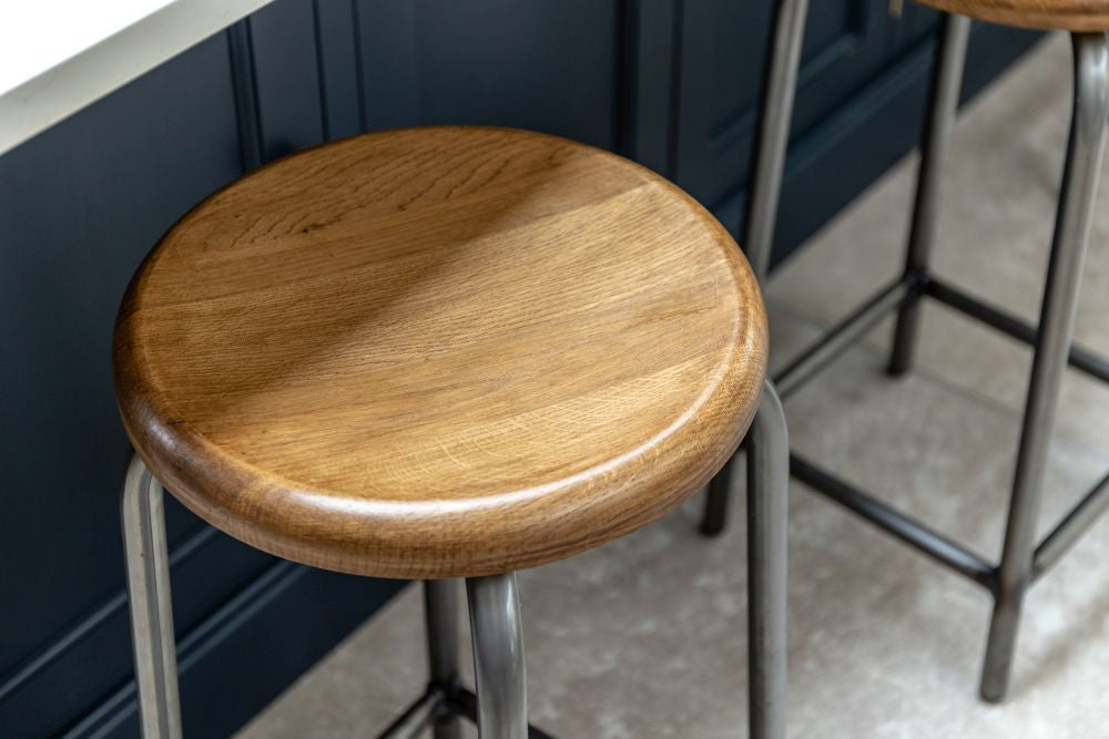 We love the qualities that the Cambridge Industrial Design Bar Stool has. The frame is made from a tubular steel base that has a clear, powder-coated finish so that you can still see the industrial construction underneath, a machines oak seat and a footrest for added comfort. We've even added hidden plastic feet to stop the stool from scratching your floor! From kitchen island to city-centre bar, the Cambridge has all you need to create an industrial haven.