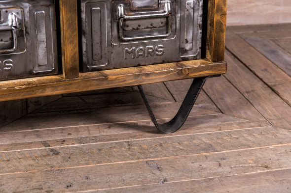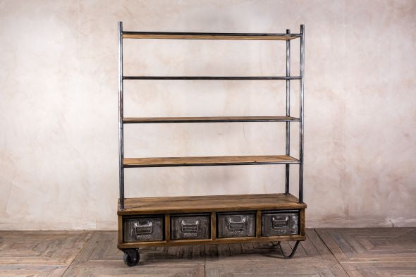 No more rummaging in your cupboards, frantically trying to find that battery you need to change the TV channel, our Industrial Shelves with Drawers can help you organise your life! Paperwork in one cupboard, stationary in the next, there's even room for your books and collectables on these wooden shelves. Held together by a tubular metal frame and sitting on two wheels, this shelving unit can go in any room in the house!