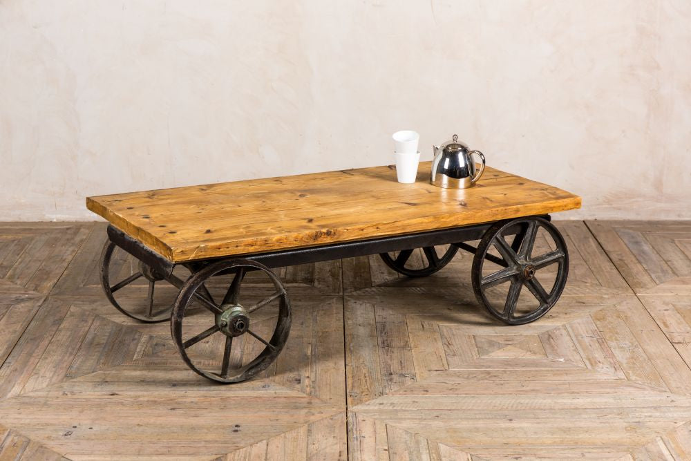 The trolley cart coffee table would suit a pub, industrial style restaurant, lounge or bar area, and could even be used in a large country kitchen.