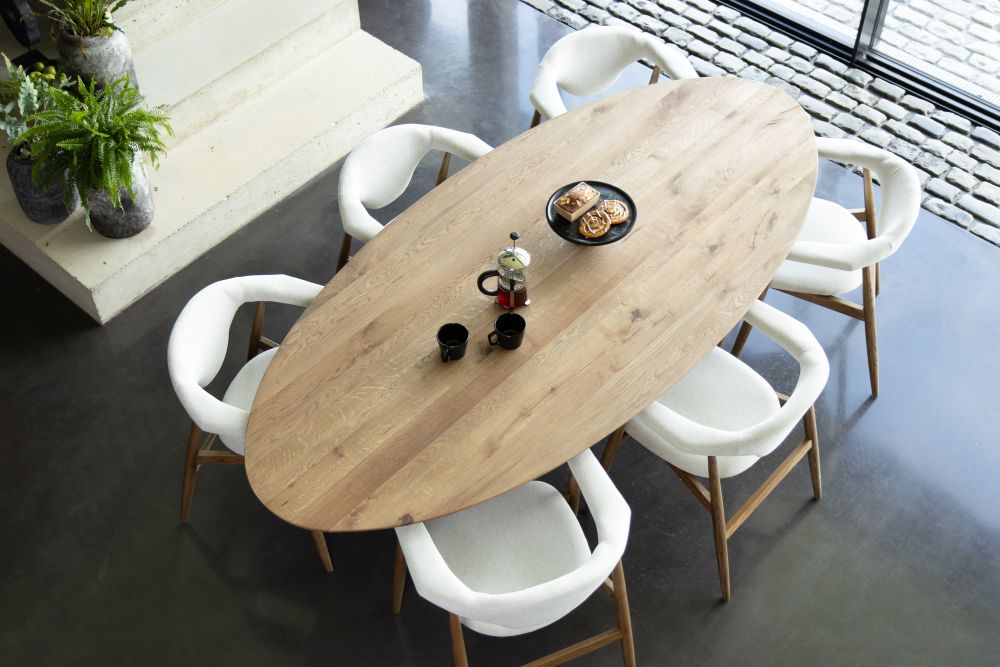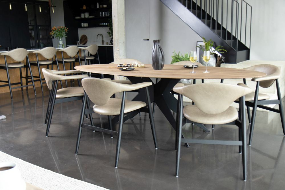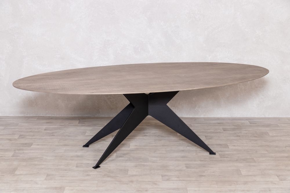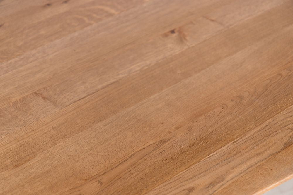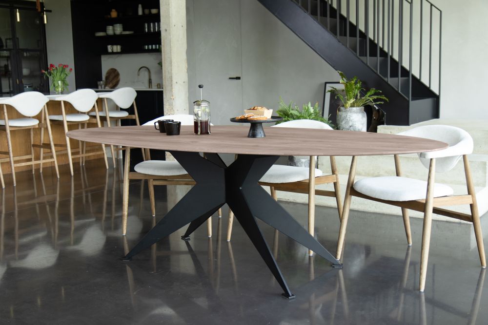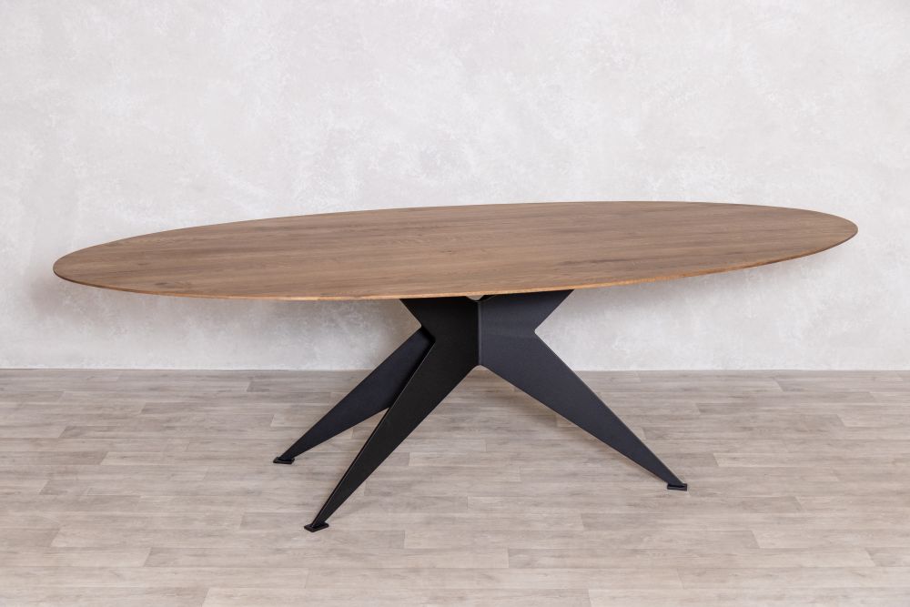 Handcrafted with solid oak that emphasises its natural character, bearing the occasional knot, nick, or crack where no two tables are the same. Also featuring a hard wearing matte black metal star base that adds refined industrial details to any space.