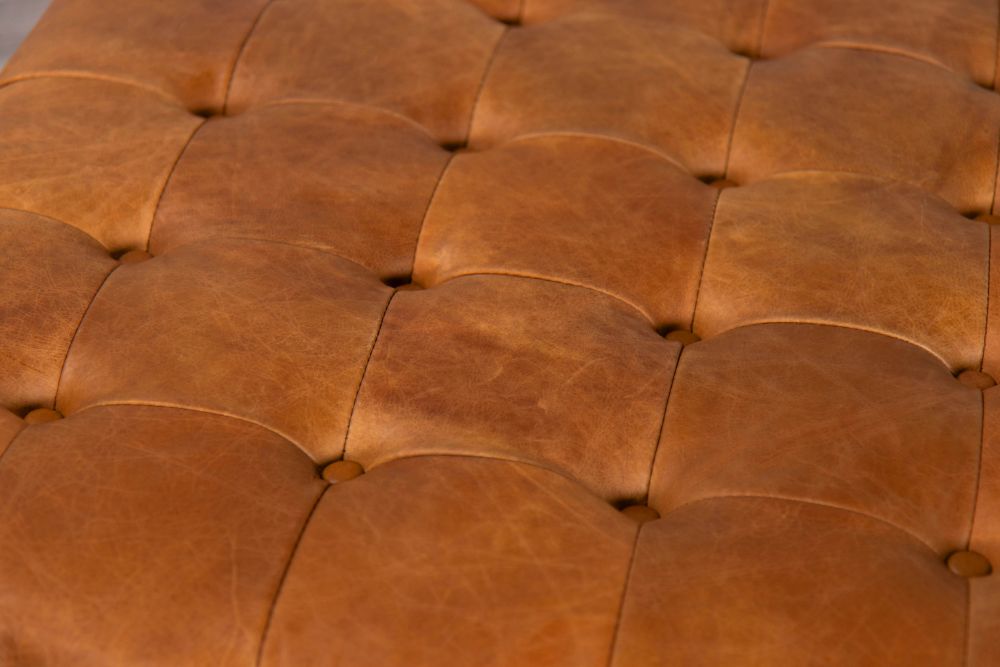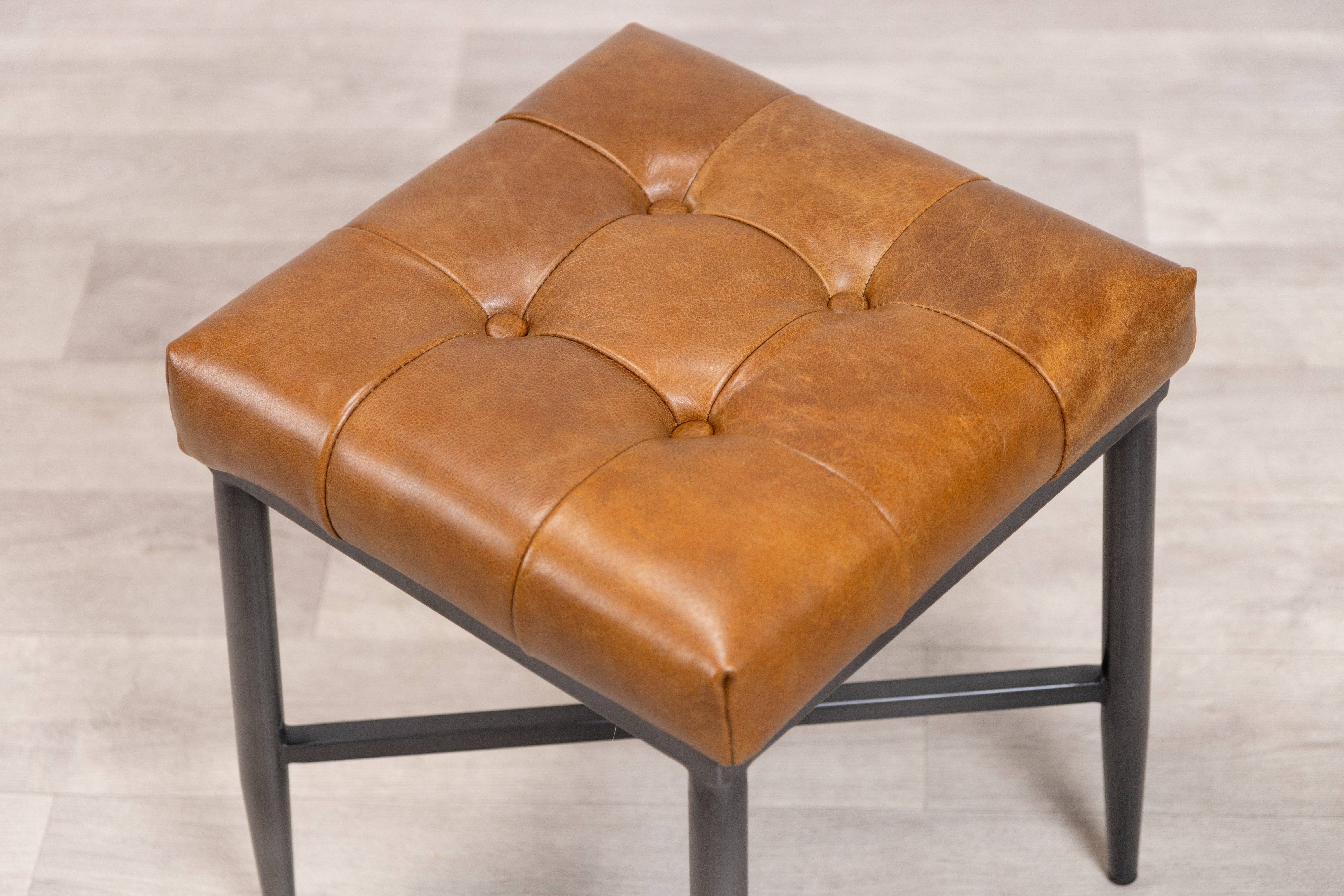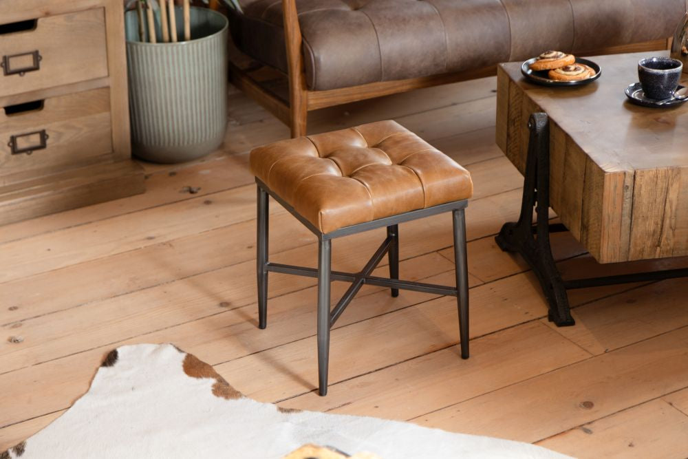 Combining both vintage and modern features, the Kingsbridge Full Leather Footstool collection is the perfect addition to your space and has a smart, yet luxe appearance. The footstools have a mix of traditional English button back leather and a dark, gunmetal frame, bringing an industrial feel, enough to suit an array of different interior styles from modern to vintage.