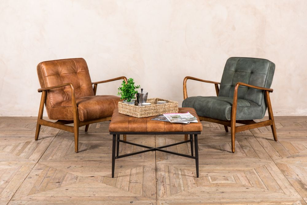 If you are looking for a footstool that would work well with a leather armchair, the smaller Kingsbridge footstool is the perfect choice.