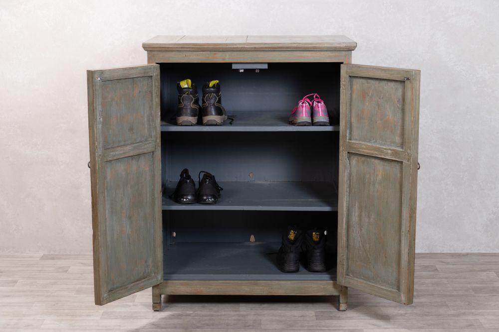 Featuring robust iron hinges and detailed craftsmanship, this storage solution is built to last, ensuring durability while adding a beautiful vintage look to your décor. The spacious interior offers ample room for storage or organising shoes, keeping your entryway tidy and inviting.