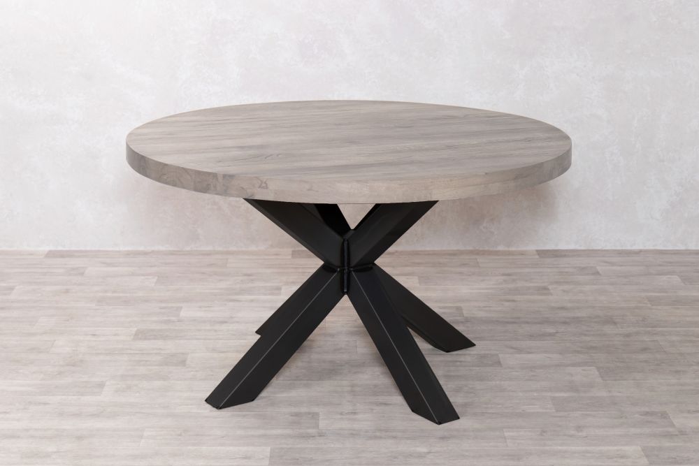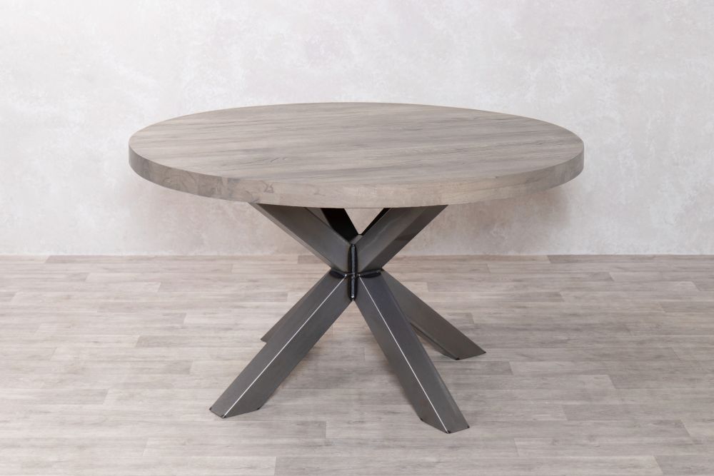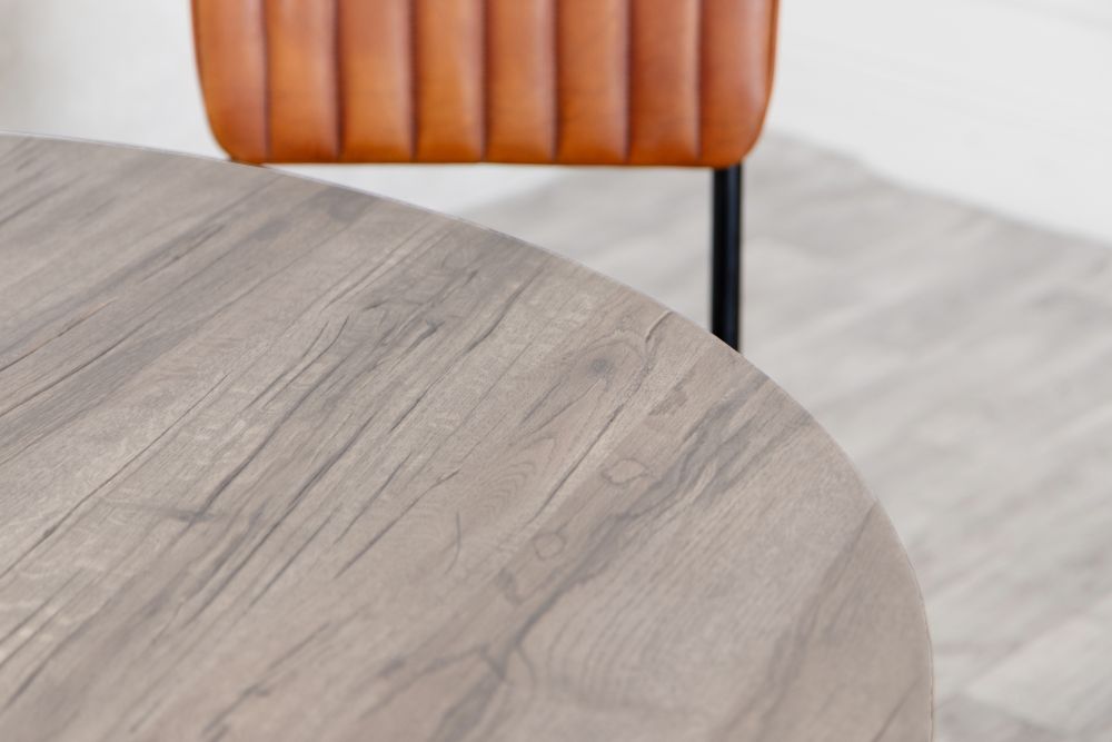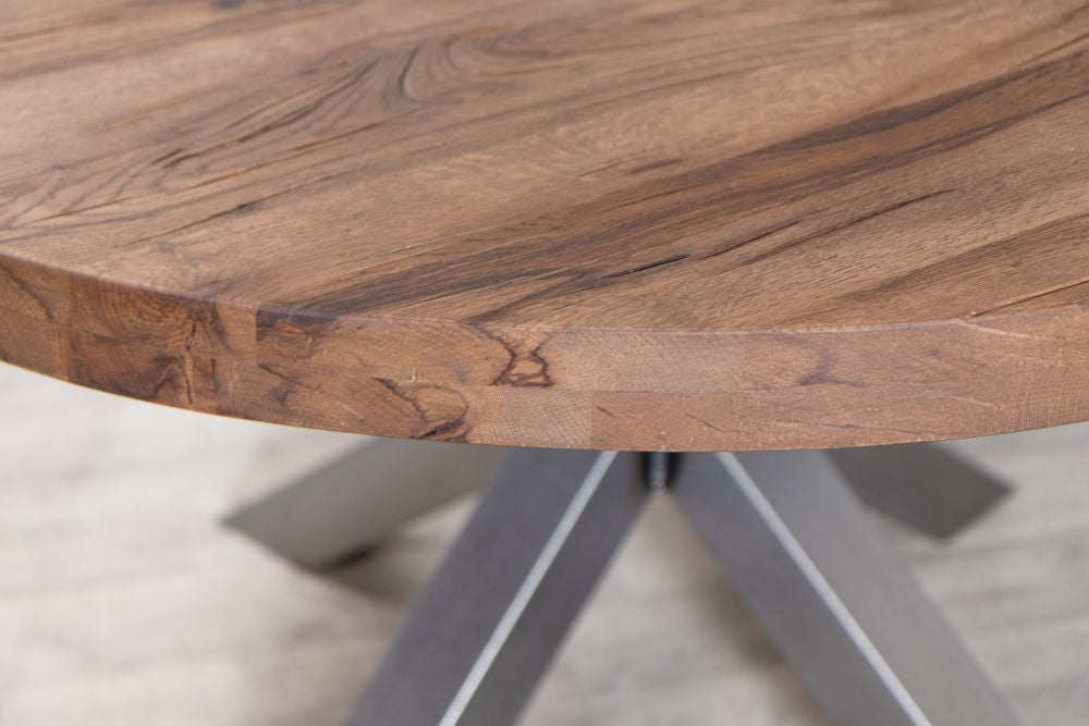 The Leamington Round Industrial Oak Dining Table will bring a beautiful air of minimalism to your dining space. Made with high-quality wood and a strong hand-welded steel base, each one of these sturdy tables are unique as the manufacturing process brings out all the perfect imperfections of the natural materials used.