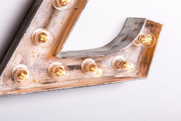 Illuminate your space with our Fairground Style Letter Light Range. Crafted from steel, our large carnival style lights have an authentic aged appearance with a distressed white paint finish.