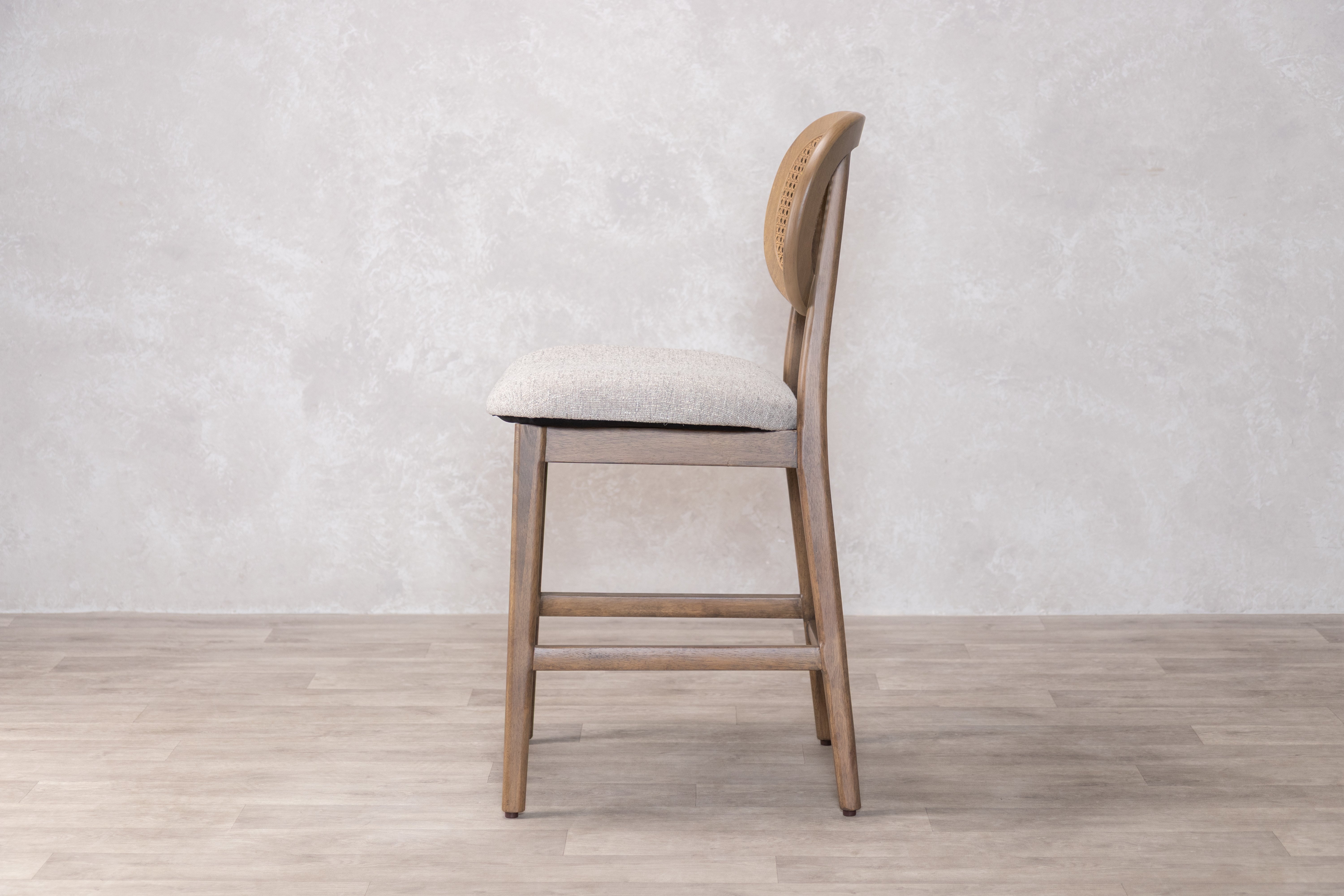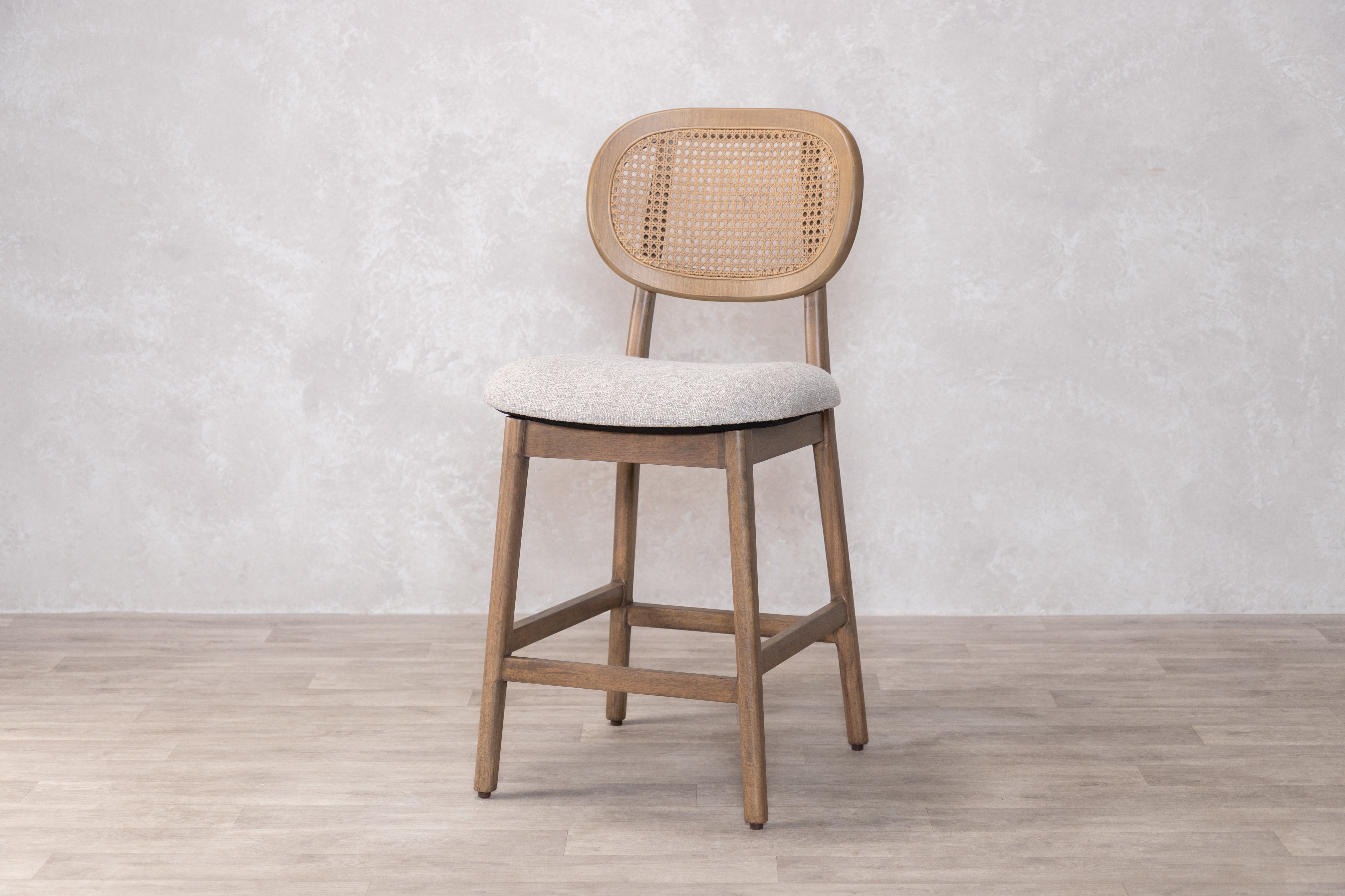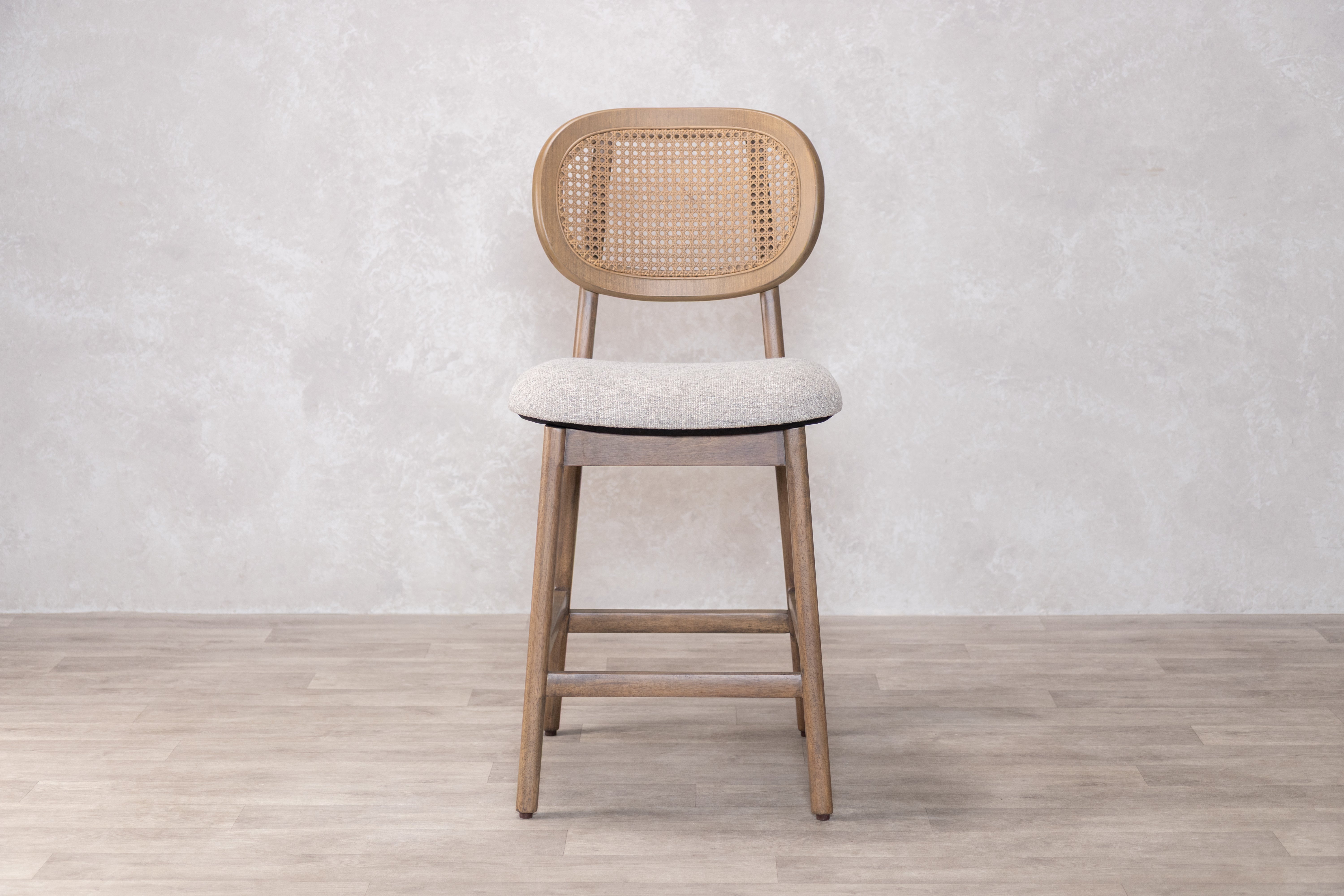 With a harmonious blend of texture and style, the Lucca Counter Bar Stool uses natural materials and curves to emphasize Scandi style in your dining space. Featuring a dark wood frame, natural rattan backrest, and an upholstered seat, the warmth and functionality of the Lucca Counter Bar Stool shines through.