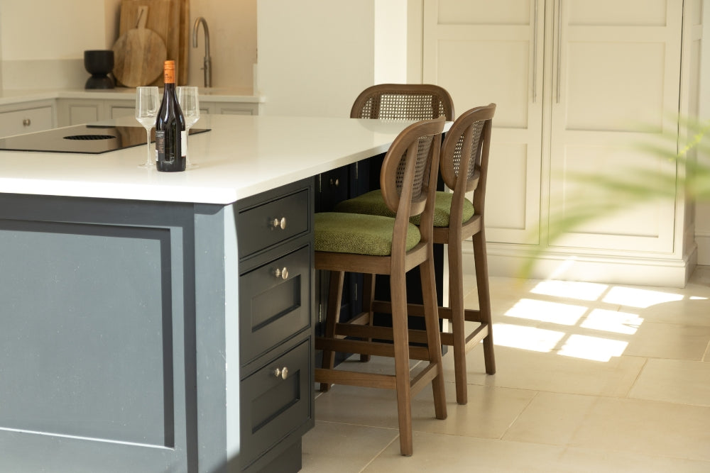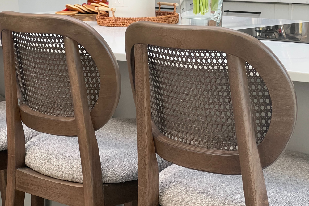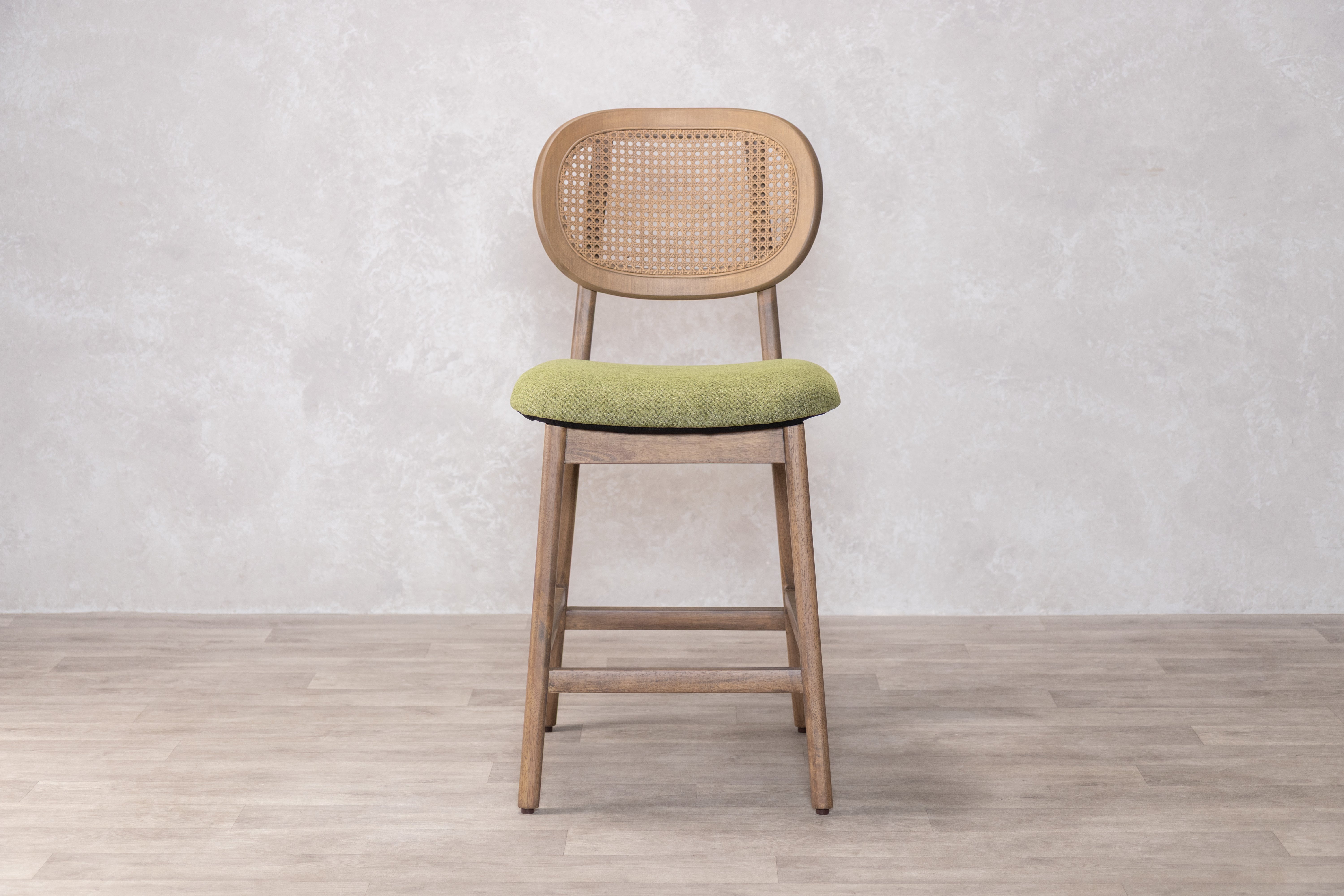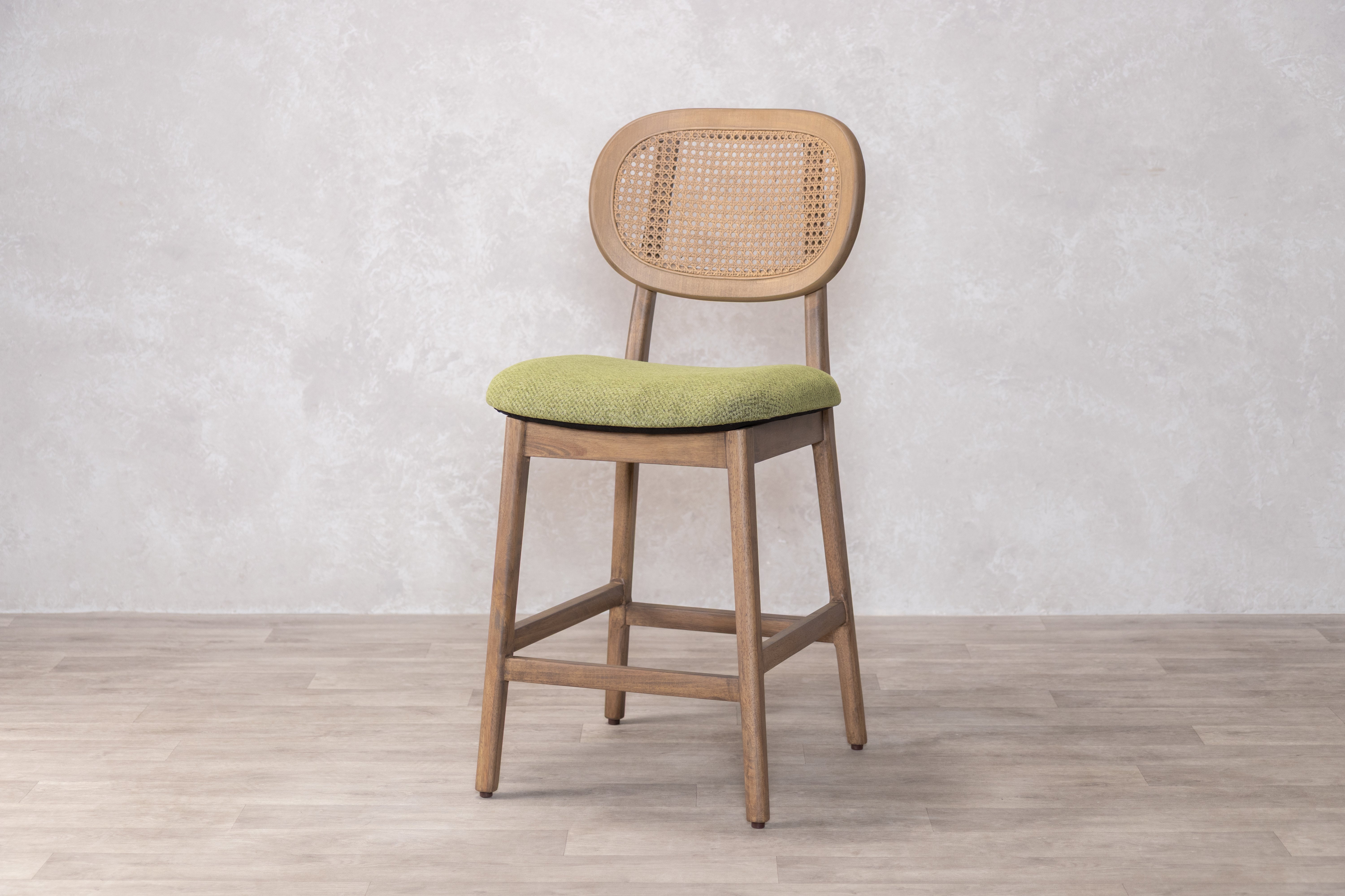 With a harmonious blend of texture and style, the Lucca Counter Bar Stool uses natural materials and curves to emphasize Scandi style in your dining space. Featuring a dark wood frame, natural rattan backrest, and an upholstered seat, the warmth and functionality of the Lucca Counter Bar Stool shines through.