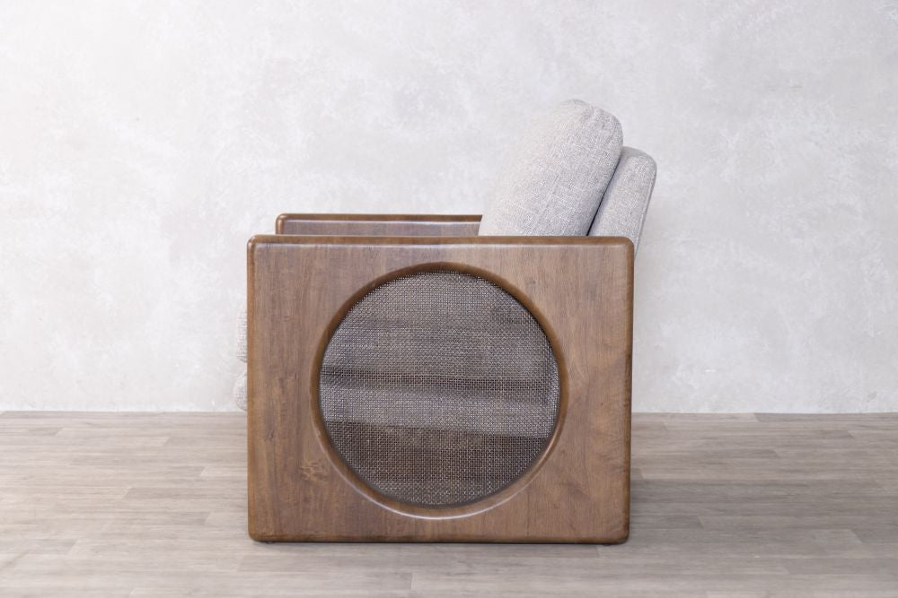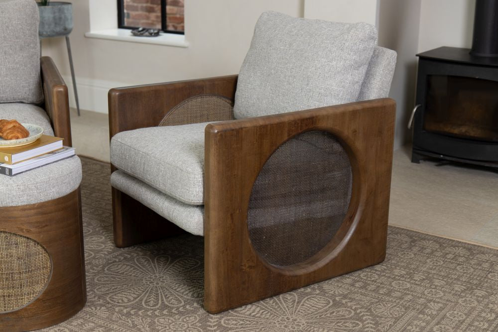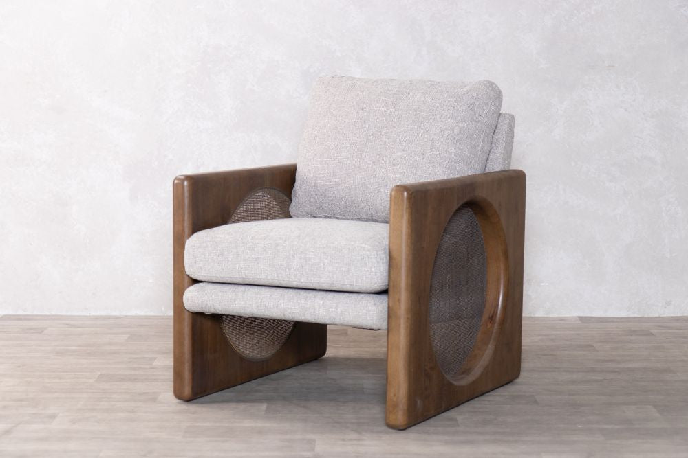 The Malmo Accent Chair is the perfect statement for timeless Mid-Century Modern Style! The contrasting shapes come together to form a modern yet vintage-inspired armchair. Featuring a solid wood frame with large circular cutouts on either armrest, smoothed over and rounded on all sides for a look that’s not only sleek but comforting, too.