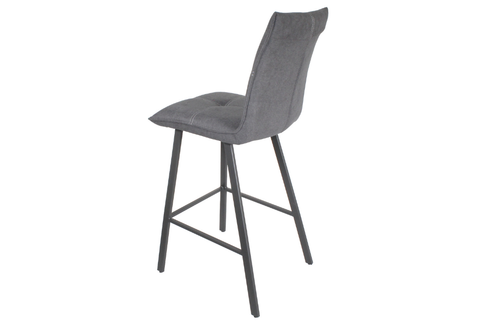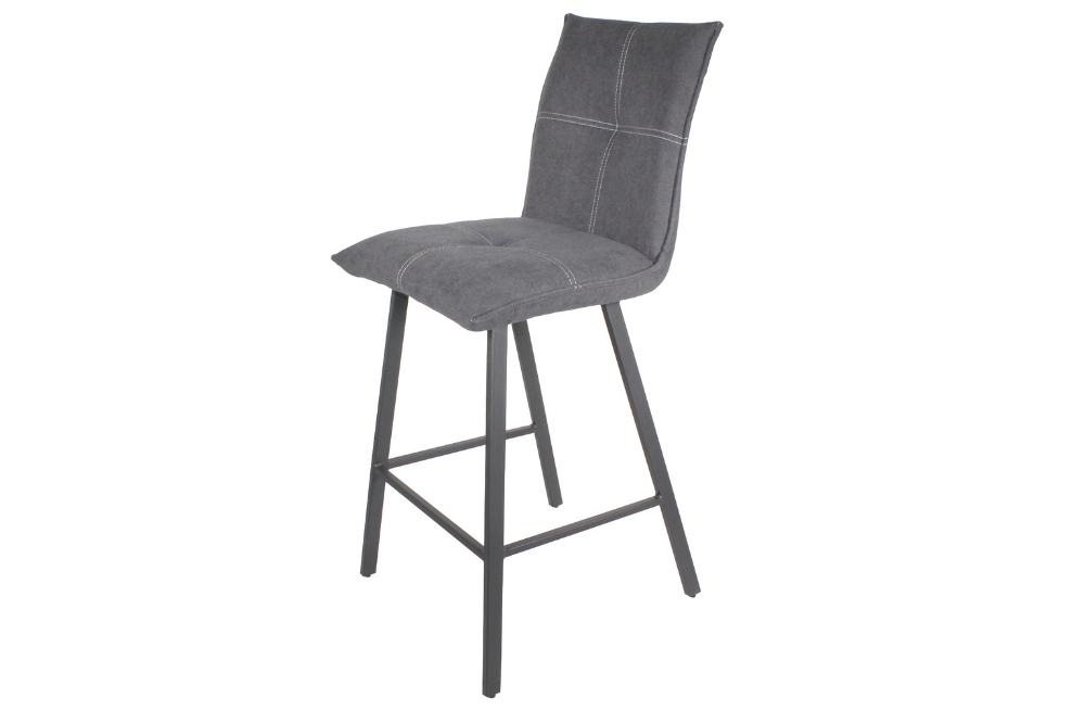 The Marston Bar Stools feature a subtle grey seat and simple steel legs, finished in a dark grey shade.